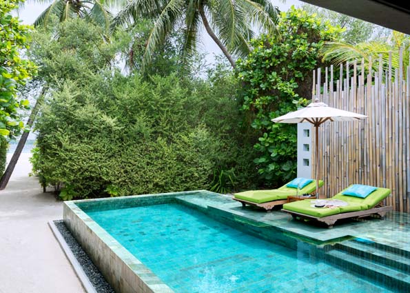 海滨泳池别墅就在沙滩上,为您提供一个欣赏马尔代夫BAA环礁日落的最佳视角,别墅配备迷你冰箱,酒和饮料等设备。和Beach Pool Villa 房型一样,这个位置更佳适合看日落。