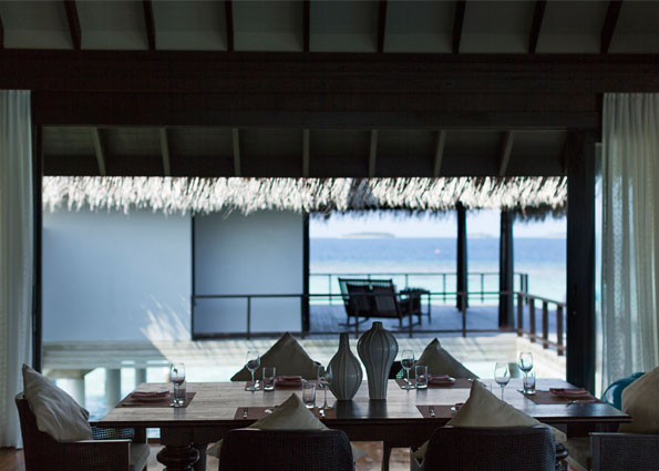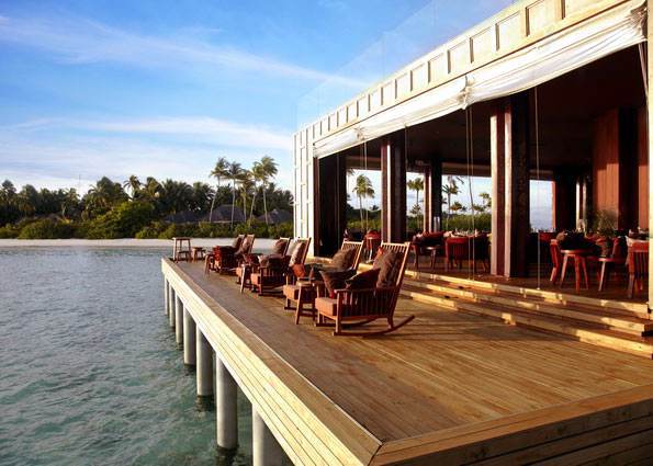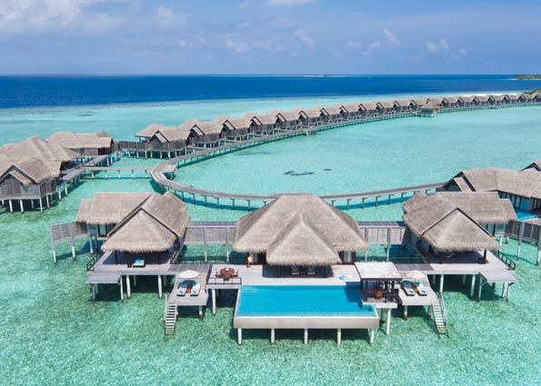 ②. Anantara Kihavah Villas酒店距离马累国际机场(Male International Airport)有35分 钟的水上飞机航程,水飞上岛,可以俯瞰印度洋,途中可欣赏美景。