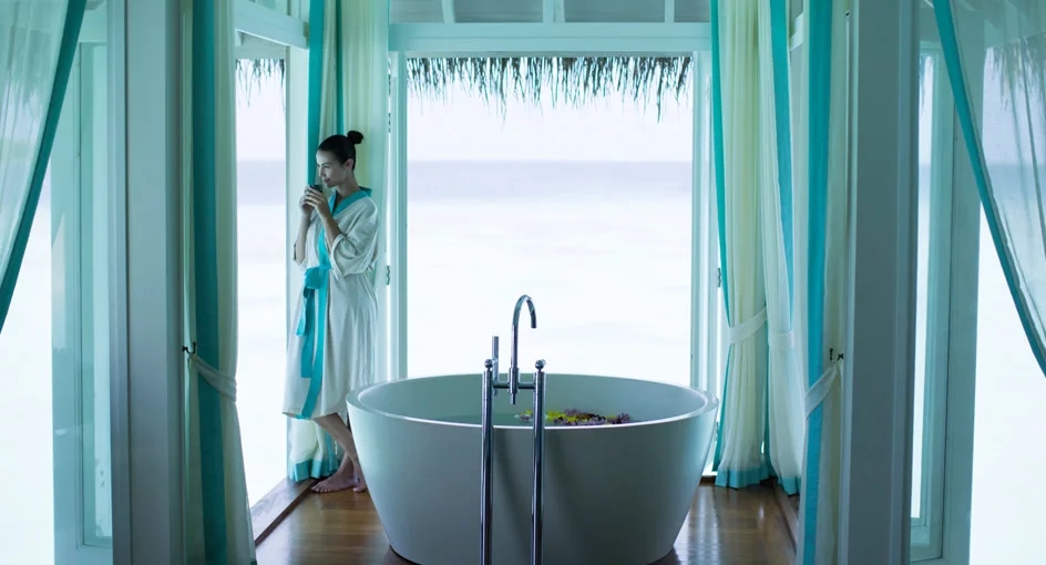 【分日出、日落,房型相似,朝向不一样,价格不一样。】 房间宽敞明亮,洒满了五颜六色的鲜花,散发着阵阵的热带清香。 盖着埃及棉布,枕着个性化的枕头,酣然入梦。由条纹木材搭成,配有挑高的天花板和硬木地板。别墅配有男女独立步入式衣柜、冰酒器、私人泳池和阳光甲板,可以俯瞰一望无际的大海,营造一种无与伦比的水上豪华体验。宽敞空间,让您感觉仿佛与大海连成一体。