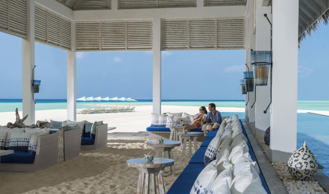 入住马尔代夫兰达吉拉瓦鲁岛四季度假酒店的海景小屋,在郁郁葱葱的热带花园中一览礁湖美景,享受与大自然亲密接触的非凡乐趣。(备注:此沙屋前面沙滩很小)