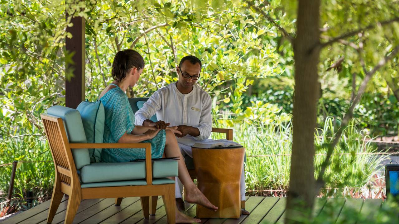 水疗中心介绍: 水疗中心和阿育吠陀护理中心掩映于兰达吉拉瓦鲁岛的绿树茂林中,跳动着生命与智慧、纯净与健康的脉搏。这个综合护理中心占地 10,000 平方米(3亩),注重天然的治愈能量,四周风景如画,将 ila 的 Beyond Organic 系列产品融合护理师和阿育吠陀理疗师的疗愈理念,定能为您带来别样的护理体验。