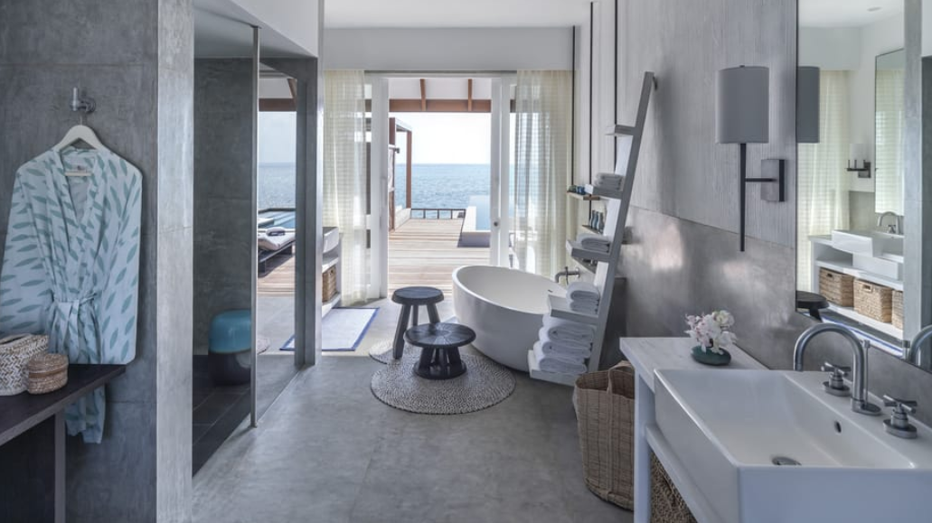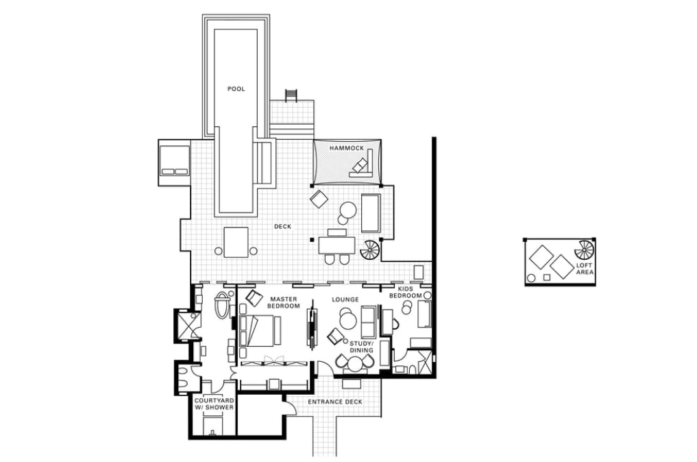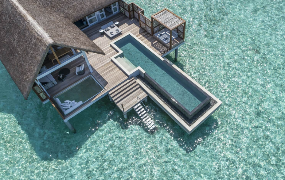 房型介绍:全家成员可尽情沉浸于 12 米(39 英尺)长的浅水泳池、沙地起居室和带沙发床的宽敞书房——是您全家总动员,前往马尔代夫旅行的理想选择。