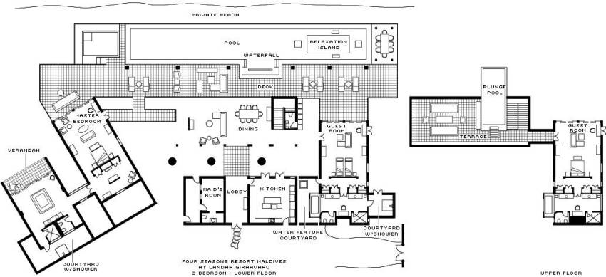 大四季-兰达吉拉瓦鲁 (Fourseasons Landaa )座落在芭环礁(Baa Atoll)。从马累国际机场搭乘水飞30分钟即可到达。属于中型岛屿,环岛一周步行约27分钟,周长约2550米,面积25.41万平方米(1050米*242米)。于2006.11开业。