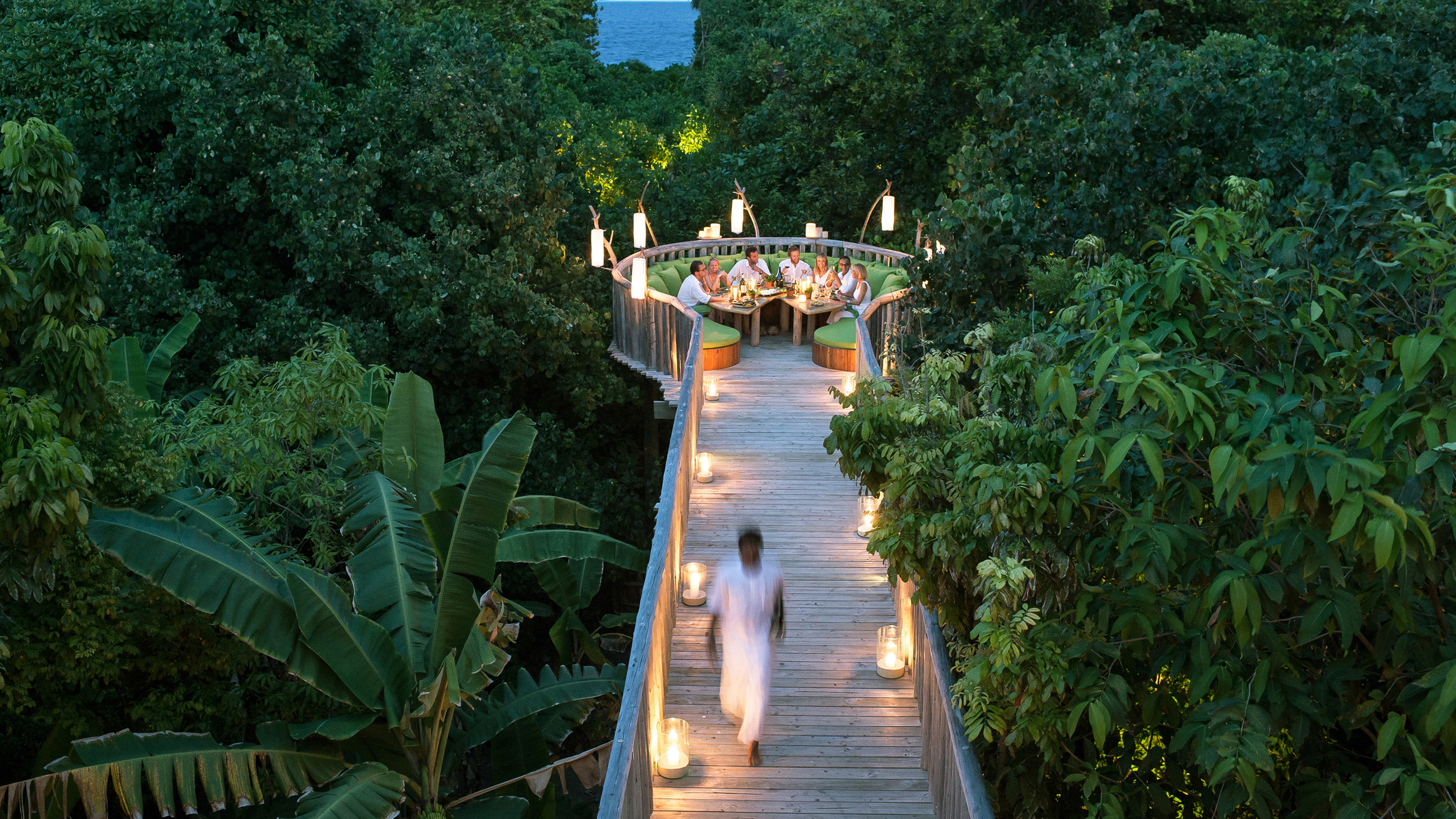 在热带环境中放松,距离白色沙滩只有几步之遥。37号别墅的亮点是月光桌,它高出屋顶,是岛上的最高点。这里可以将您的用餐体验带到全新的全景高度,马尔代夫日出日落的美景如画。