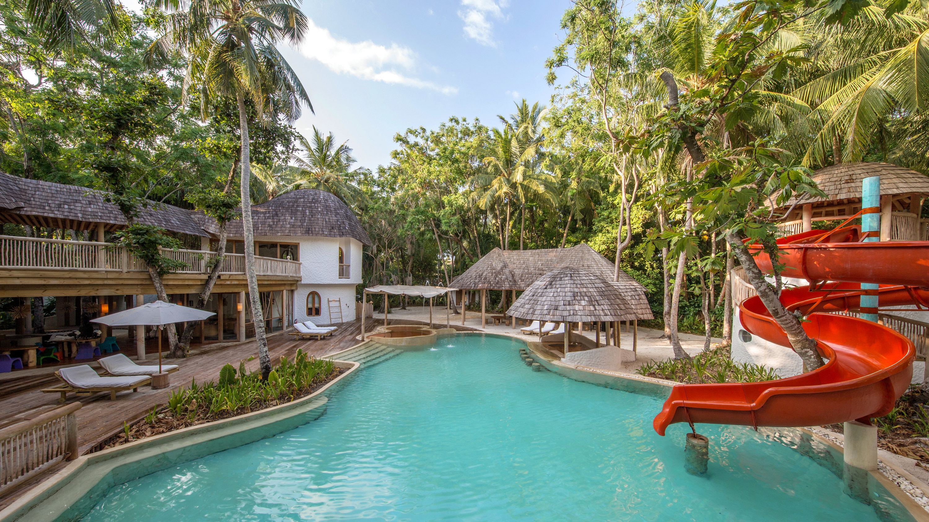 在你的私人游泳池里,在绿树掩蔽下,在清爽的水中泡一泡。如果你想探索它的水下奇观,清澈的马尔代夫海洋只需几步之遥。在嬉戏质朴别致的房间和露台中放松,向被抛弃的精神屈服。