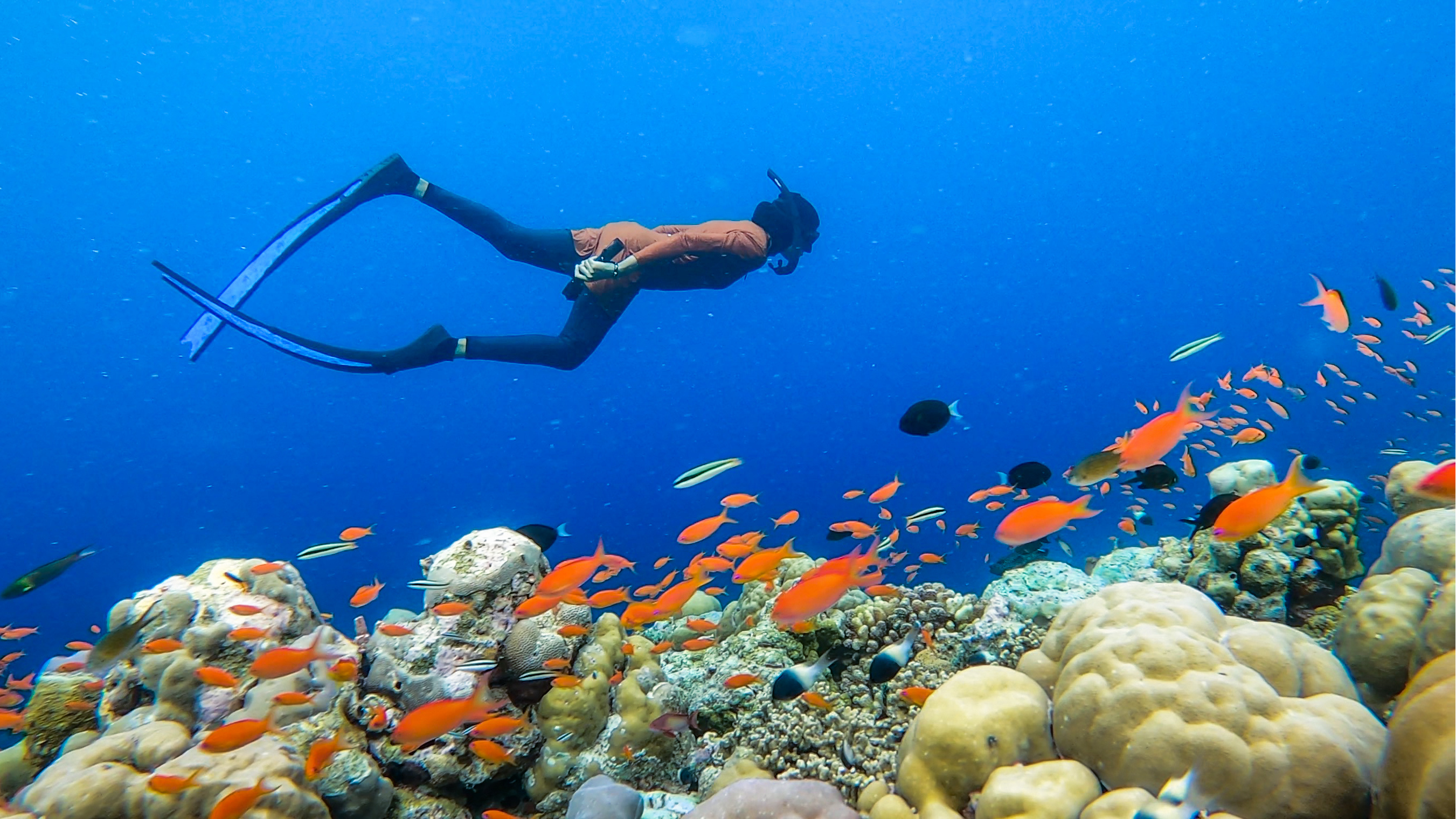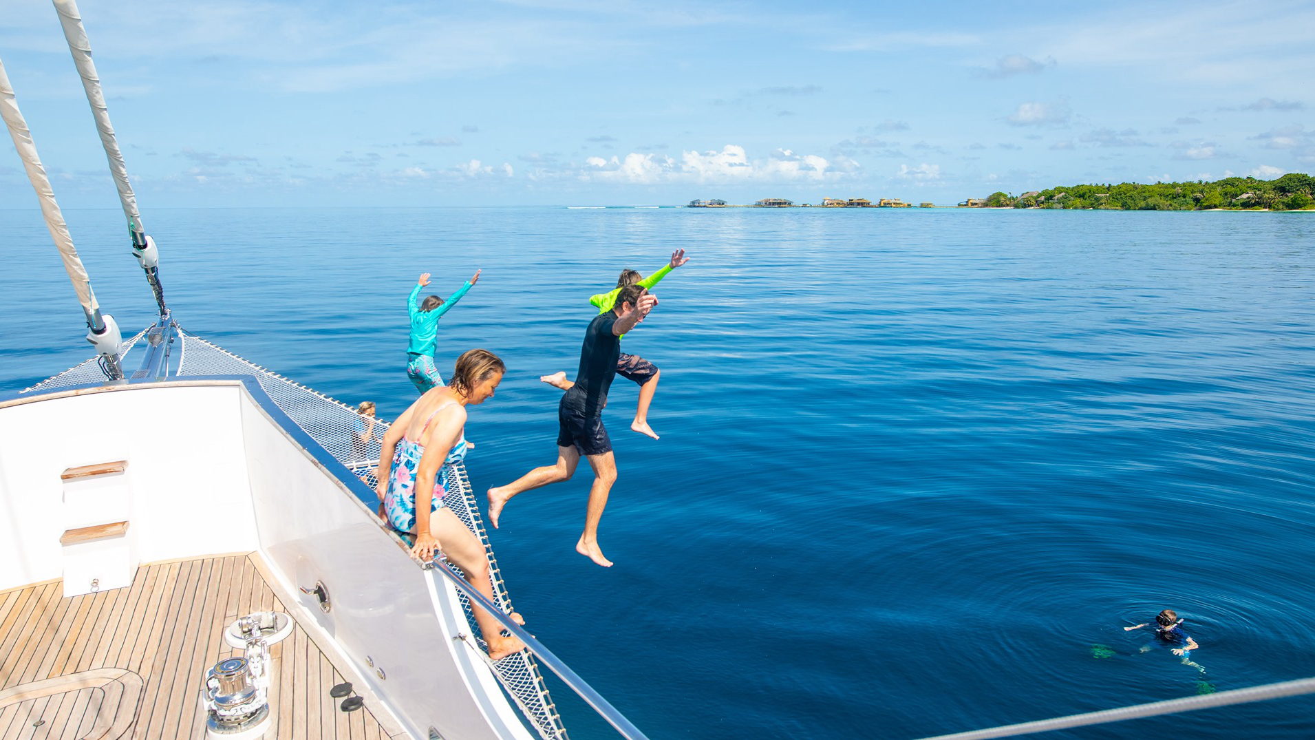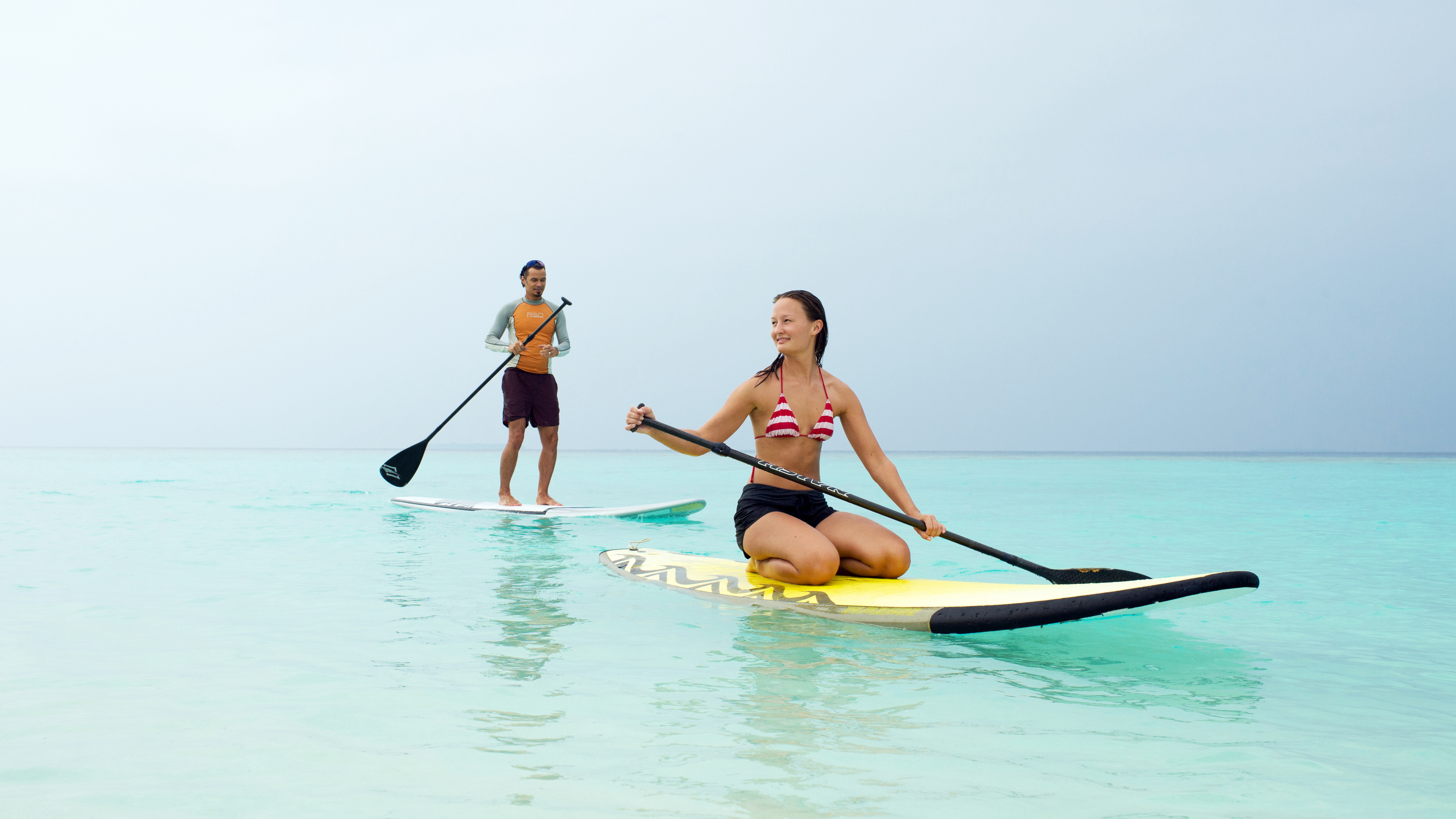 欢迎你随时借用我们准备的免费潜水面镜和蛙鞋,探索这片海域的神奇魅力。若你想去更远的地方冒险,我们的海洋生物学家很乐意做你的向导,带你到最难忘的浮潜地点——巴阿环礁。其中最推荐的是,在哈尼法如湾与鲸鲨们一起徜徉——因为它们会在8月至11月迁徙之时经过此处。我们提供一系列免费的非机动水上运动,包括皮划艇、直立式桨板、风帆冲浪和双体船。私人学费每小时收取额外费用。你还可以体验完全自由的海洋。滑翔、跳水、滑翔——所有这些都可以通过海波实现。学会像鱼一样在水面上和波浪下游动。