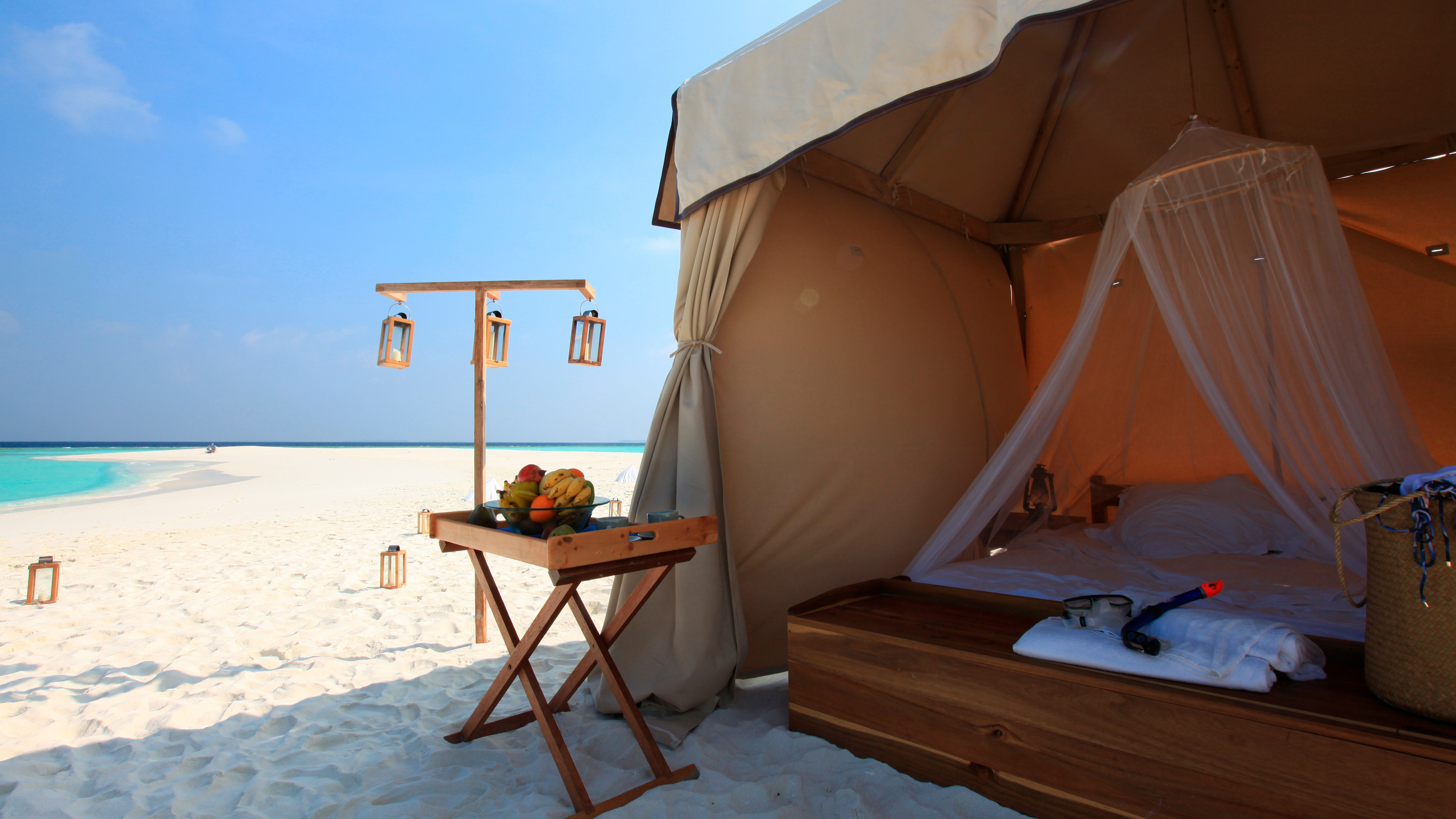 从观景台上沐浴在夜空中。你的别墅套房就在海滩上,有自己的阳台通向温暖的沙滩。沉入四柱床,而开放式客厅通过落地玻璃窗将室外带入室内。