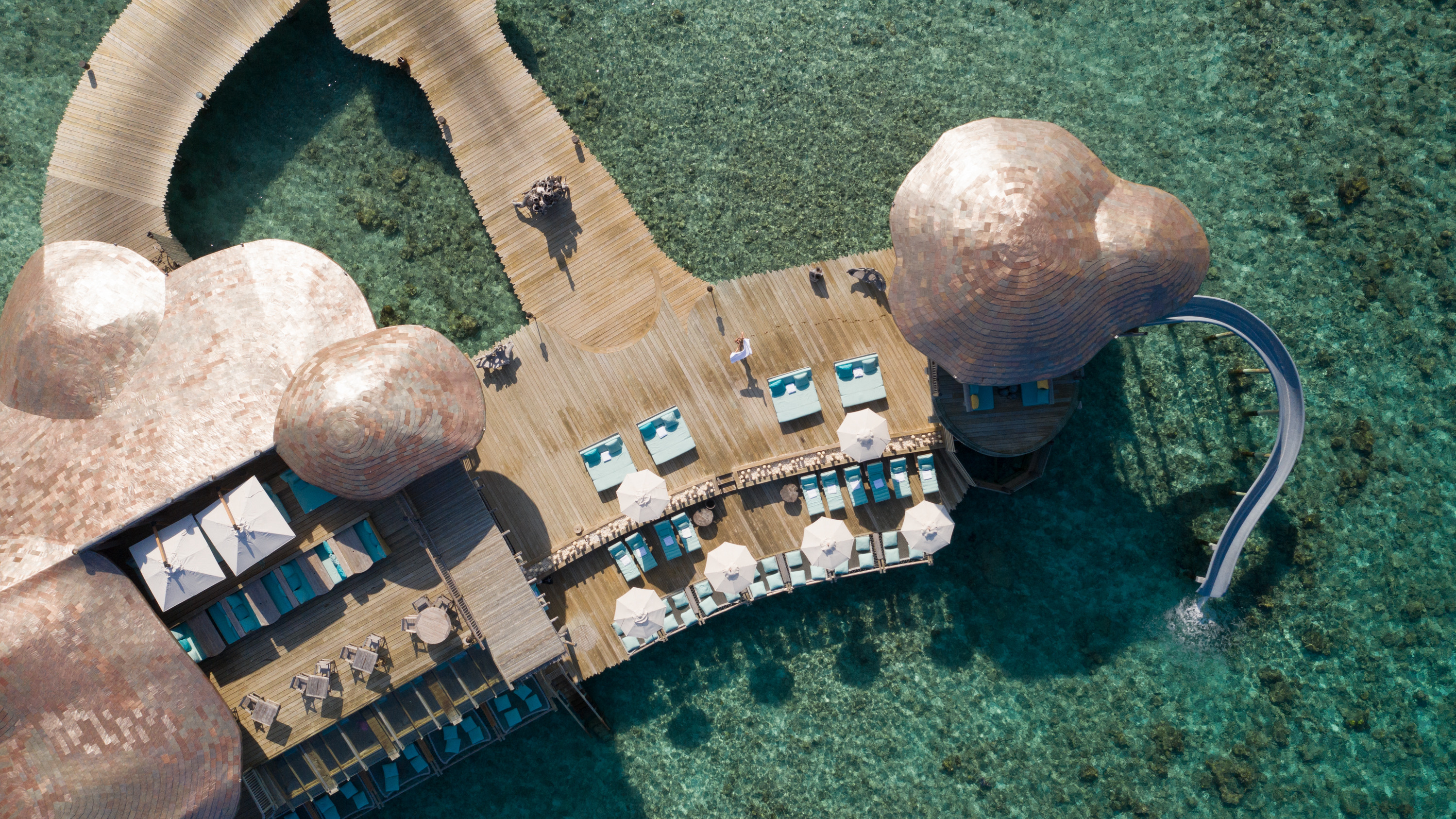 从主岛通过一个弯曲的码头进入,单卧室带滑梯的水上别墅直接坐落在印度洋清澈的水面上。这座宽敞的别墅以大海为灵感,采用别致、低调的装饰,拥有宽敞明亮的居住区,附近还有食品储藏室和迷你酒吧。