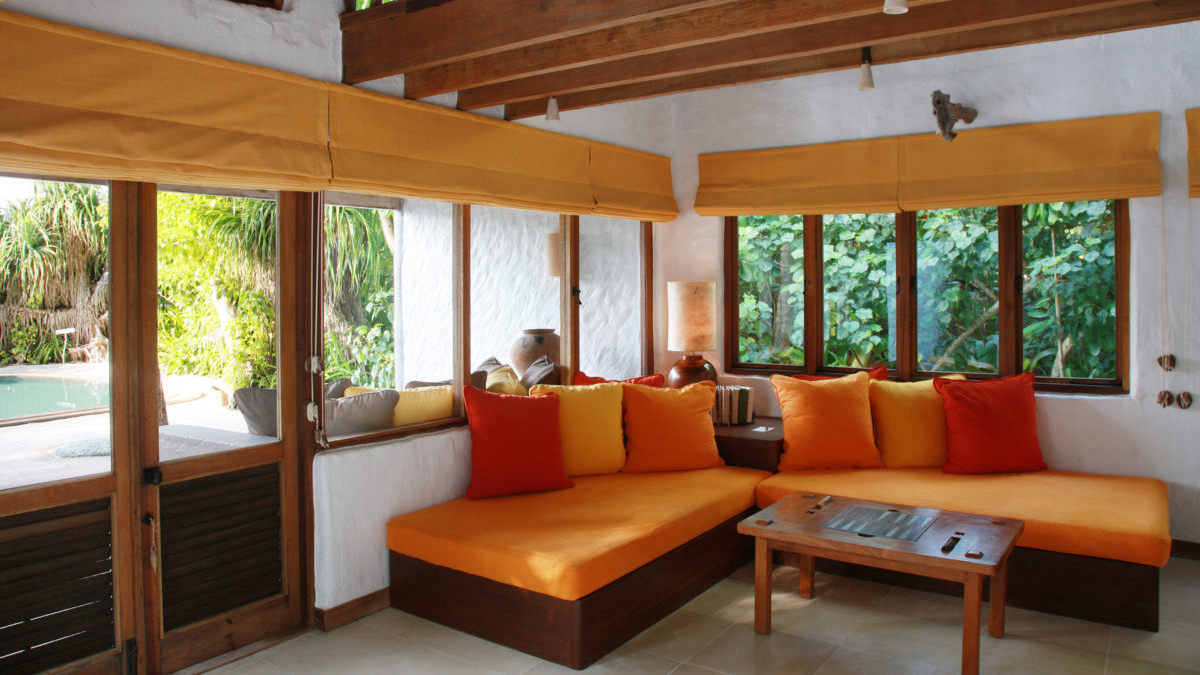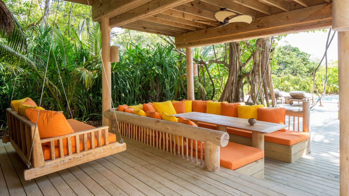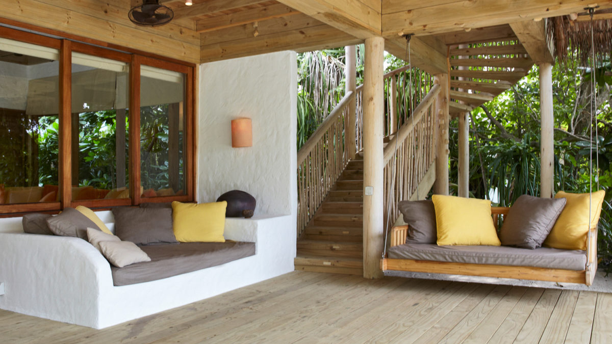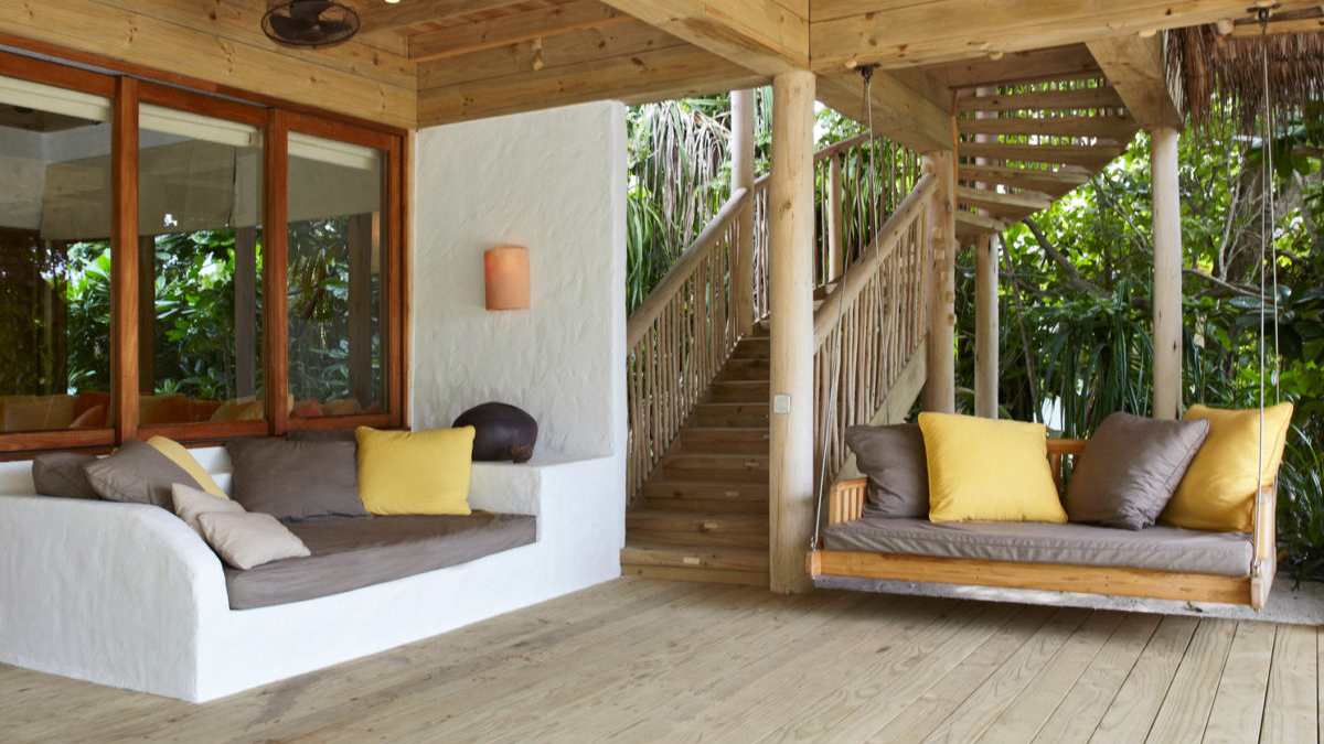 这座海滨别墅拥有两间卧室,内部布置广泛,包括楼上和楼下的卧室,以及一个带有大型日间床的双高起居区,非常适合在一天的探索后沉入其中。在户外,在私人游泳池里洗个澡,在露台上的秋千上放松一下,或者在你自己的热带花园避难所里享受一次沐浴或淋浴,那里只有头顶上的天空。