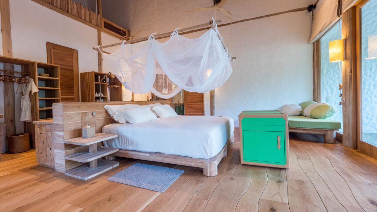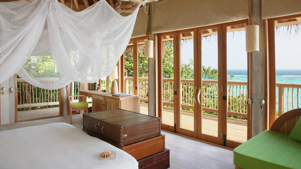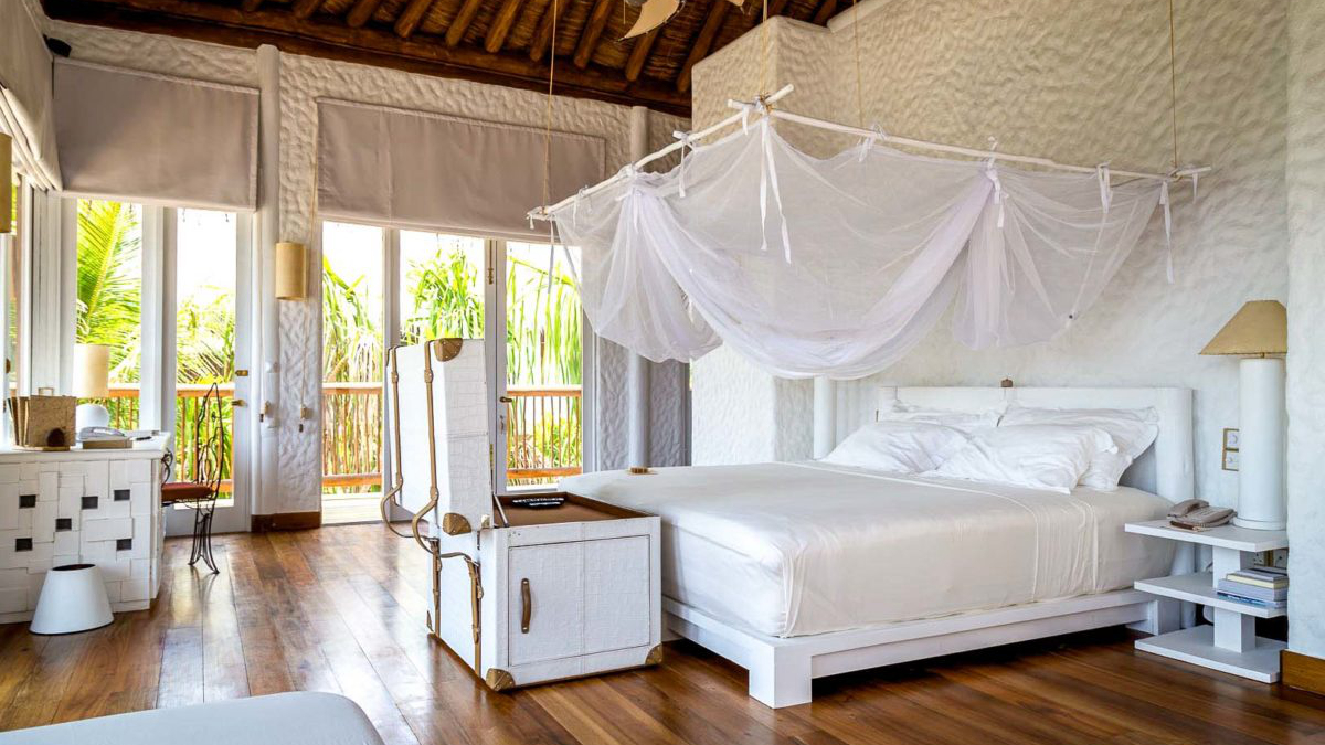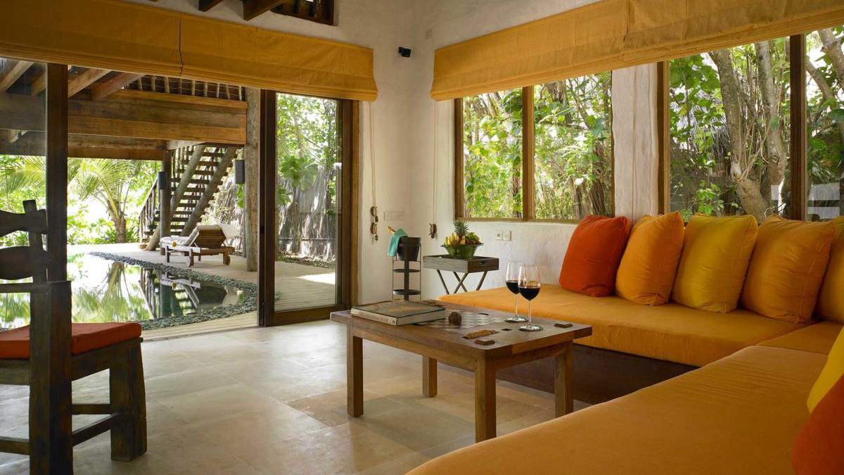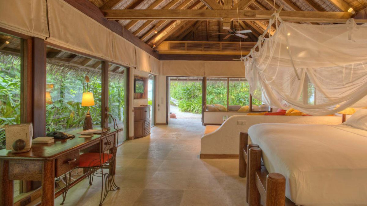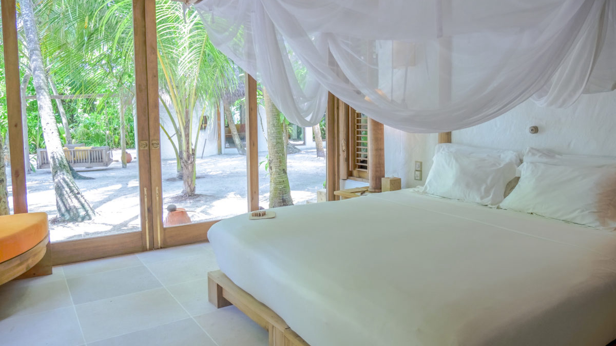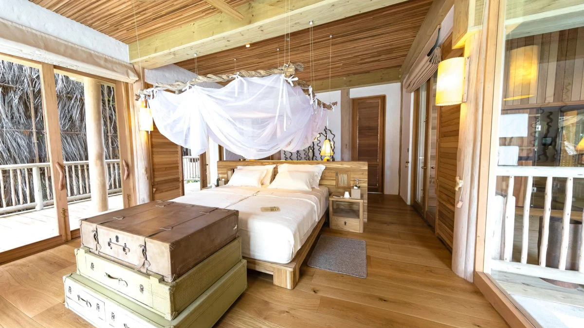 从观景台上沐浴在夜空中。你的别墅套房就在海滩上,有自己的阳台通向温暖的沙滩。沉入四柱床,而开放式客厅通过落地玻璃窗将室外带入室内。