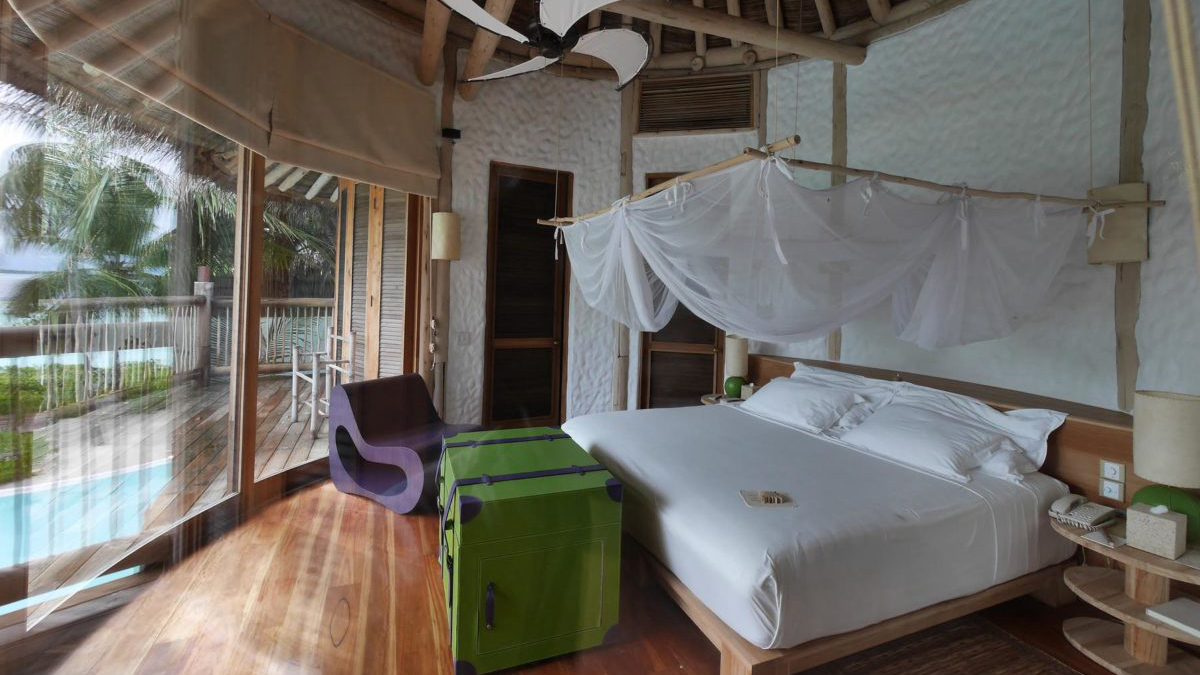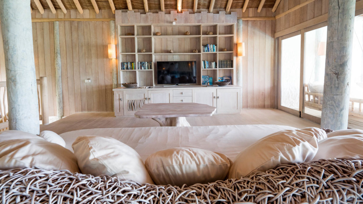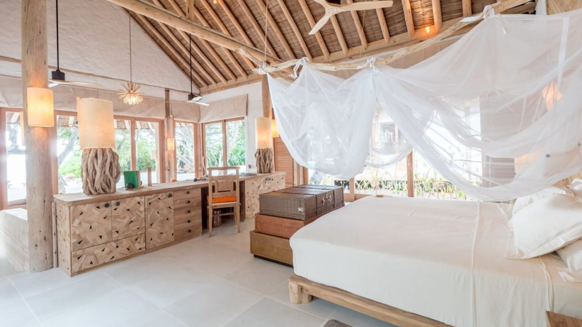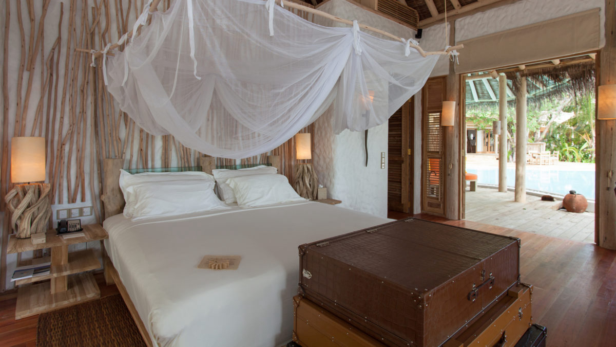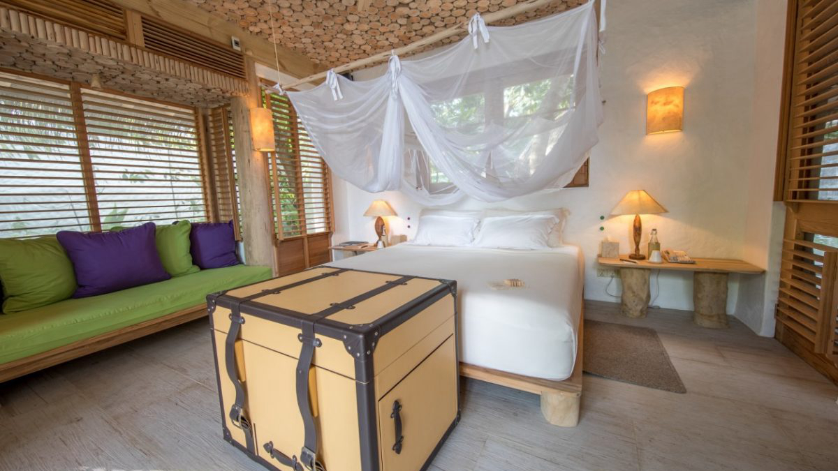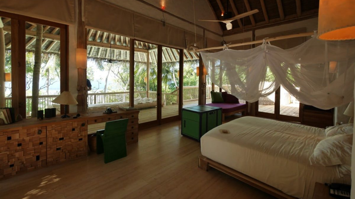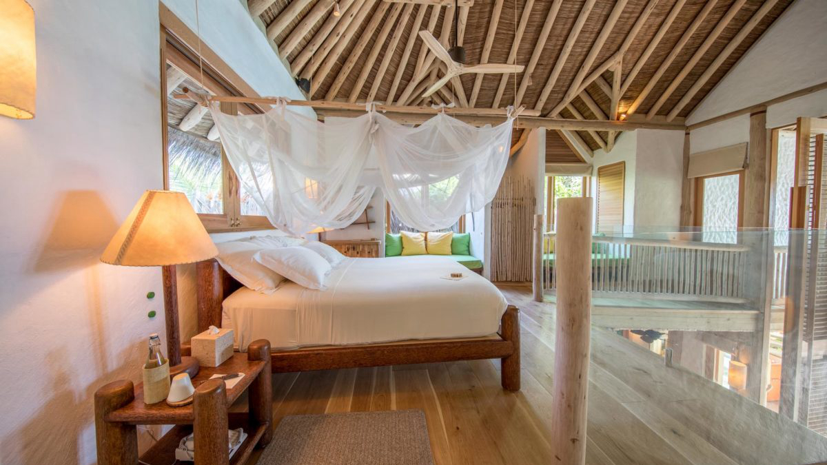 从观景台上沐浴在夜空中。你的别墅套房就在海滩上,有自己的阳台通向温暖的沙滩。沉入四柱床,而开放式客厅通过落地玻璃窗将室外带入室内。