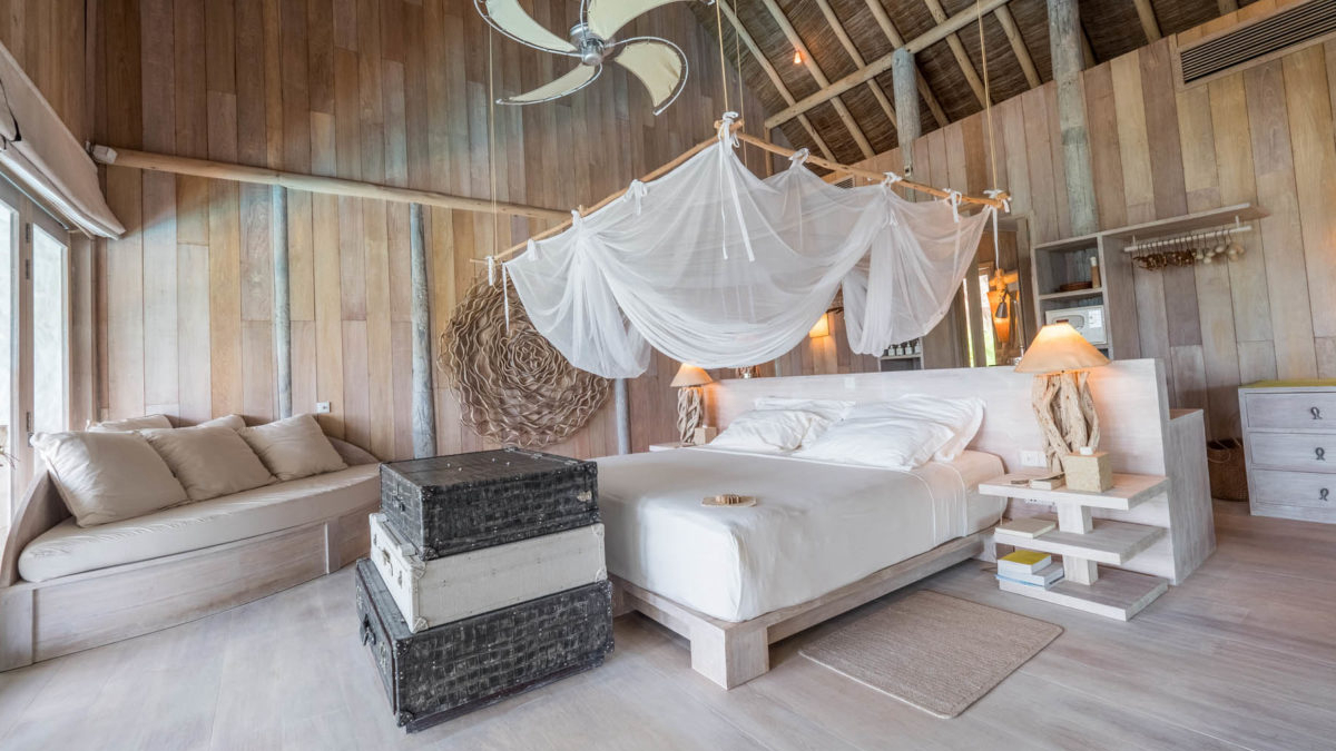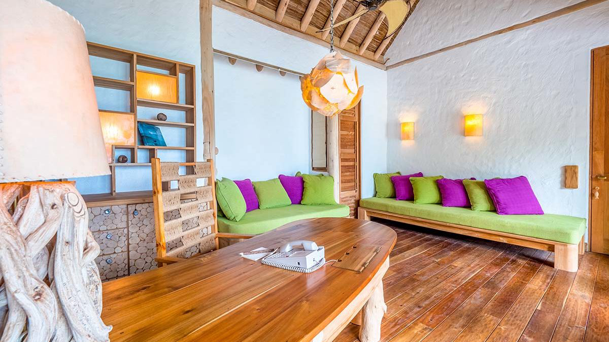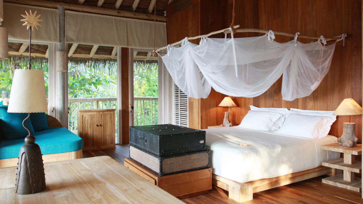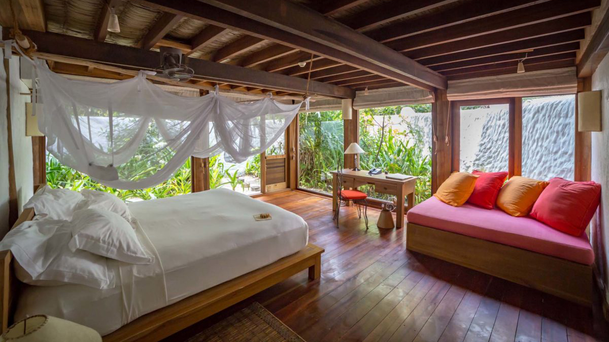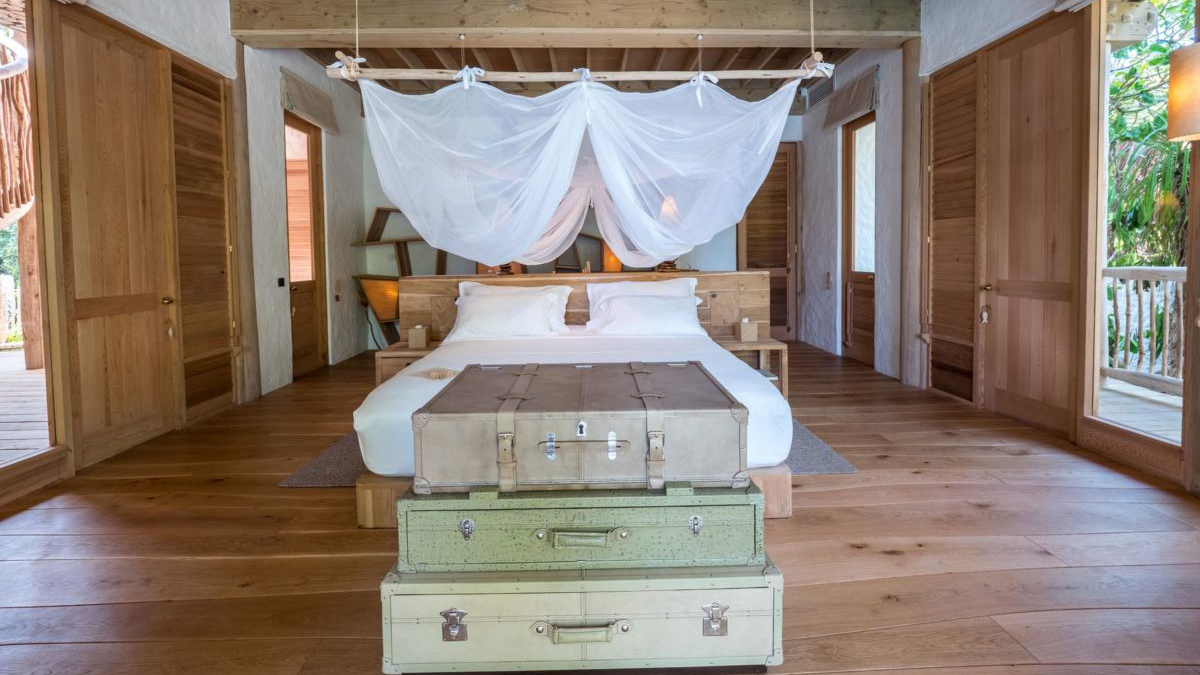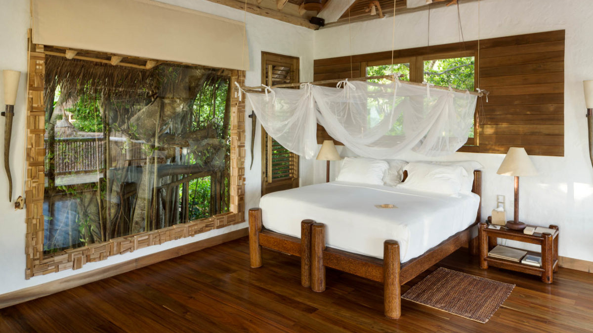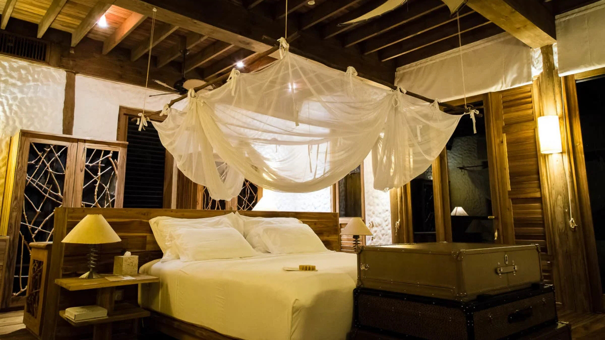 从观景台上沐浴在夜空中。你的别墅套房就在海滩上,有自己的阳台通向温暖的沙滩。沉入四柱床,而开放式客厅通过落地玻璃窗将室外带入室内。