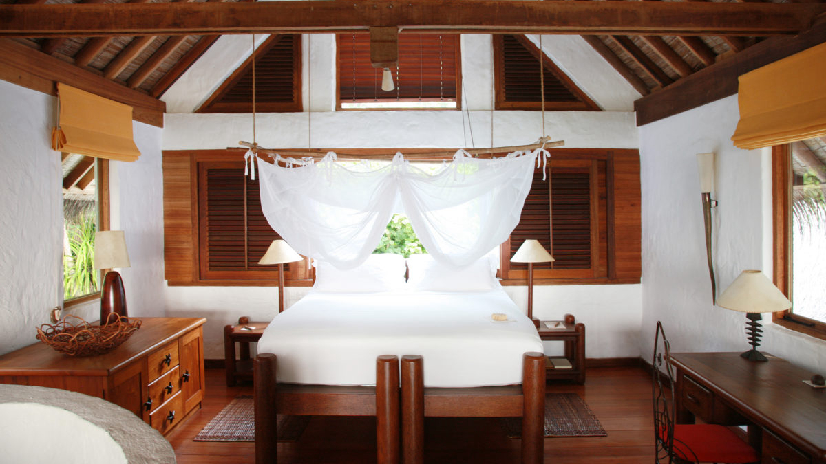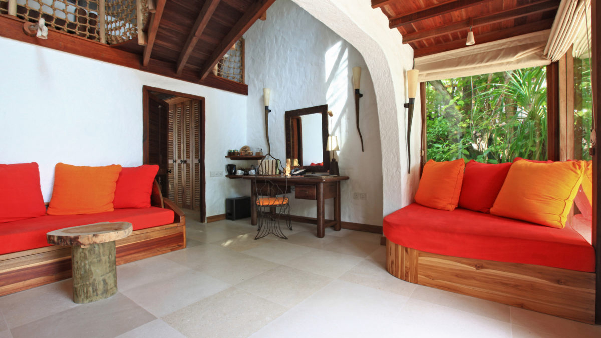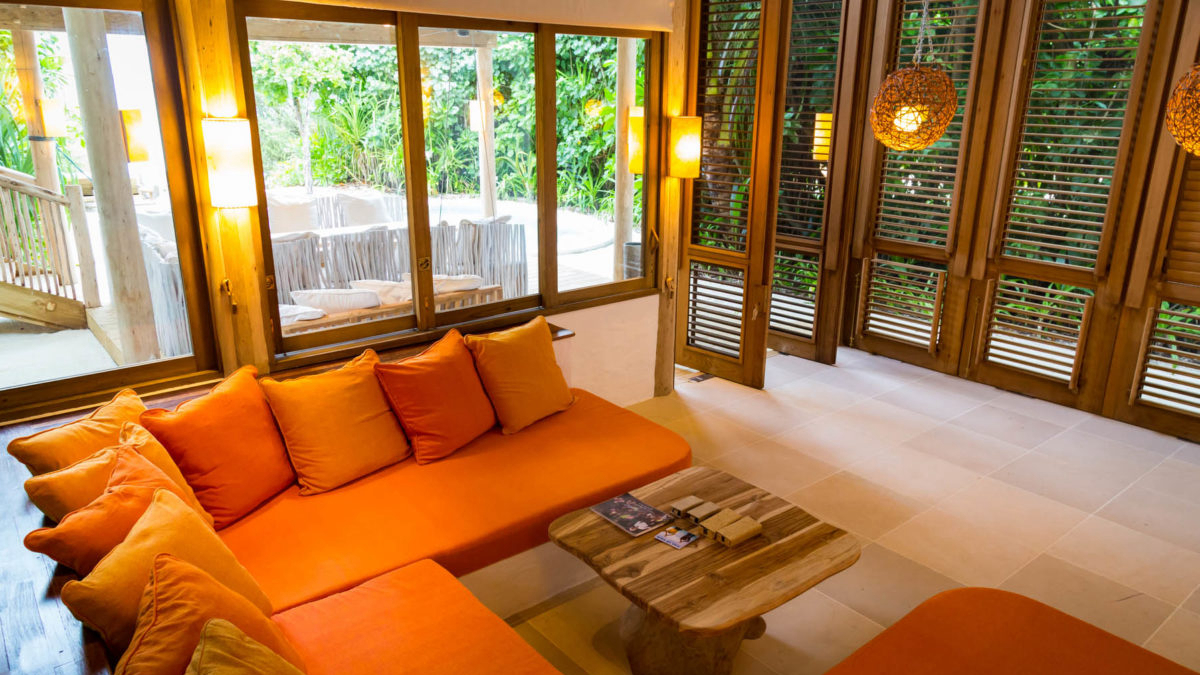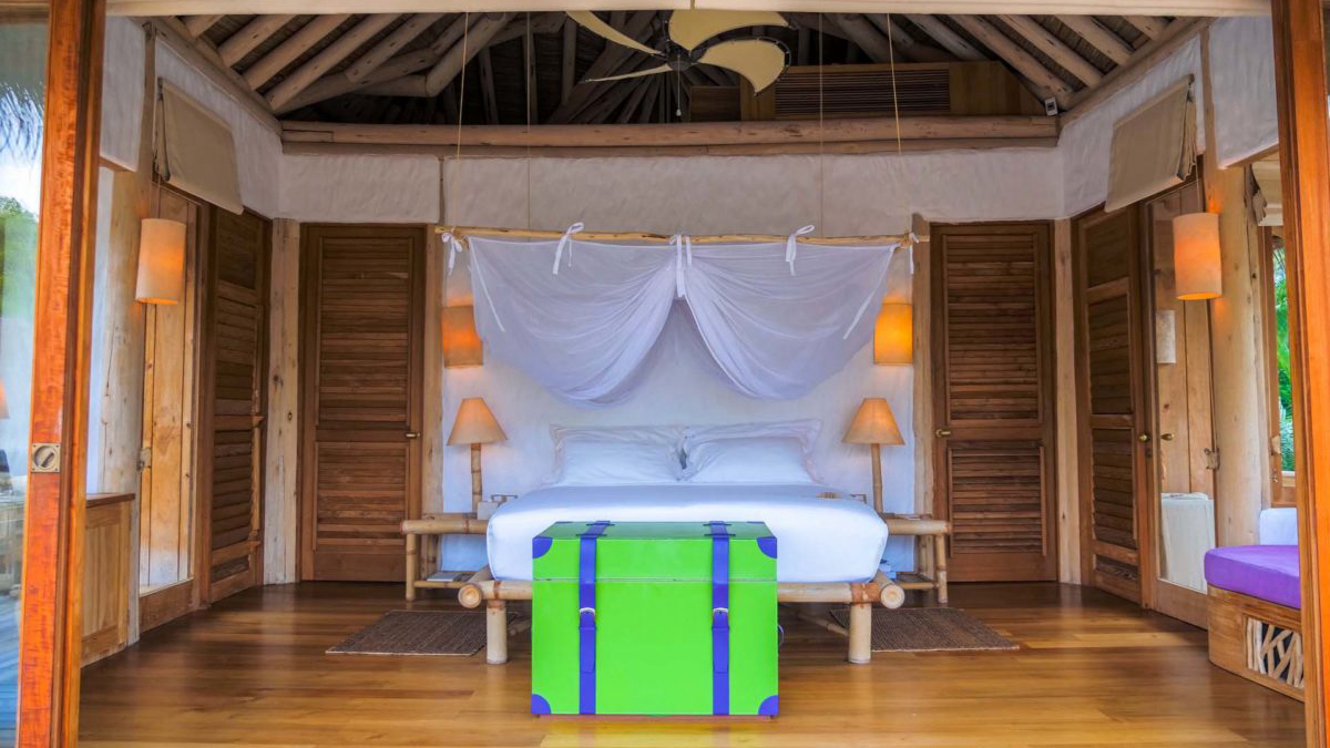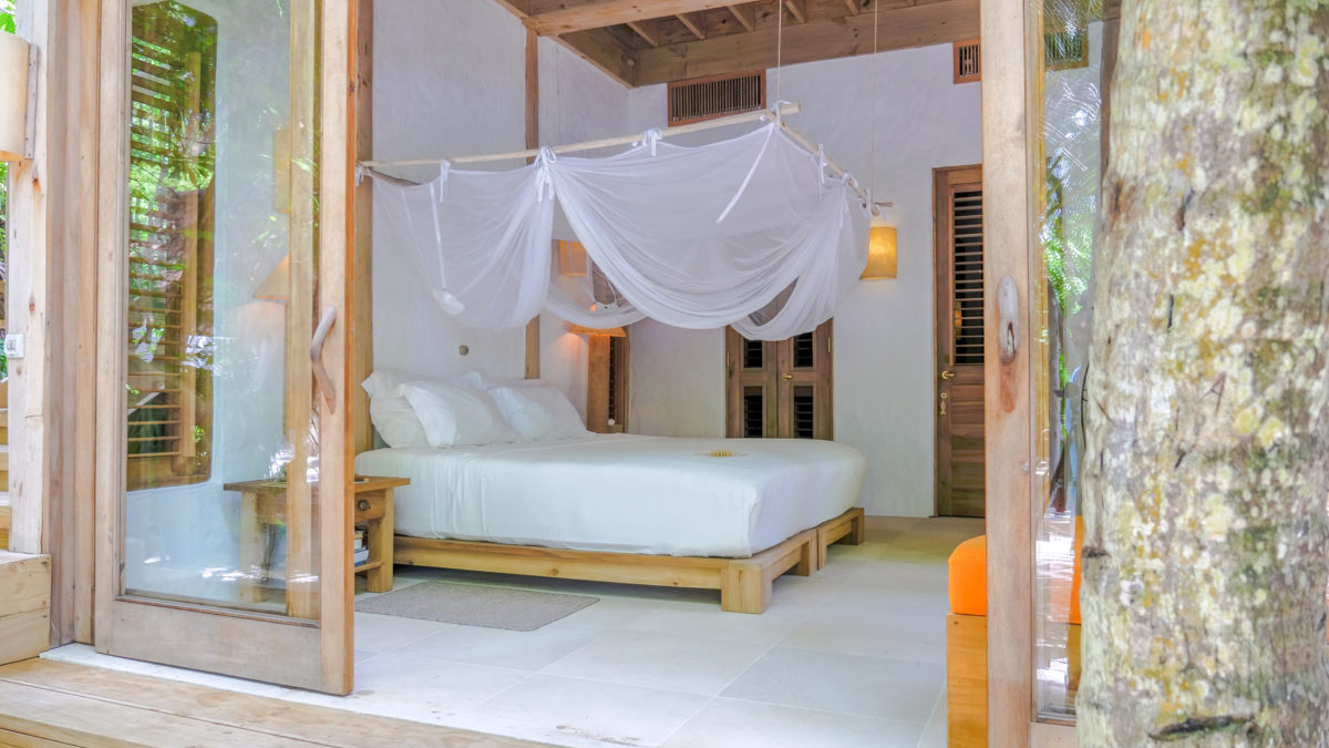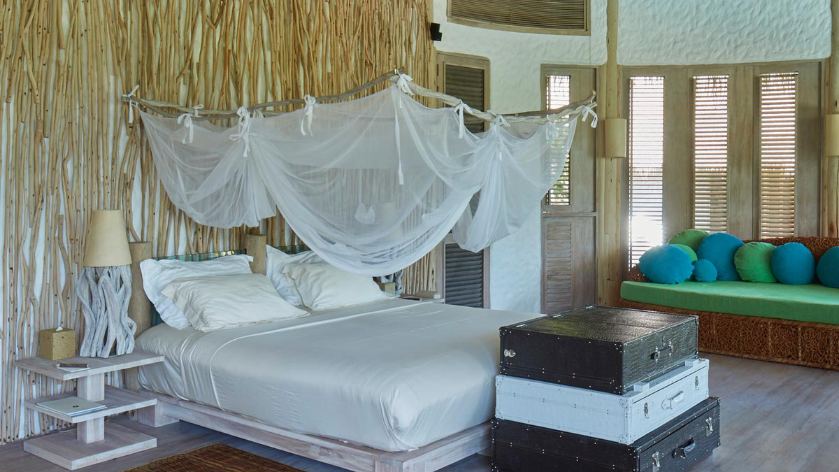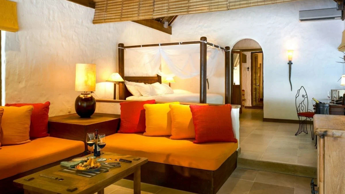 从观景台上沐浴在夜空中。你的别墅套房就在海滩上,有自己的阳台通向温暖的沙滩。沉入四柱床,而开放式客厅通过落地玻璃窗将室外带入室内。