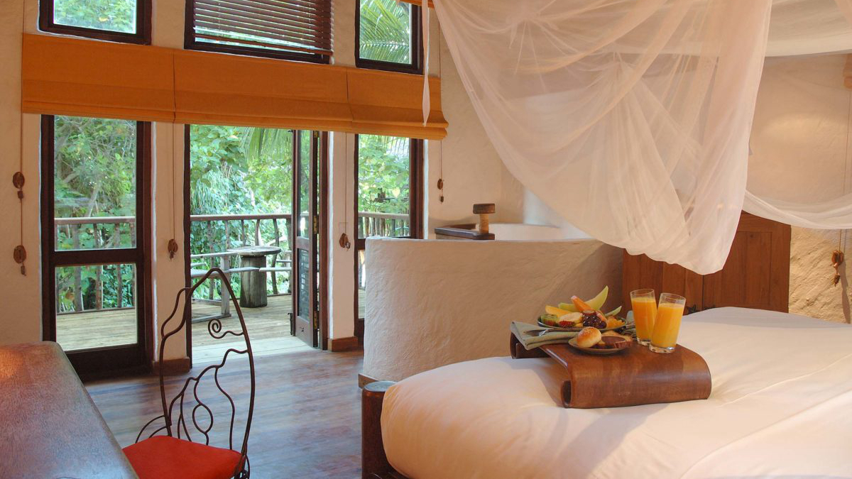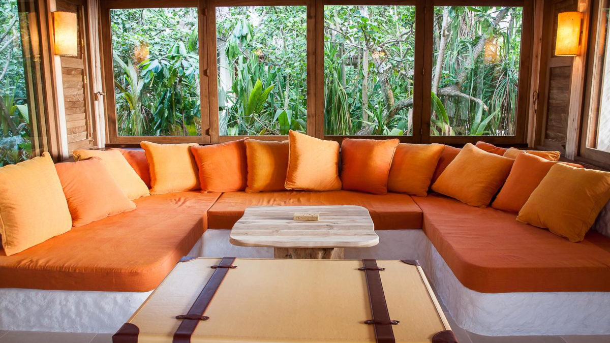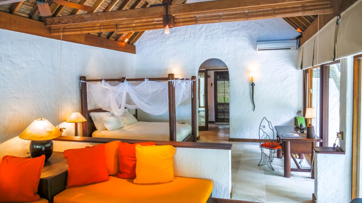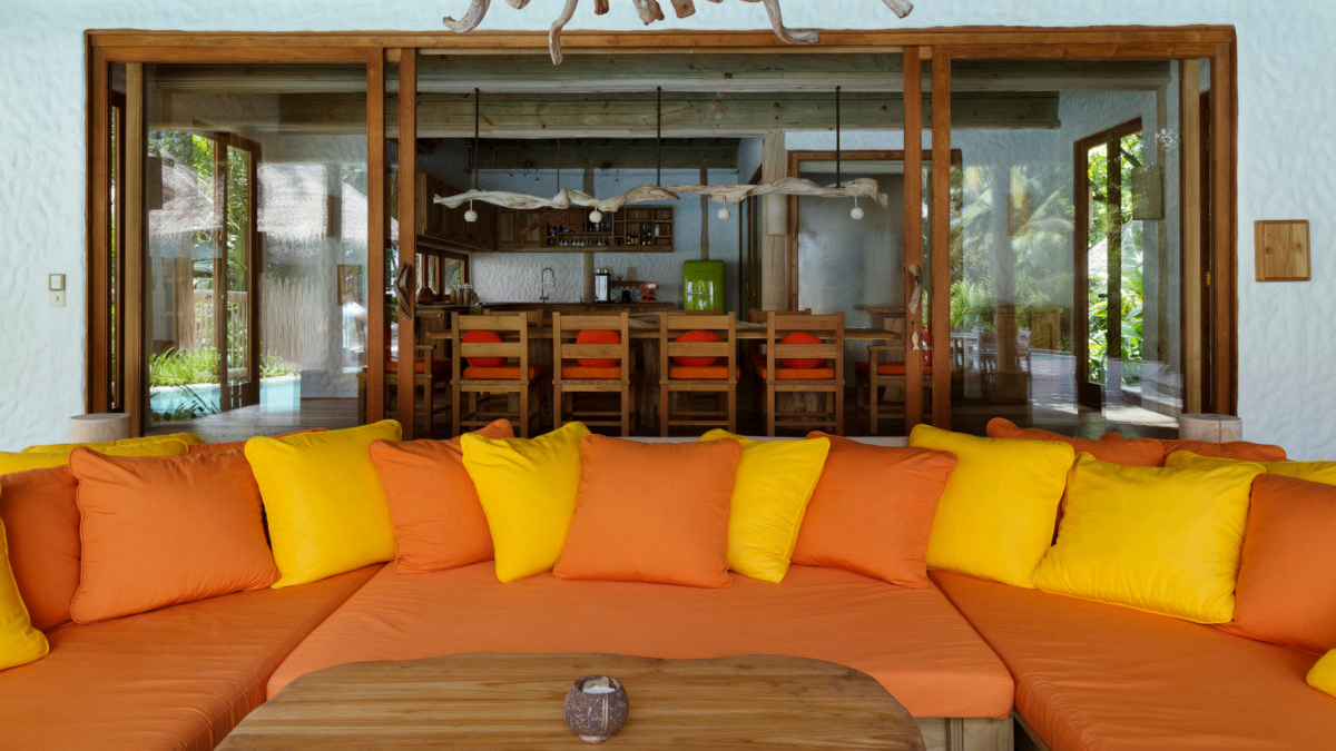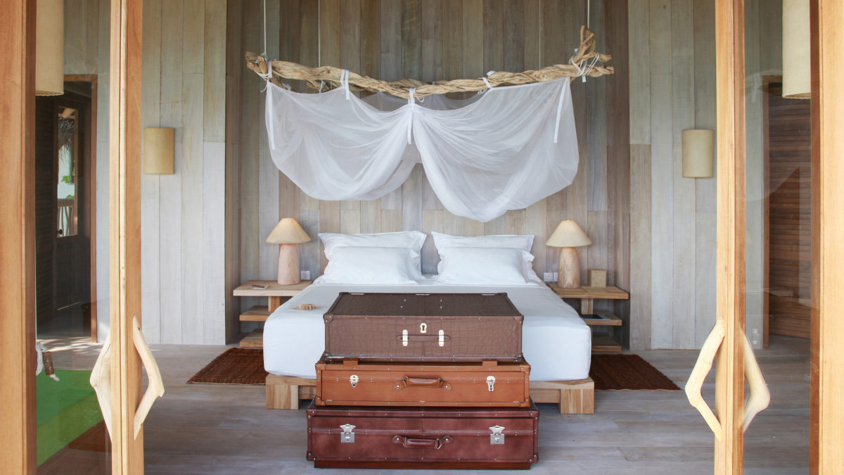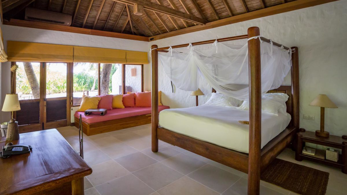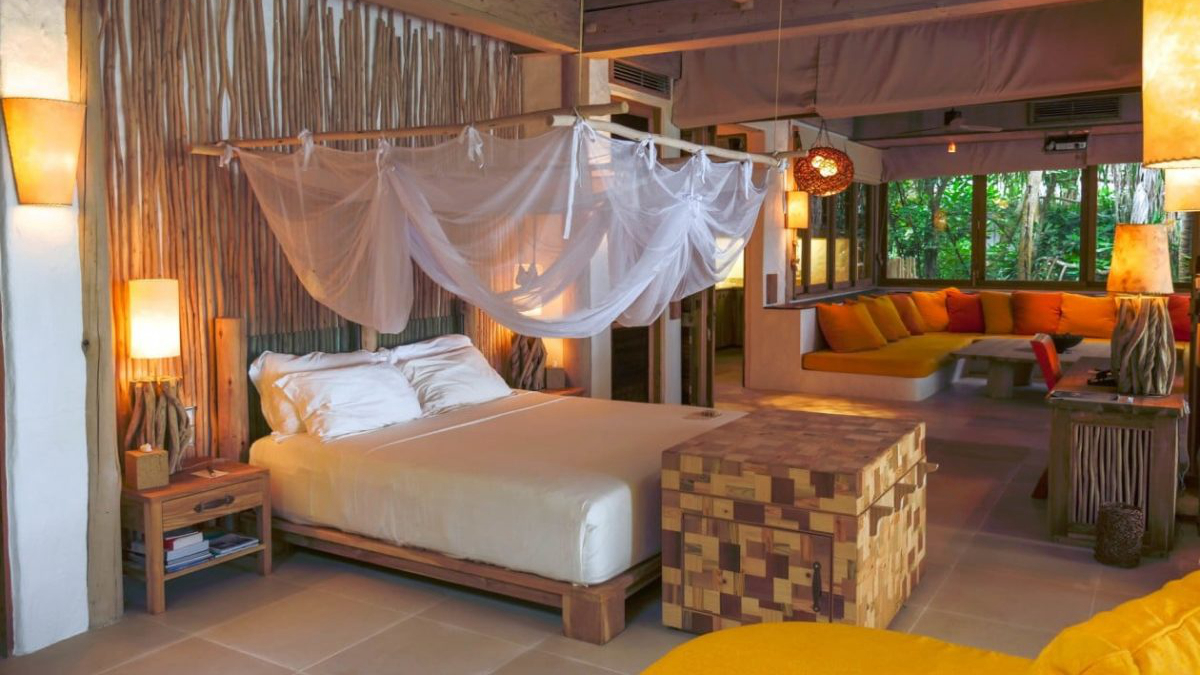 从观景台上沐浴在夜空中。你的别墅套房就在海滩上,有自己的阳台通向温暖的沙滩。沉入四柱床,而开放式客厅通过落地玻璃窗将室外带入室内。
