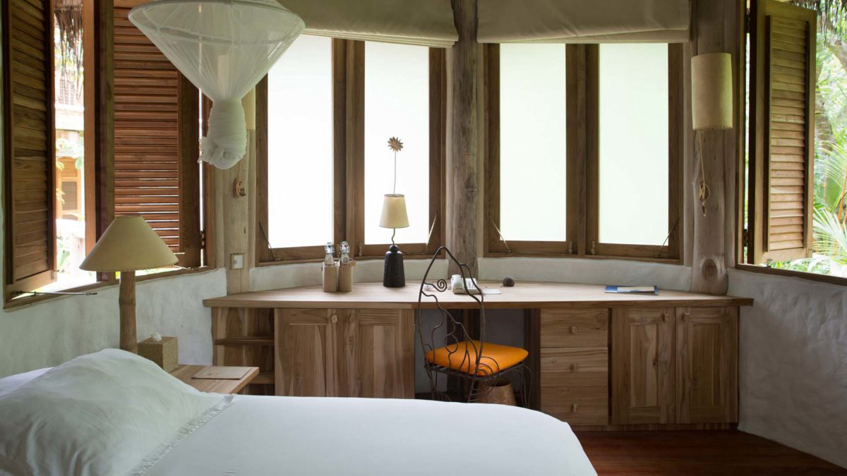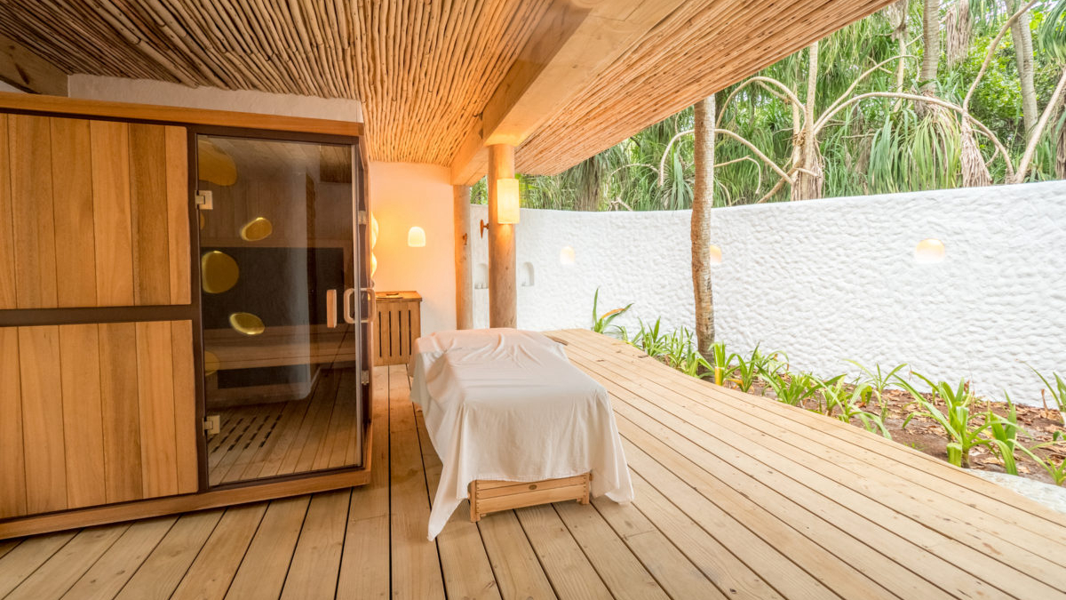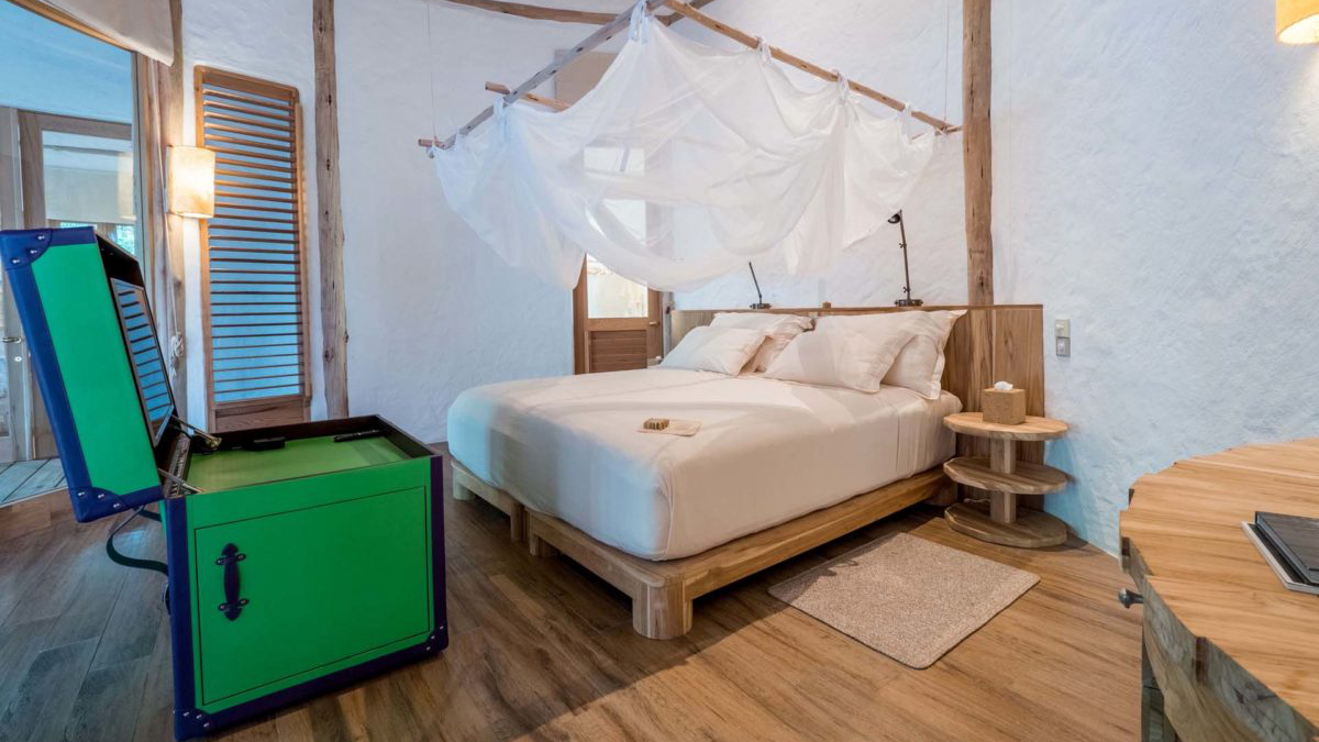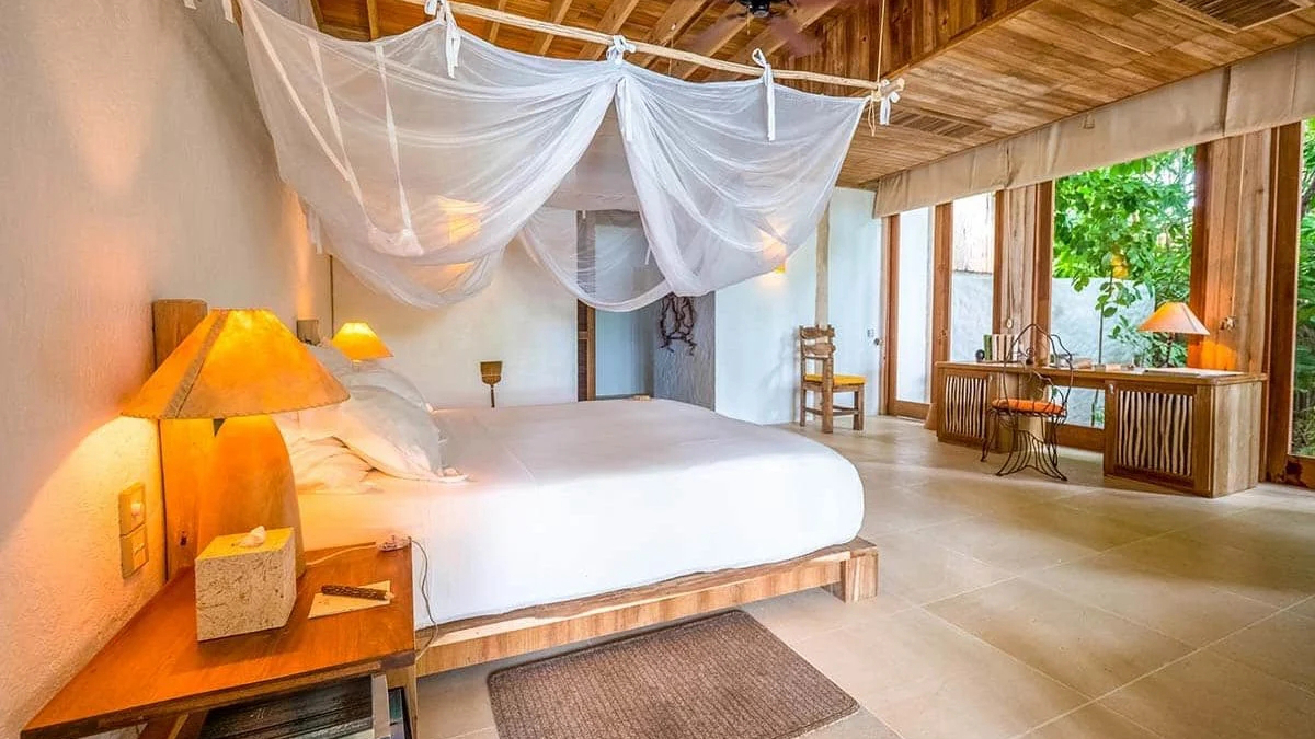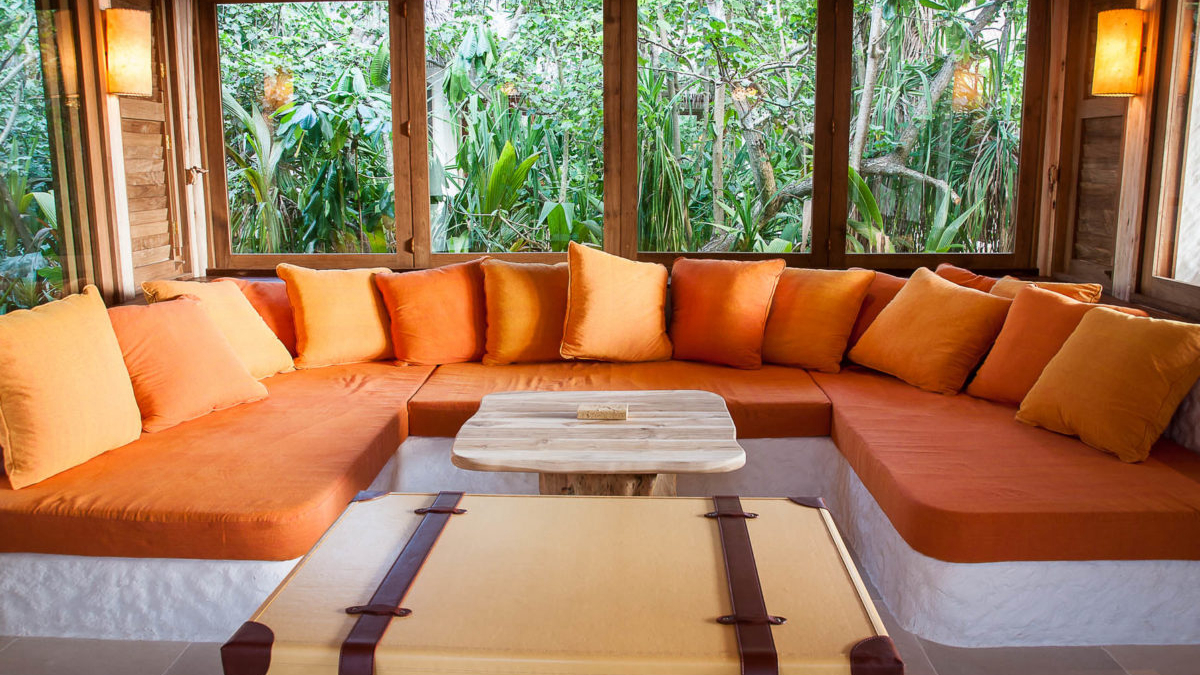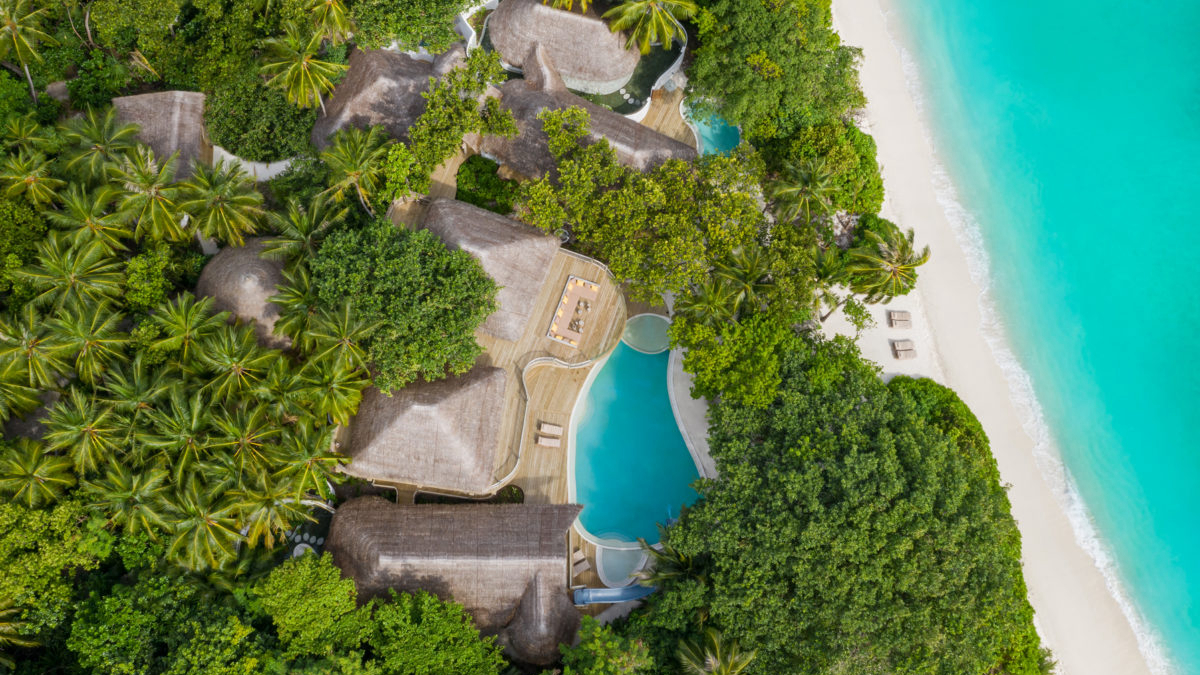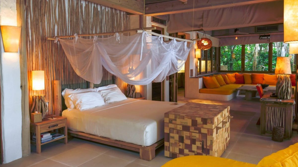 从观景台上沐浴在夜空中。你的别墅套房就在海滩上,有自己的阳台通向温暖的沙滩。沉入四柱床,而开放式客厅通过落地玻璃窗将室外带入室内。