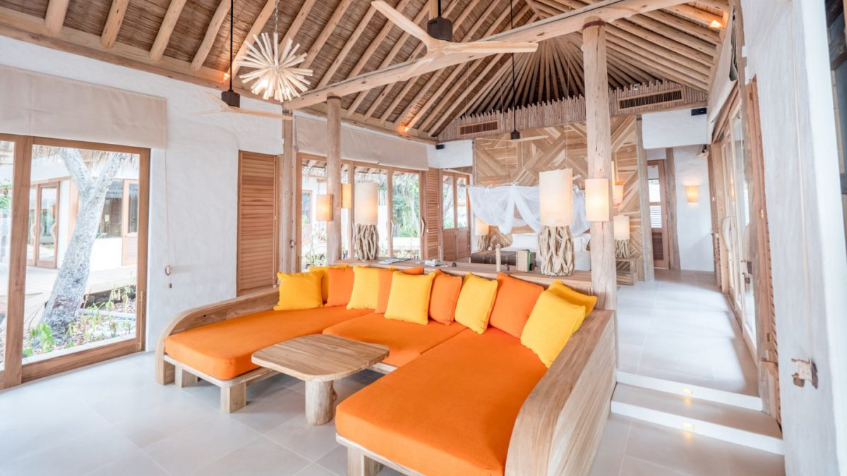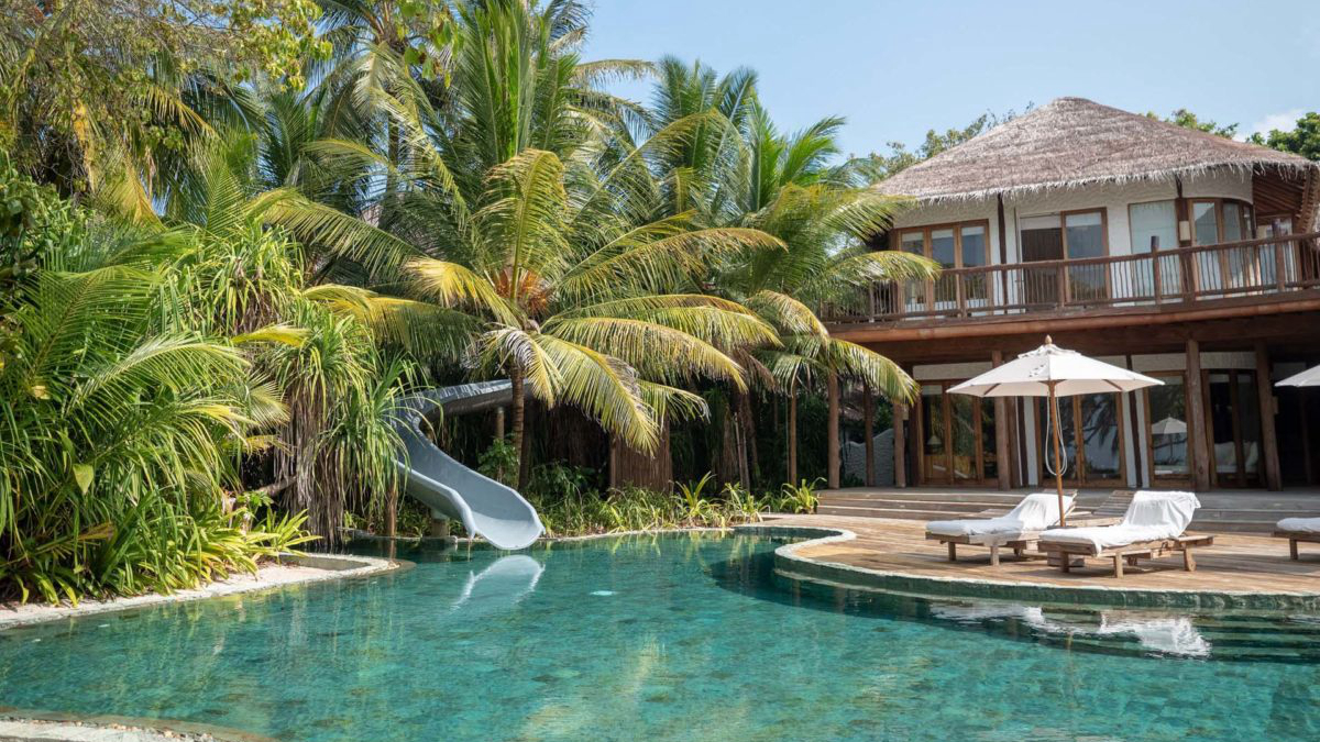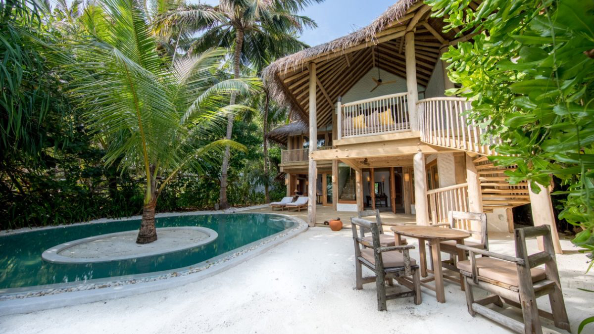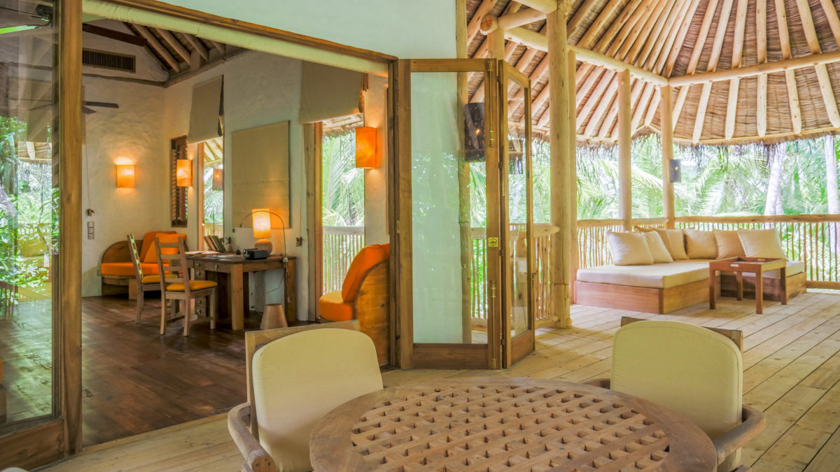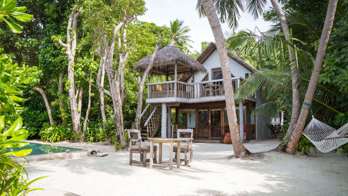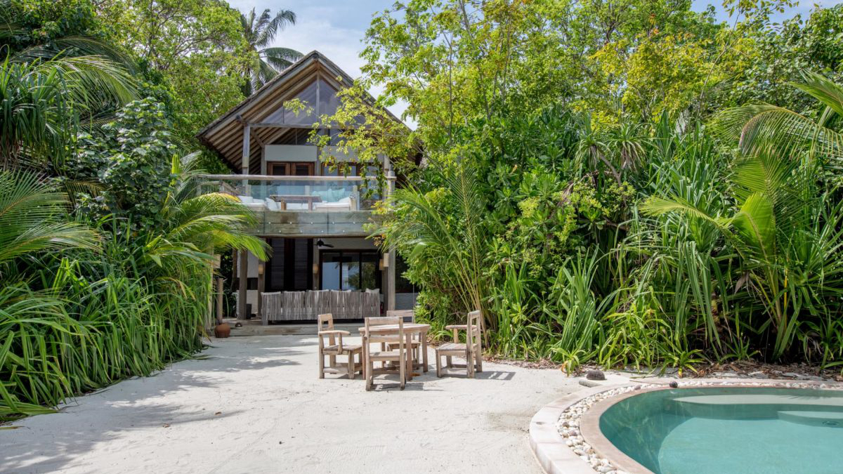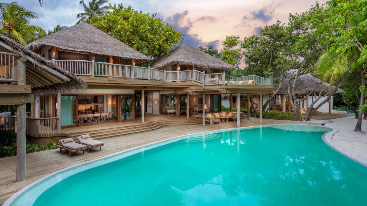 这套宽敞的四居室别墅套房被郁郁葱葱的雨林环绕,门阶上有白色的马尔代夫沙滩。在棕榈树之间的吊床上放松,在清凉的水池里凉快,或者骑免费自行车和三轮车探索岛屿小径。它是大型家庭或团体的理想之选,有光线充足的生活区和一个全套的餐具室。
