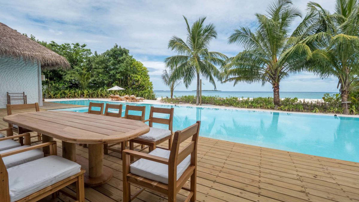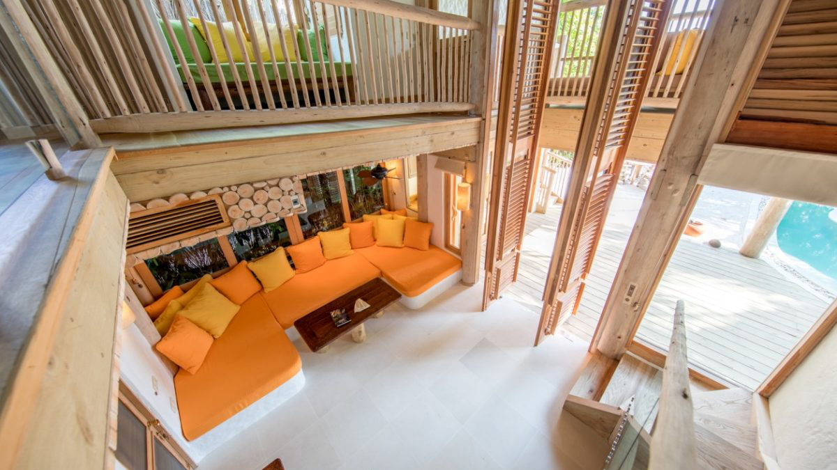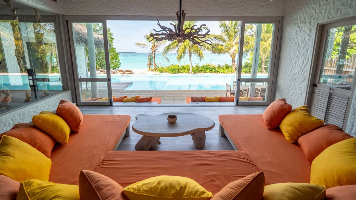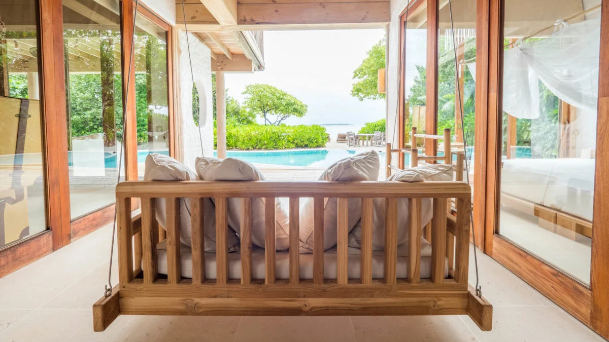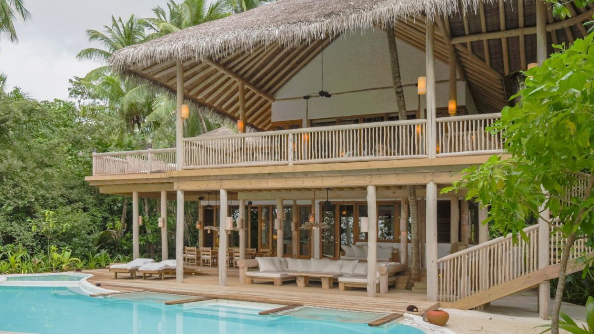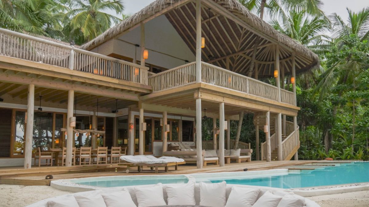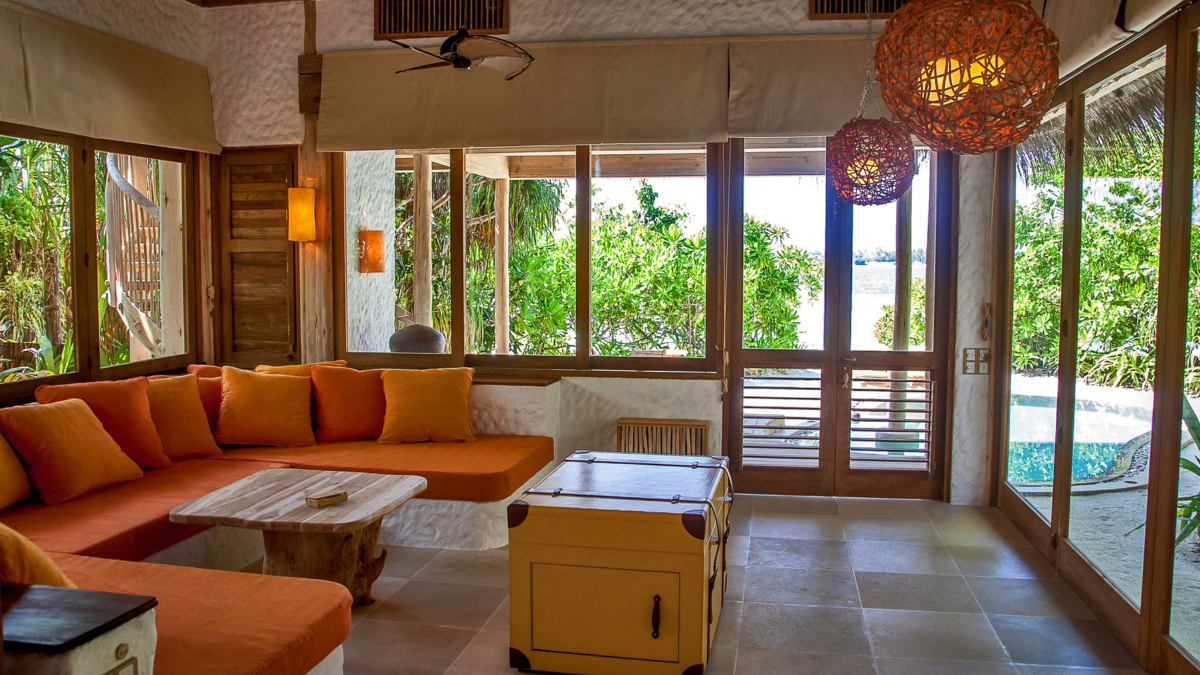 这套宽敞的四居室别墅套房被郁郁葱葱的雨林环绕,门阶上有白色的马尔代夫沙滩。在棕榈树之间的吊床上放松,在清凉的水池里凉快,或者骑免费自行车和三轮车探索岛屿小径。它是大型家庭或团体的理想之选,有光线充足的生活区和一个全套的餐具室。