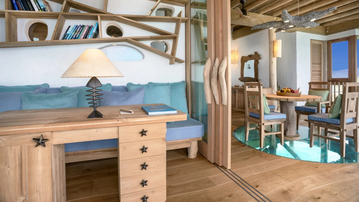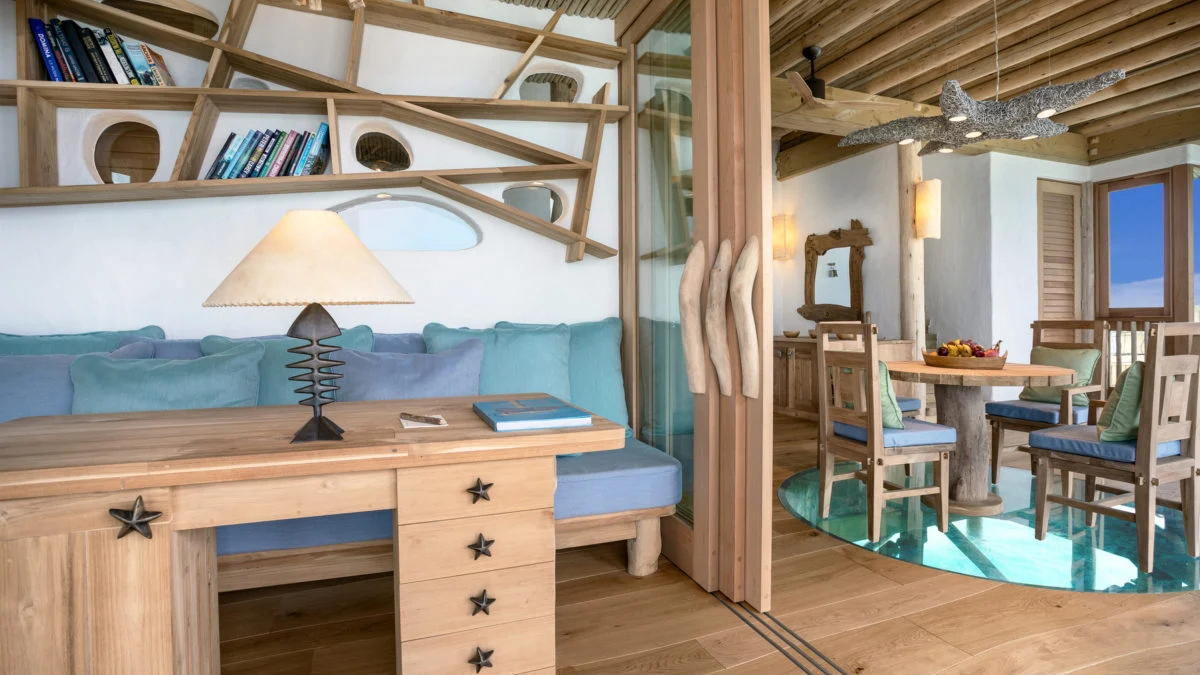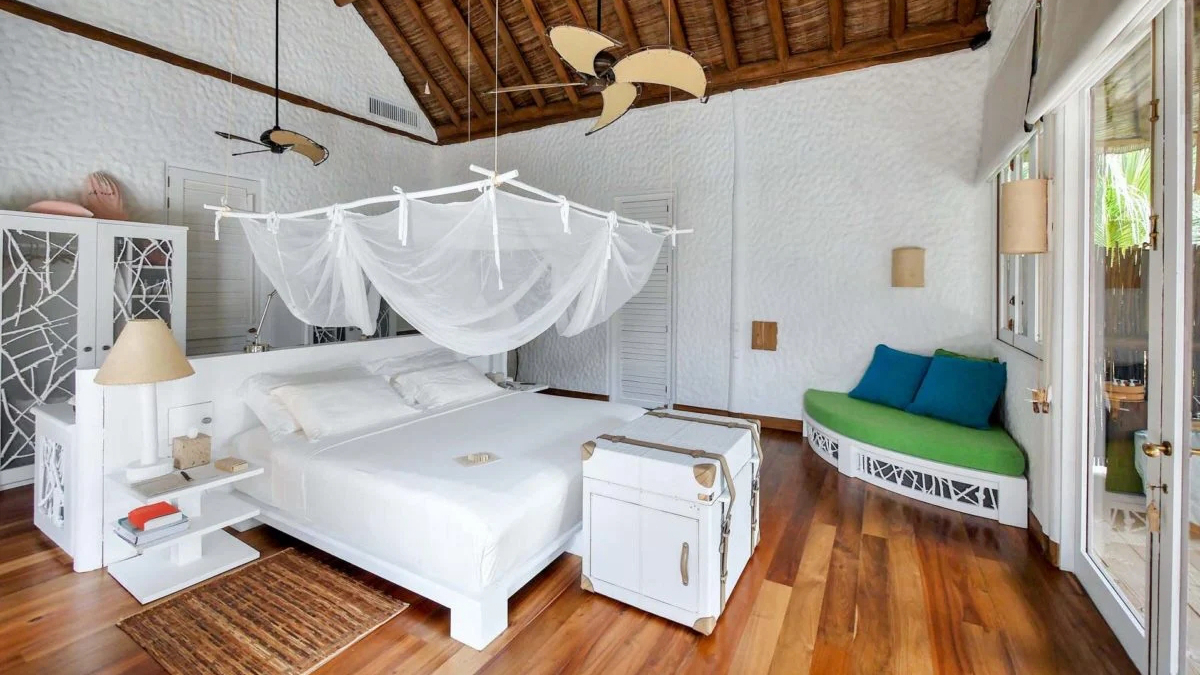 在这套极乐的两层别墅套房中,您可以尽情享受岛屿探险之旅。克鲁索套房距离海滩仅几步之遥,从宽敞的双高生活区和超大的日间床到俯瞰海岸的一楼甲板,都是一种悠闲的奢华。被葱茏的热带花园环绕,跳进自己的私人游泳池,或者在室外浴缸里沐浴在星空下。从库存充足的迷你酒吧中挑选,在舒适的露台秋千上放松一下。
