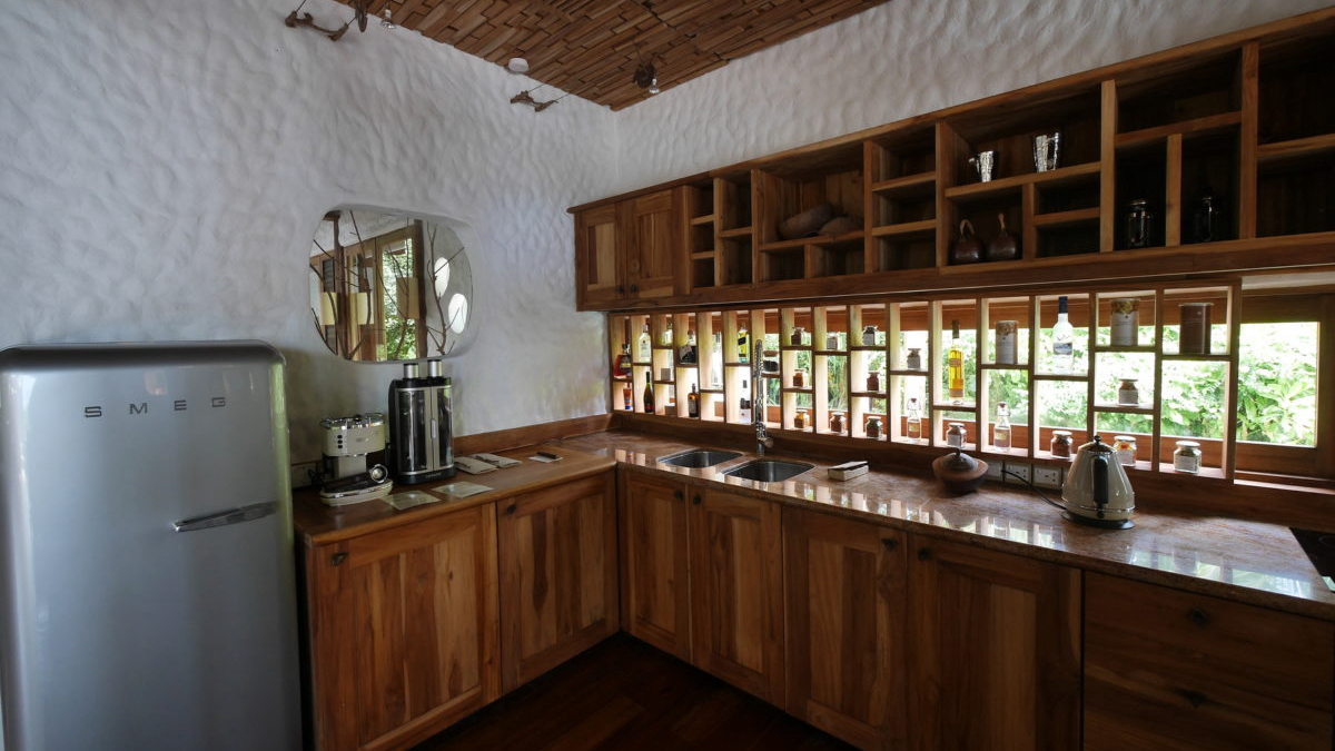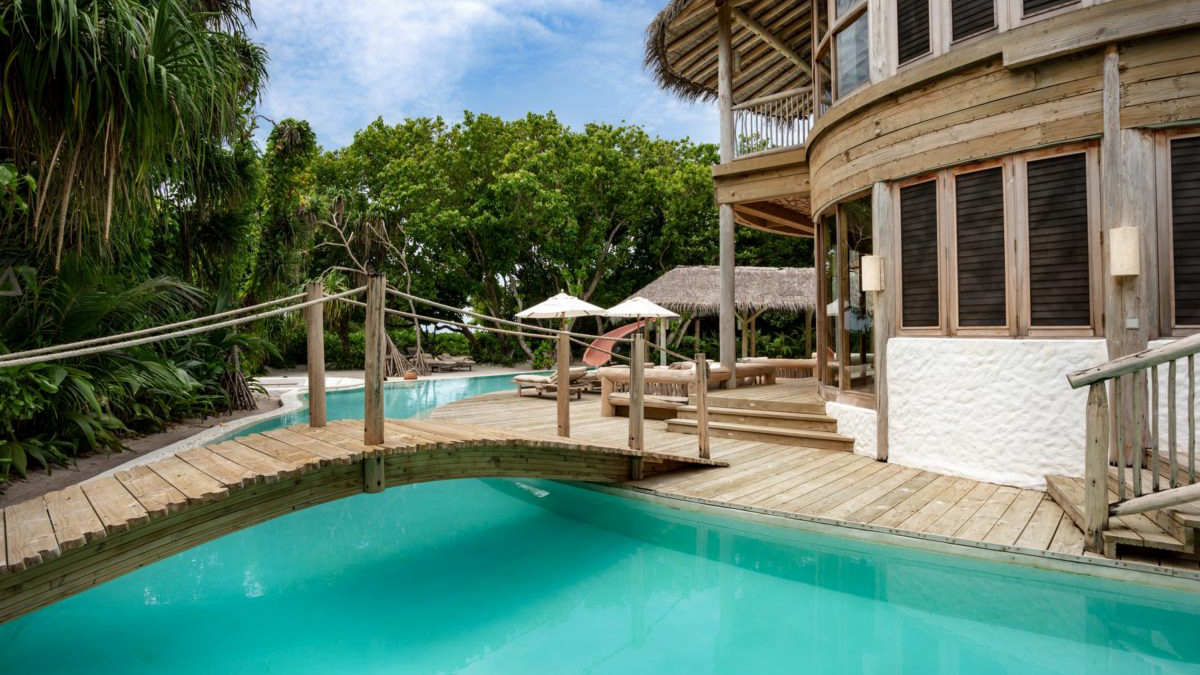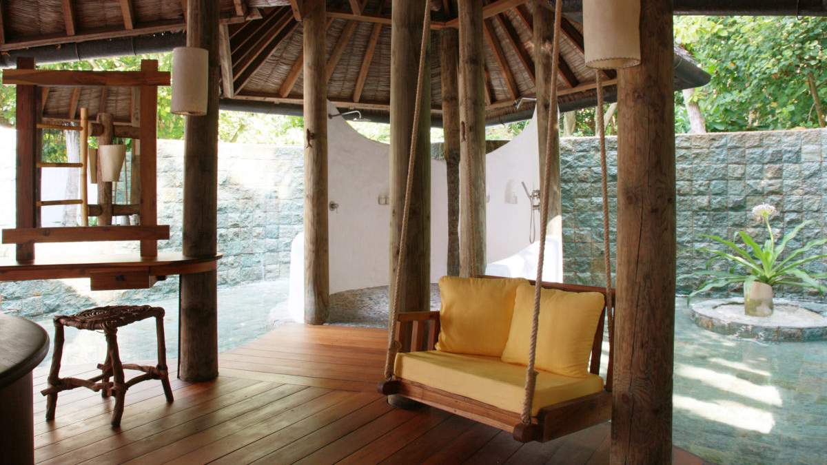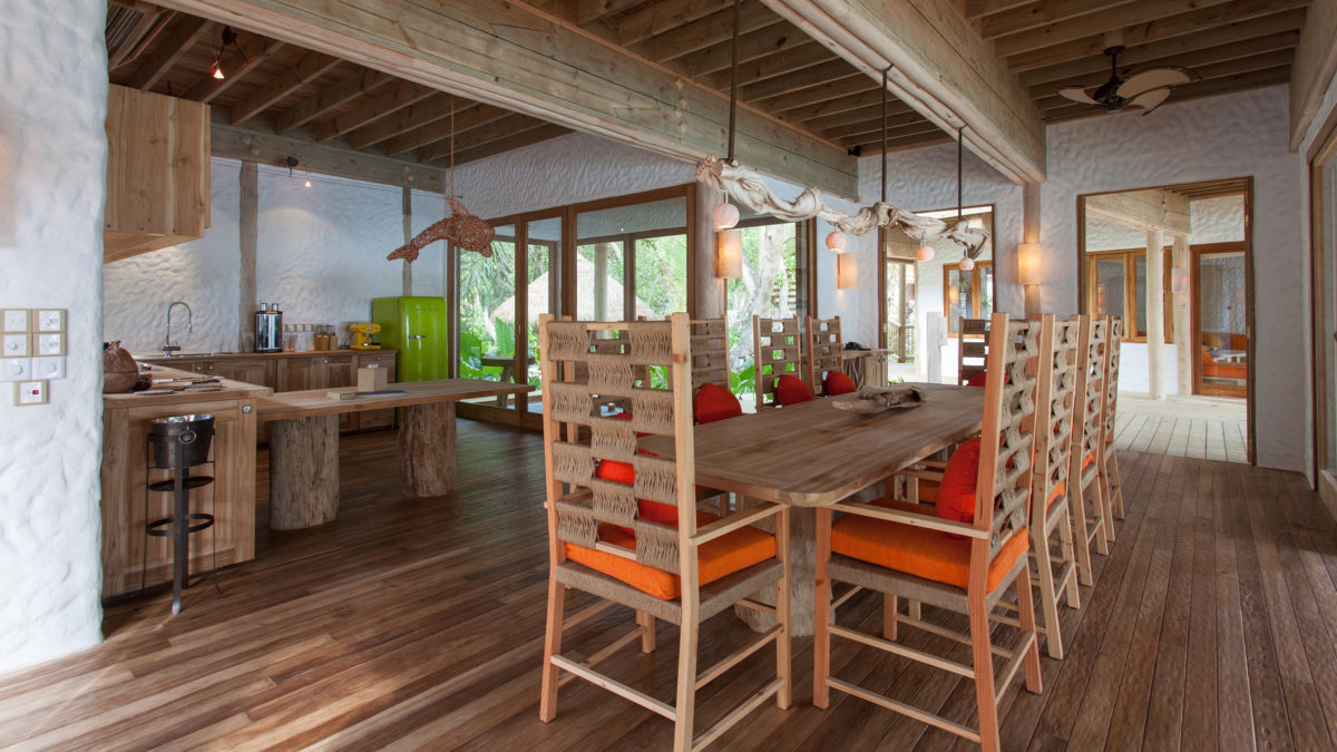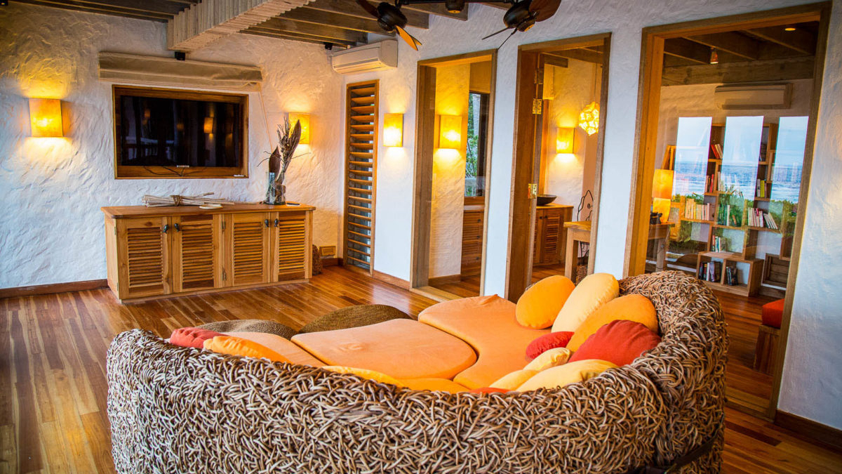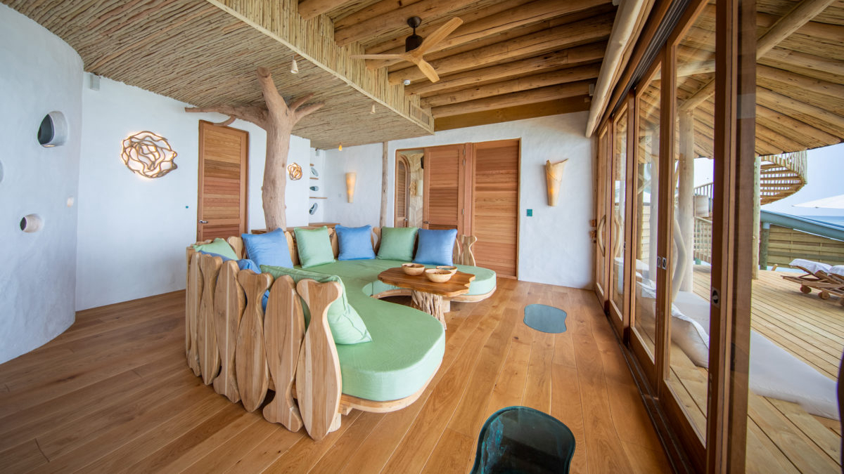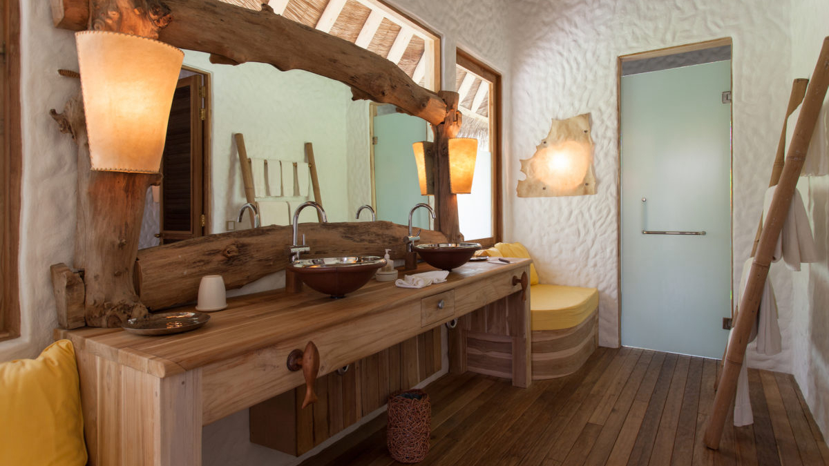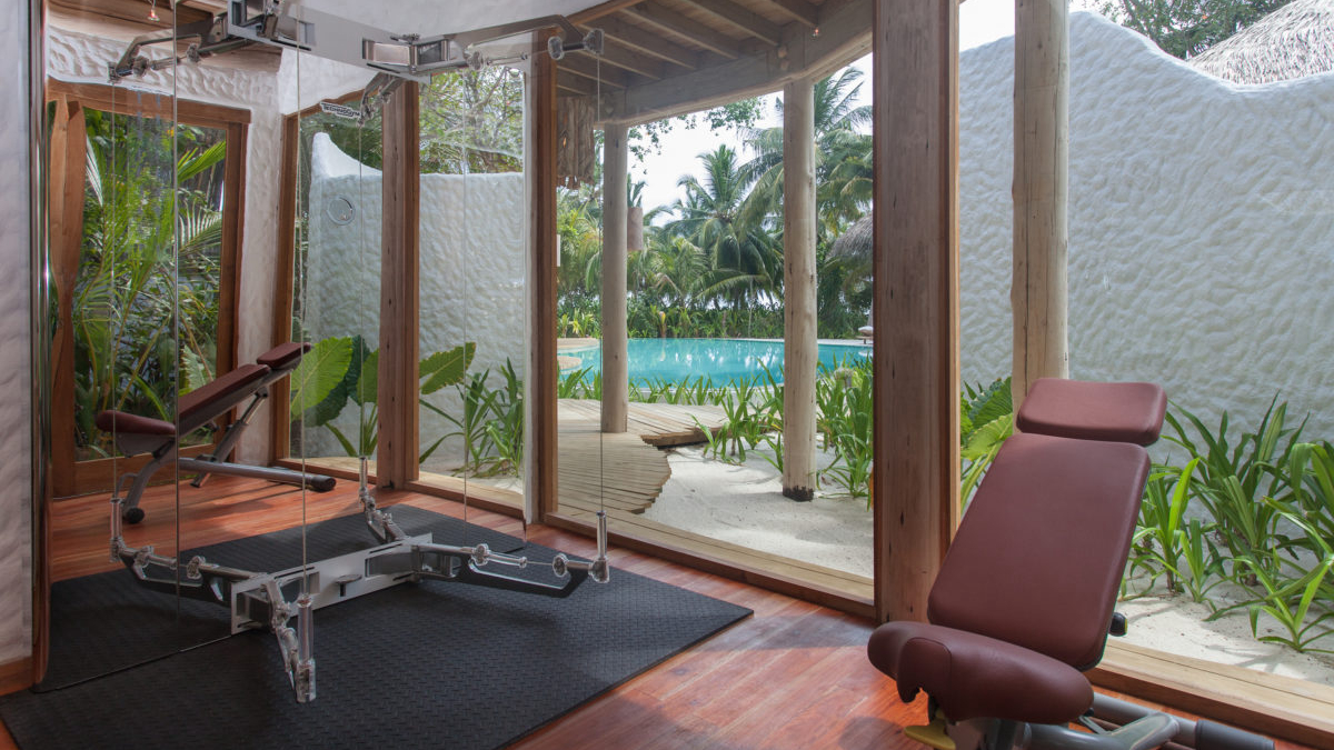 这座宽敞的别墅拥有两间一楼卧室,室外卫生间绿意盎然,配有一个大浴缸和露天淋浴。开放式客厅、餐厅、厨房和食品储藏室位于一楼的大卧室之间,由宽敞的木质地板连接。一楼还有一个带桑拿和蒸汽房的水疗套房。在楼上,穿过螺旋楼梯可以到达另外两间带独立卫生间和私人阳台的客房。还有一个私人健身房,有自己的浴室和淋浴,楼上还有一张可以眺望印度洋的日托床。