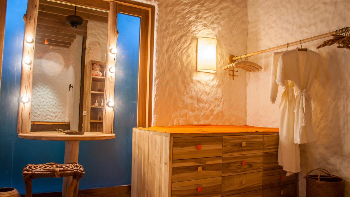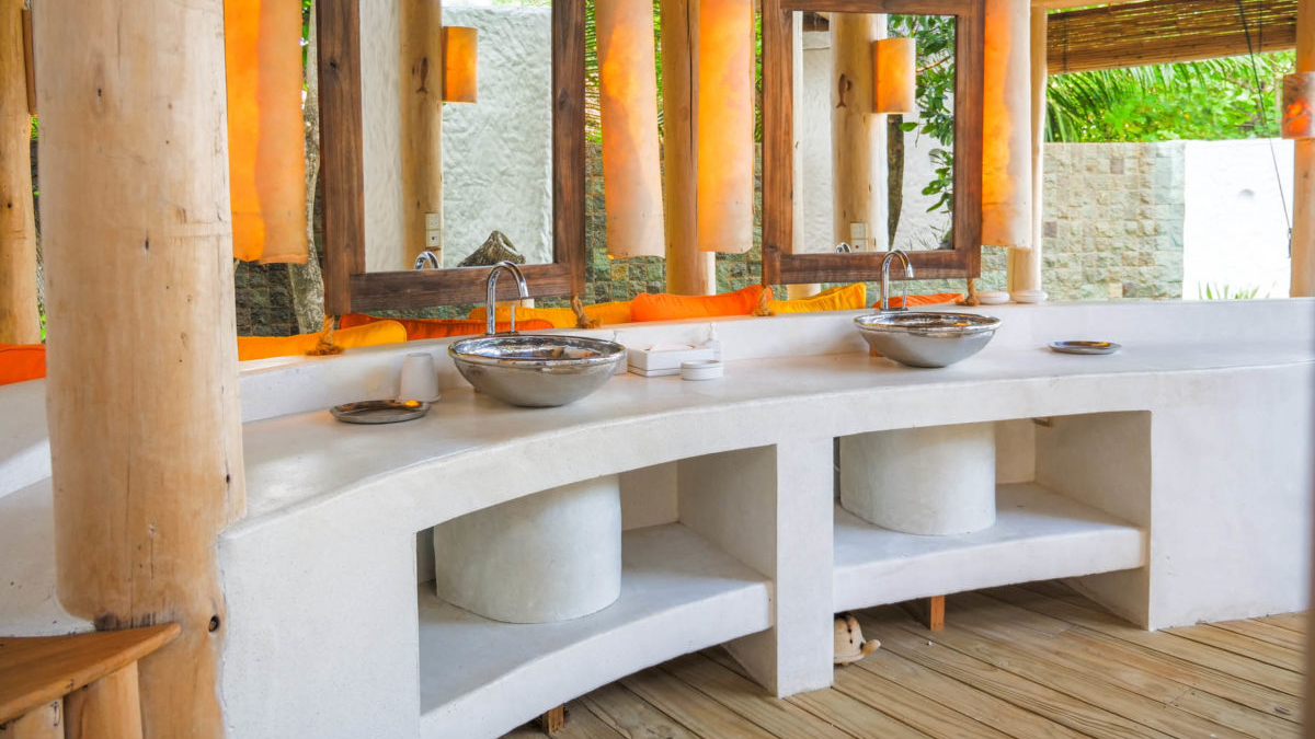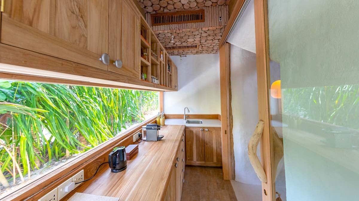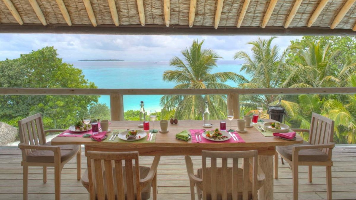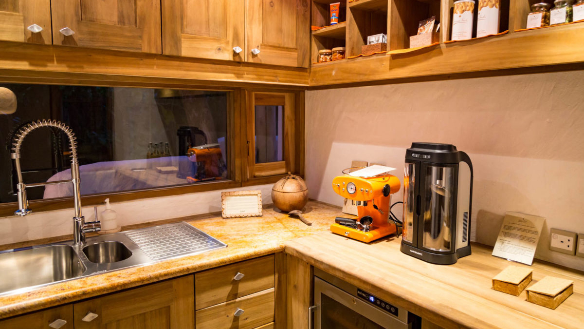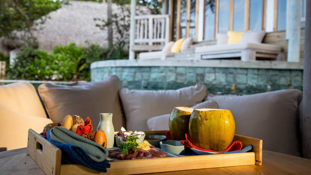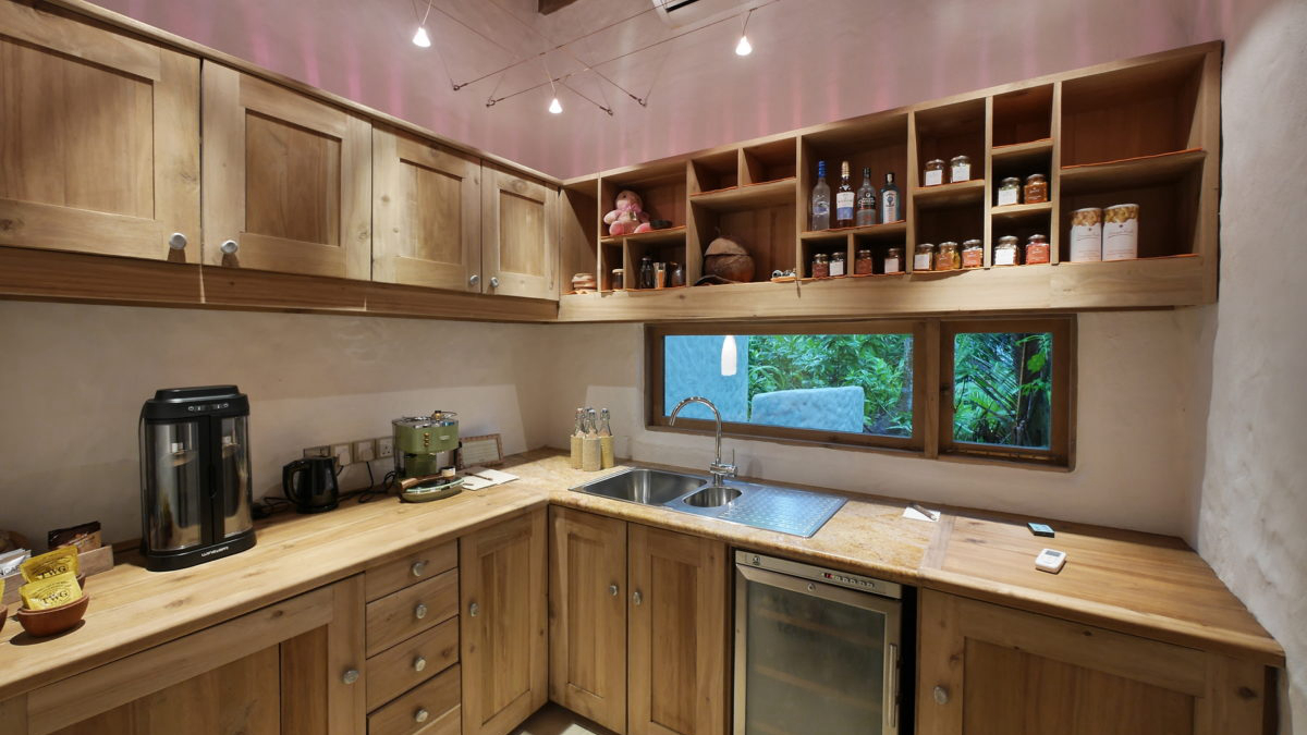 这座宽敞的别墅拥有两间一楼卧室,室外卫生间绿意盎然,配有一个大浴缸和露天淋浴。开放式客厅、餐厅、厨房和食品储藏室位于一楼的大卧室之间,由宽敞的木质地板连接。一楼还有一个带桑拿和蒸汽房的水疗套房。在楼上,穿过螺旋楼梯可以到达另外两间带独立卫生间和私人阳台的客房。还有一个私人健身房,有自己的浴室和淋浴,楼上还有一张可以眺望印度洋的日托床。
