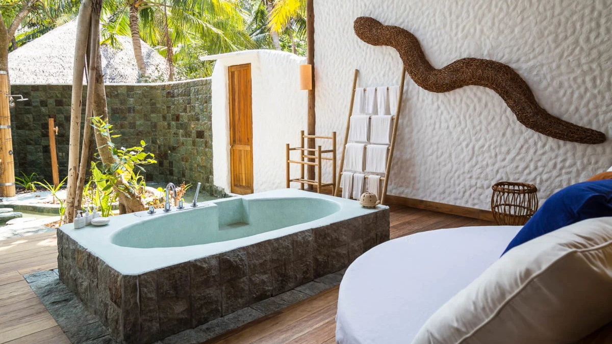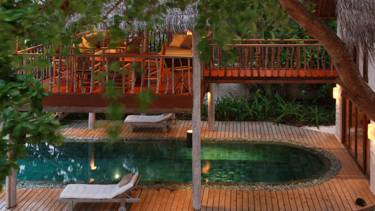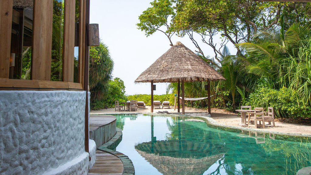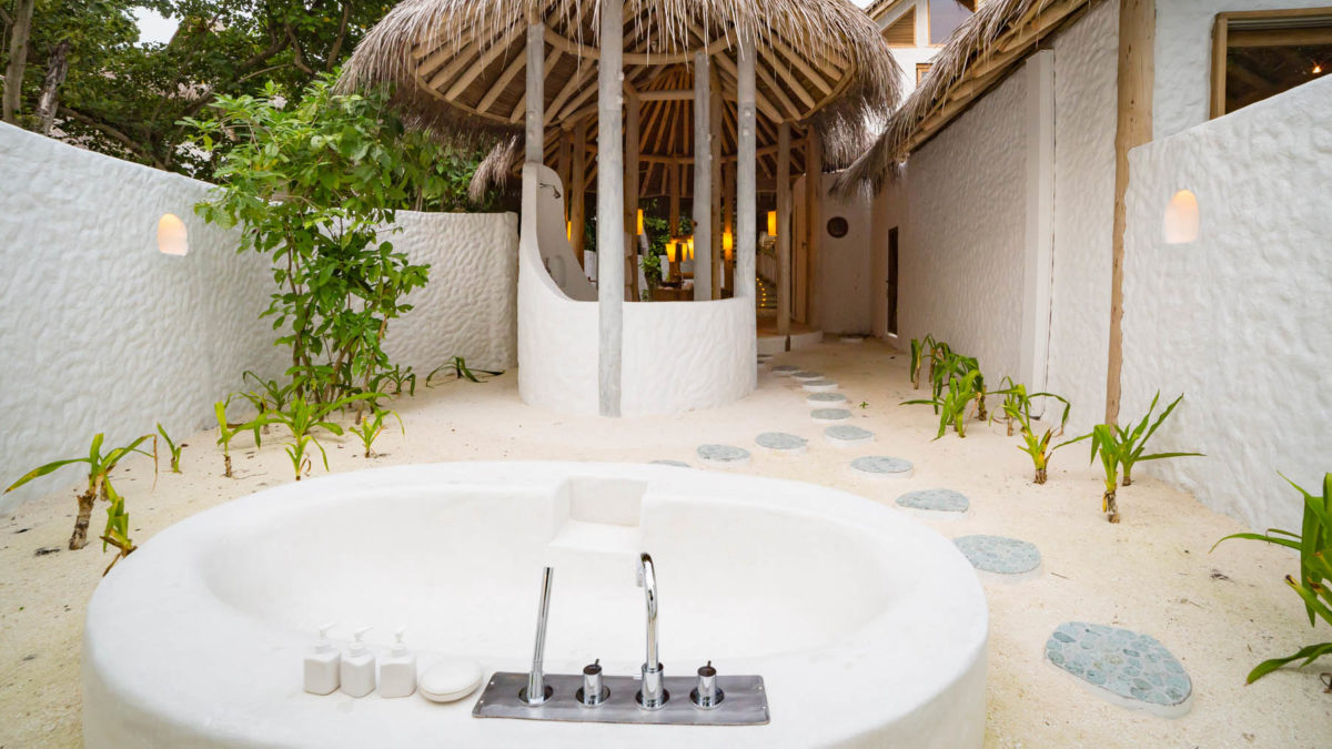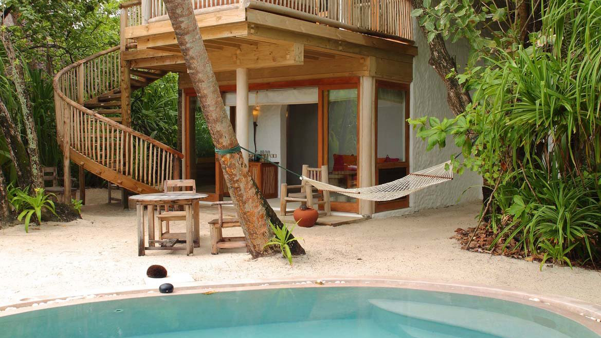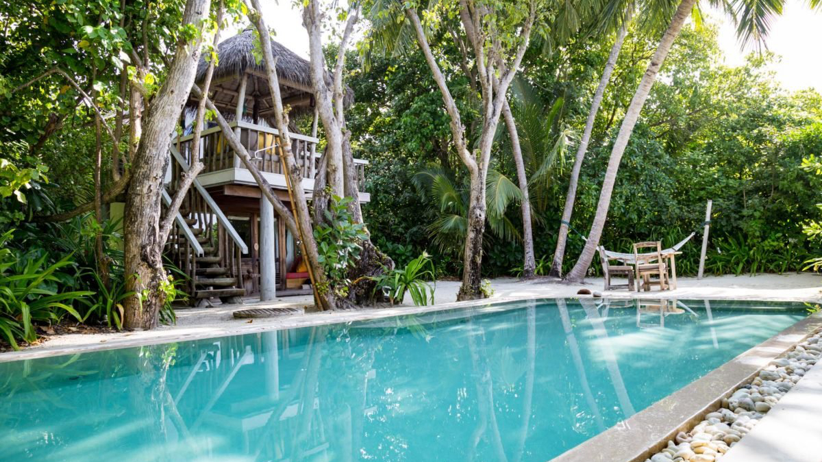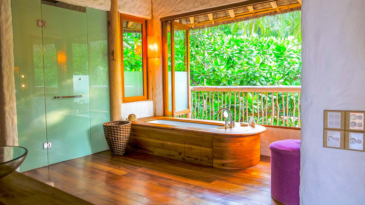 在你的私人游泳池里,在绿树掩蔽下,在清爽的水中泡一泡。如果你想探索它的水下奇观,清澈的马尔代夫海洋只需几步之遥。在嬉戏质朴别致的房间和露台中放松,向被抛弃的精神屈服。