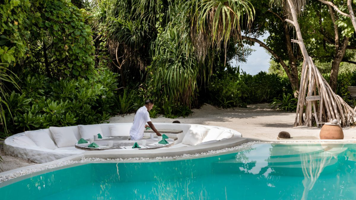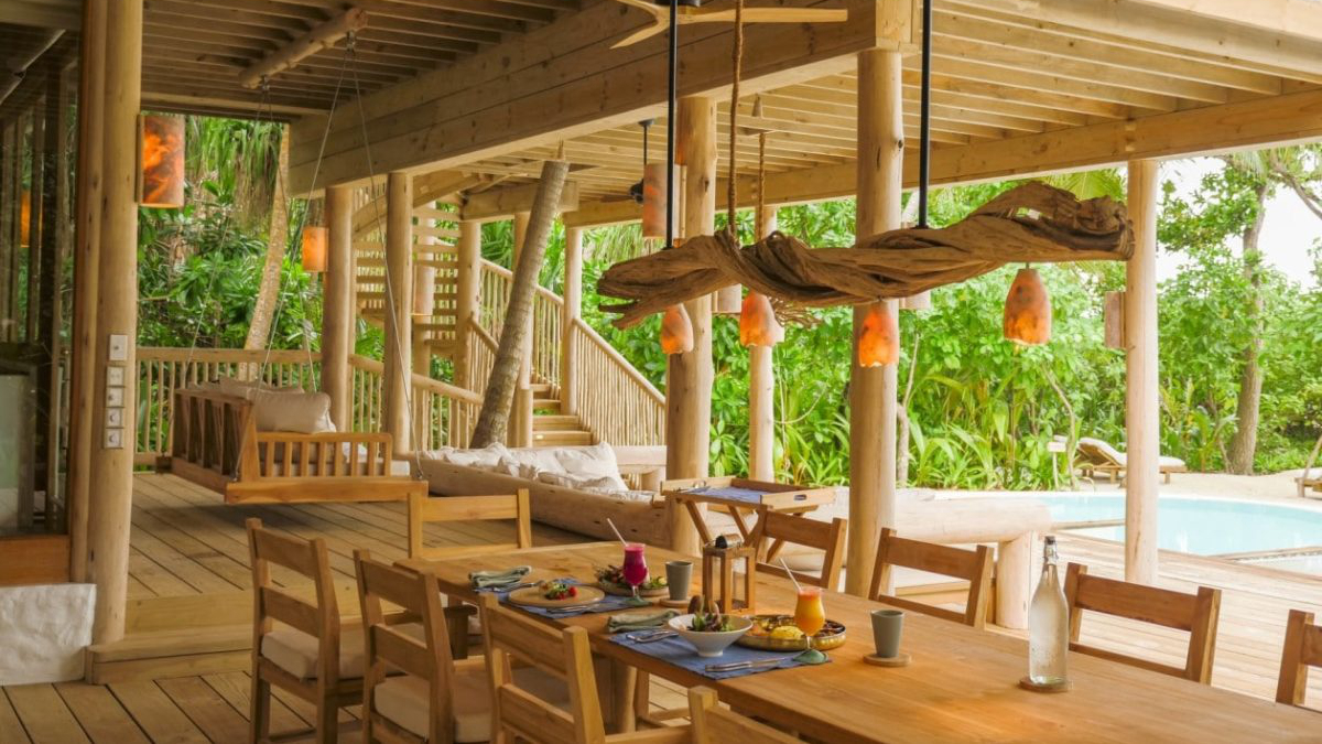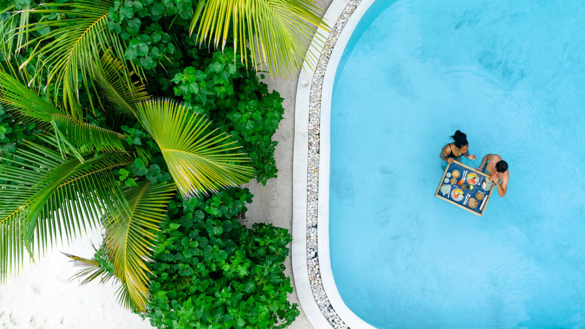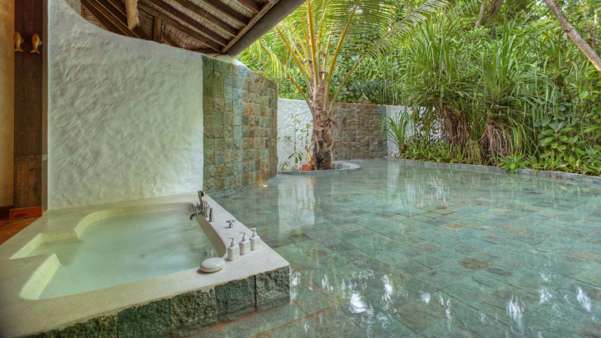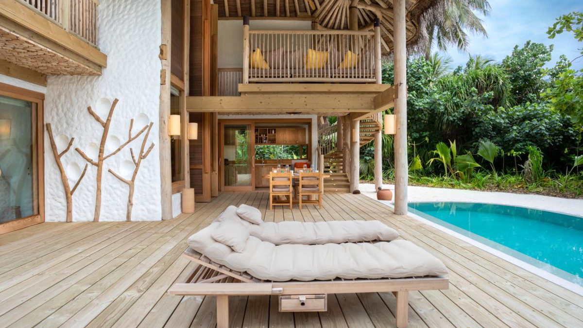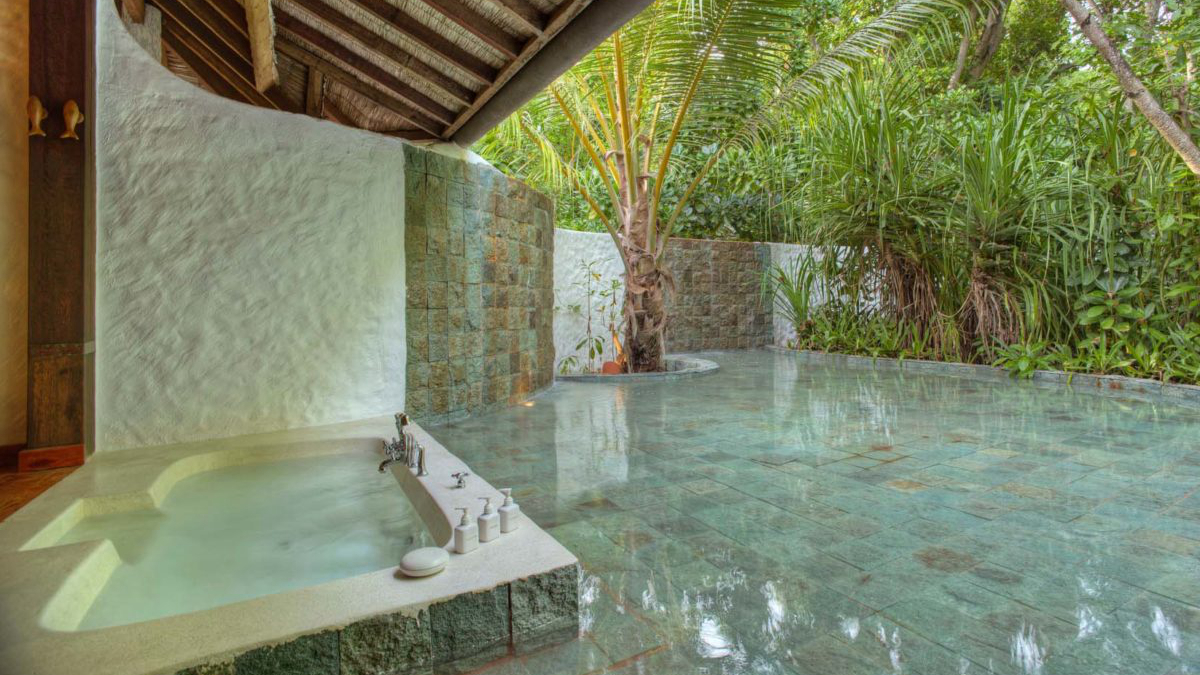 在你的私人游泳池里,在绿树掩蔽下,在清爽的水中泡一泡。如果你想探索它的水下奇观,清澈的马尔代夫海洋只需几步之遥。在嬉戏质朴别致的房间和露台中放松,向被抛弃的精神屈服。