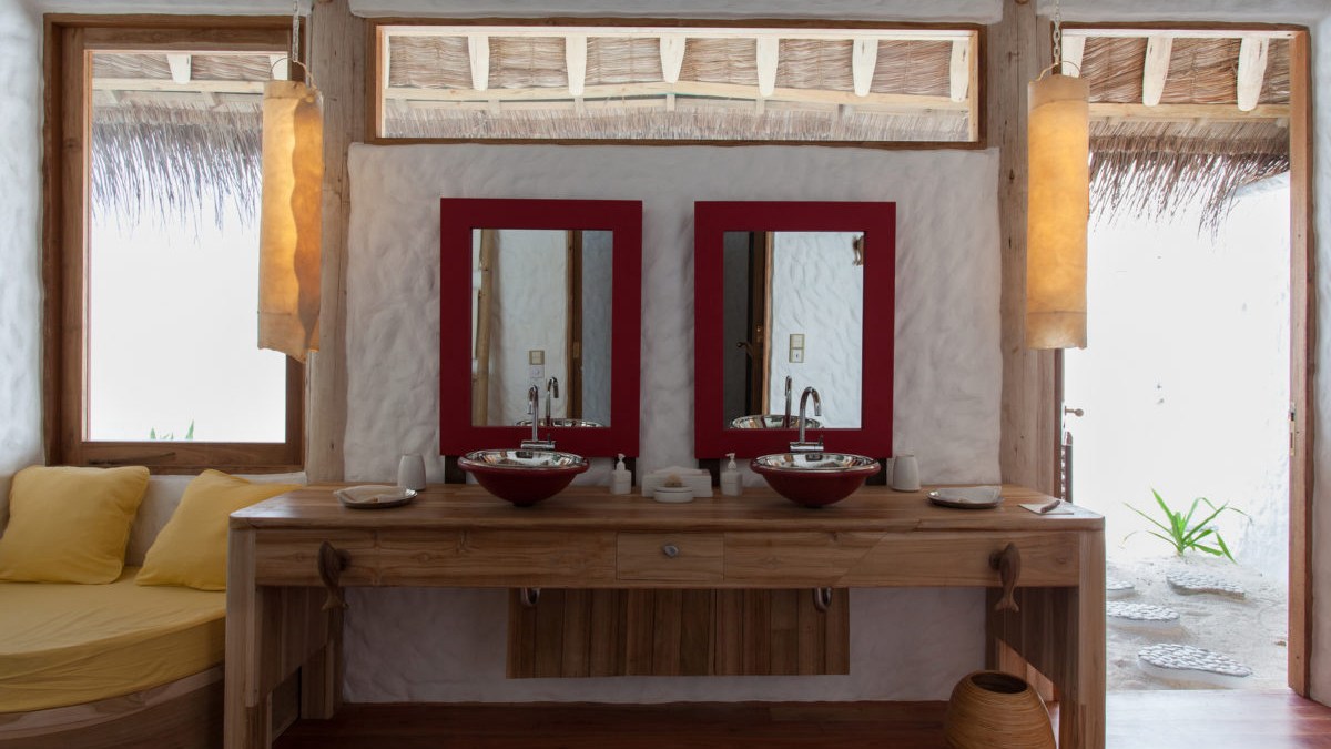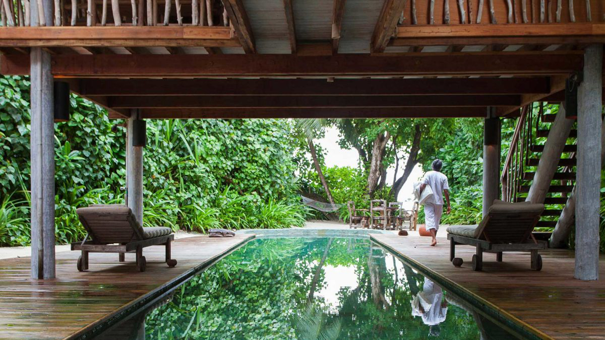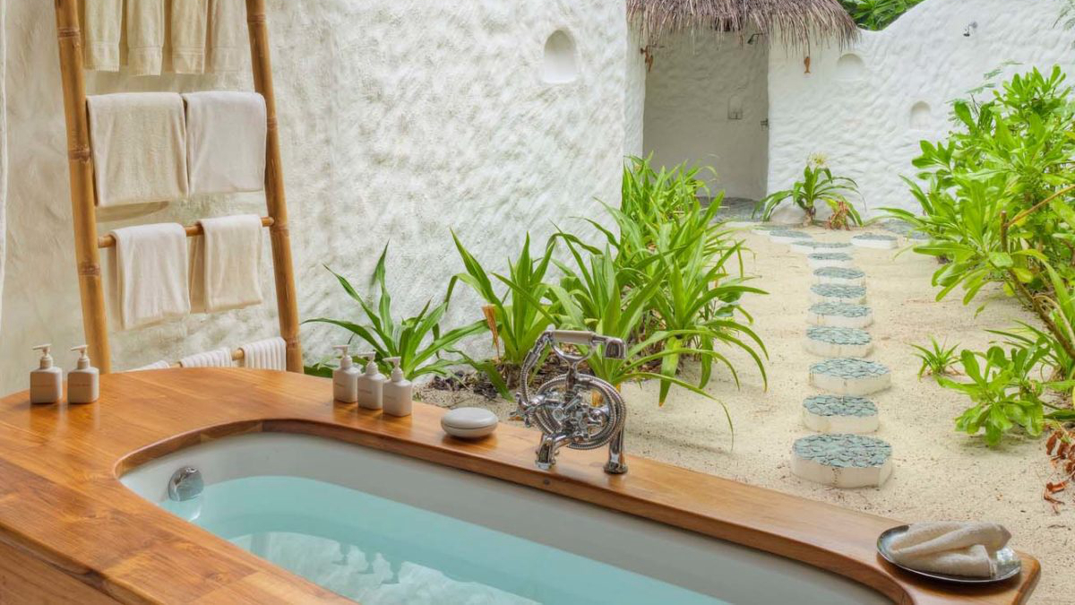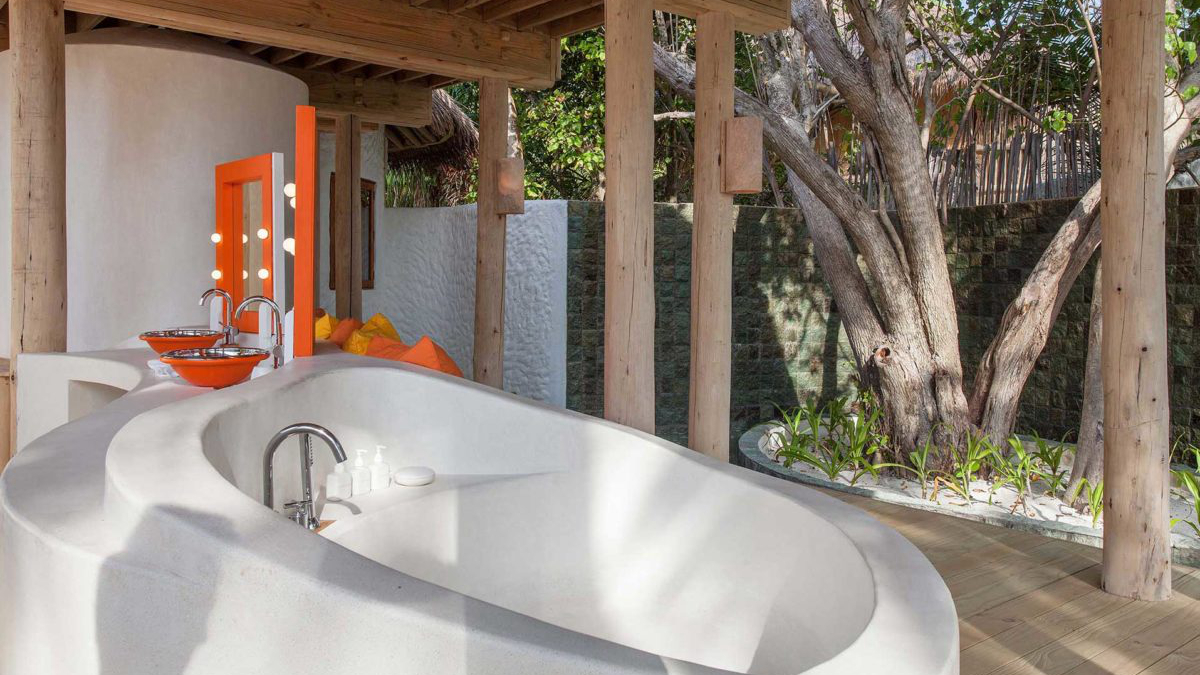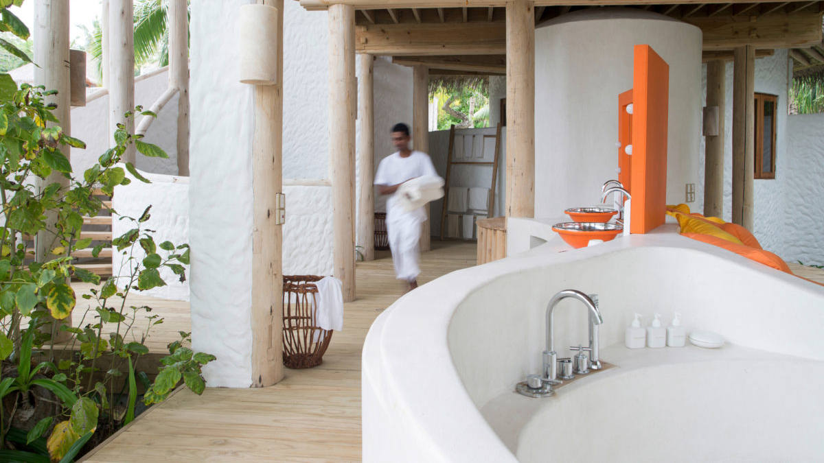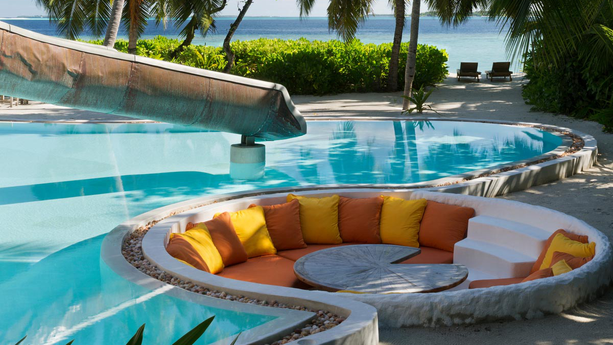 在你的私人游泳池里,在绿树掩蔽下,在清爽的水中泡一泡。如果你想探索它的水下奇观,清澈的马尔代夫海洋只需几步之遥。在嬉戏质朴别致的房间和露台中放松,向被抛弃的精神屈服。