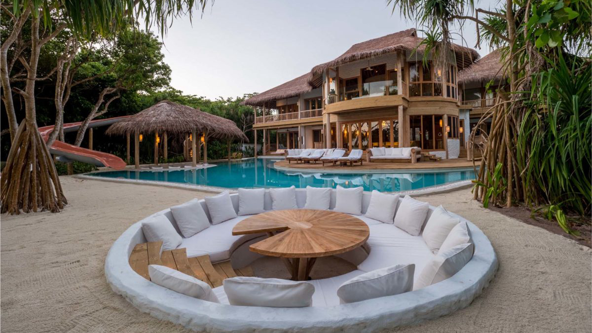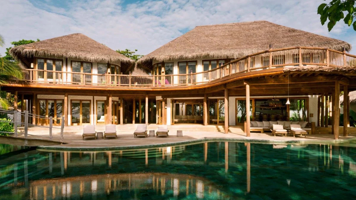 俯瞰大海,这间三居室是一个豪华的游乐场,由传统茅草屋顶下的可持续森林制成。探索充满光线的内部和开放式生活空间,将外部带入室内。从浪漫的露台、风景如画的甲板和田园诗般的走道上欣赏清晨的日出,在巨大的私人游泳池里泡一泡凉快。