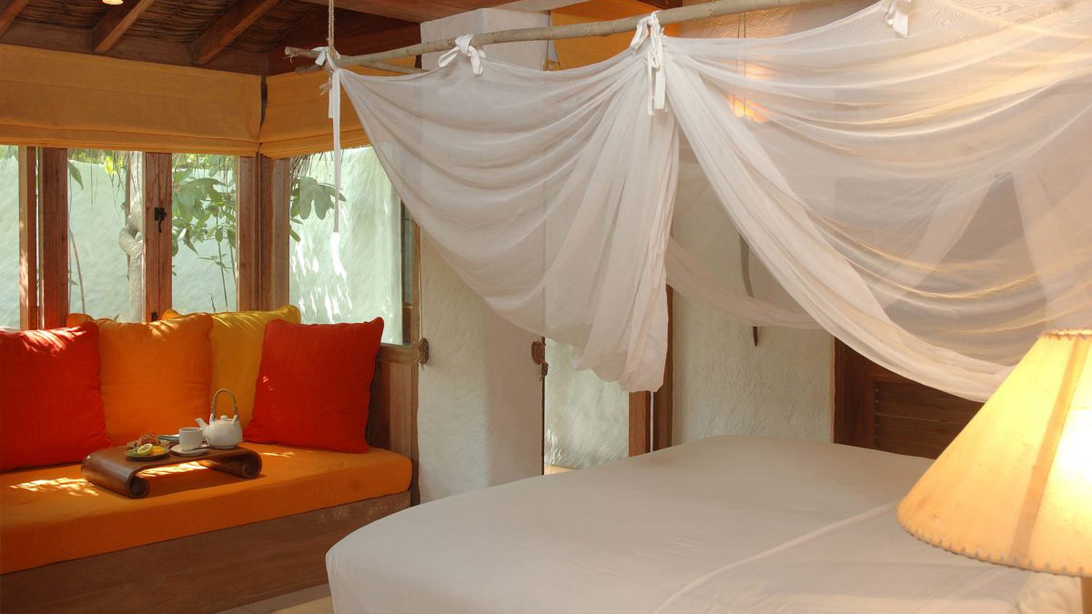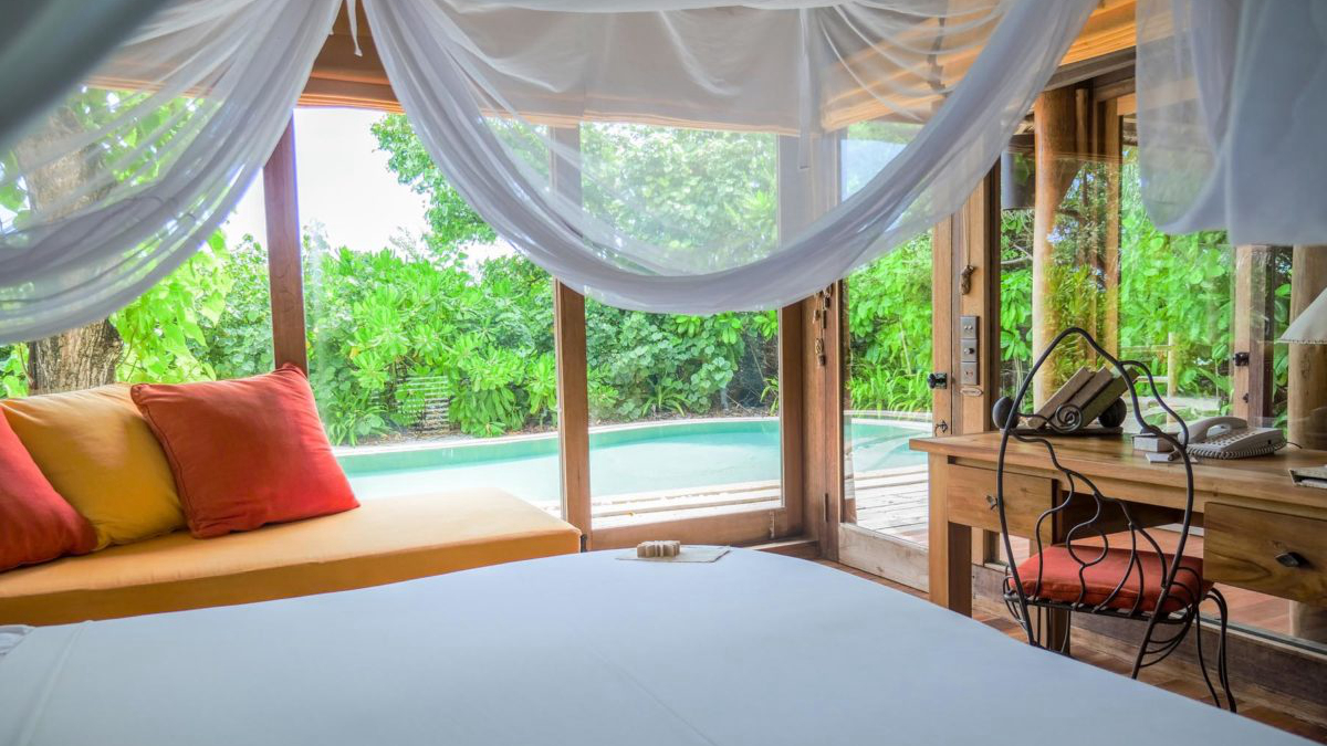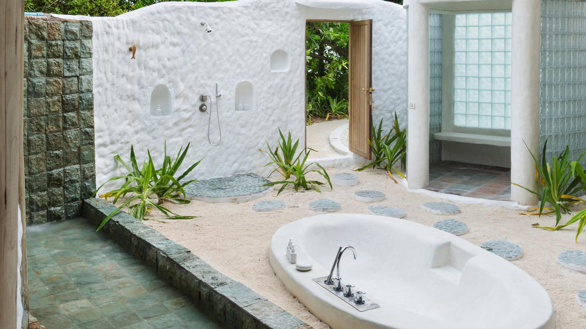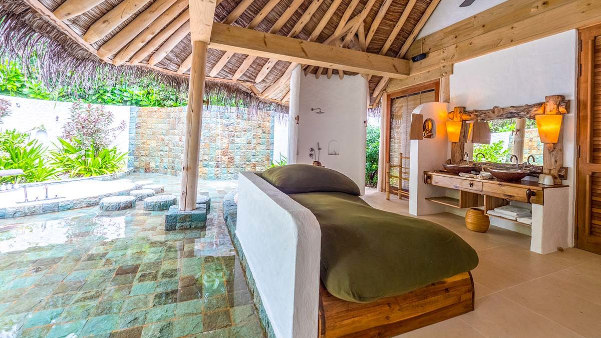 探索这个岛,或者如果你想在你的隐居处放松一下,你就有了奢侈的空间。除了拥有柔软的特大号天篷床的卧室外,您还拥有一间荒岛式的别致客厅、室外起居区和日间床、一个大型露天花园浴室和私人游泳池,以及岛周围的白沙和水晶水。