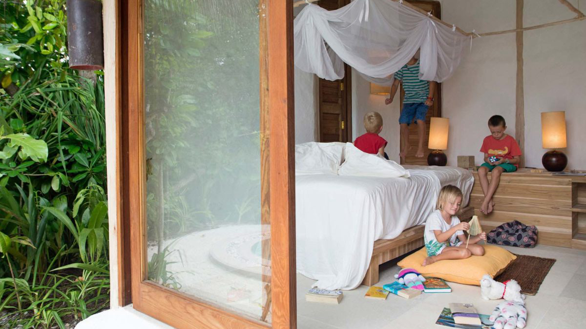 一个好玩的豪华套房,有楼上和楼下的卧室,可以选择高低的客厅,一个私人游泳池和两个郁郁葱葱的露天花园浴室。也有直接的海滩通道,以及用于岛屿探险的个人自行车。
