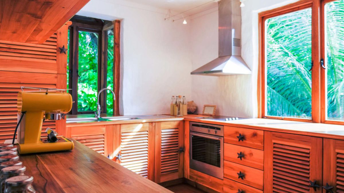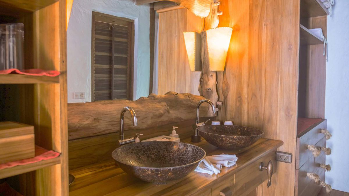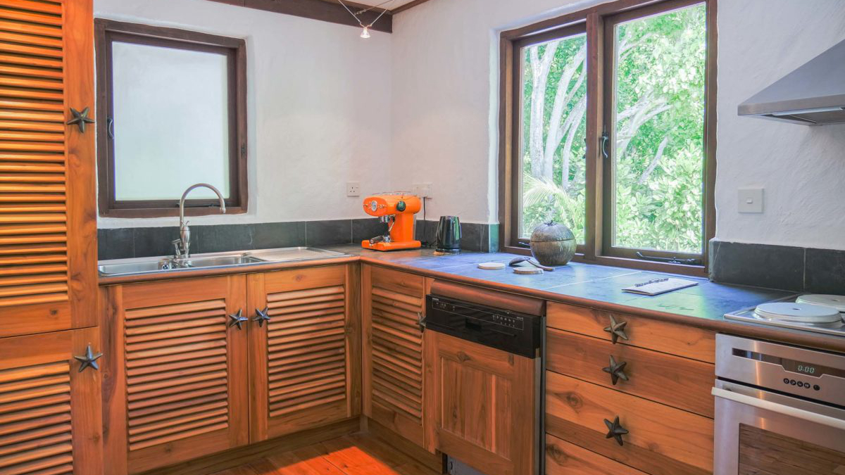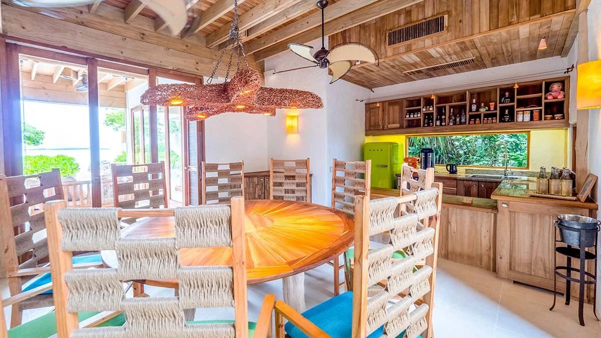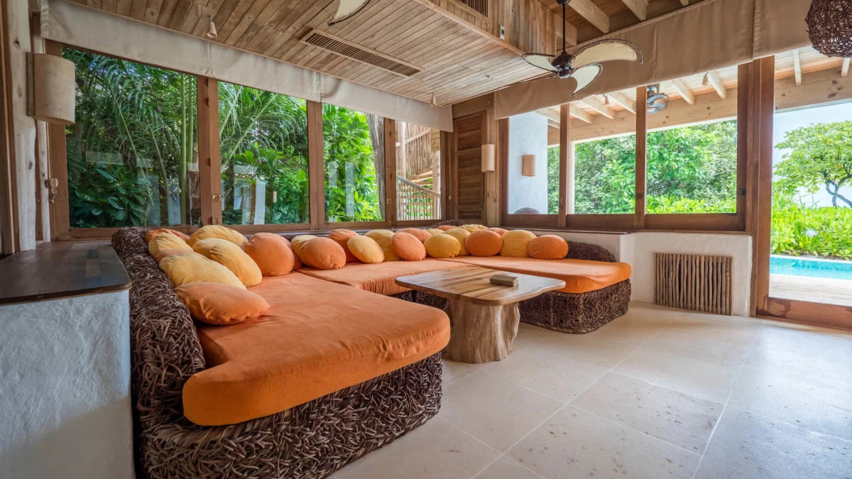 在这座两居室的别墅里拥抱岛屿生活,灵感来自大自然:保留着锯齿和弯曲的原木、编织的绳索、回收的木板和棕榈茅草。在室外花园浴室沐浴在星光或阳光下。懒洋洋地在露台上休息几天,在私人游泳池里嬉戏,或者在离别墅几步远的海滩上休息。