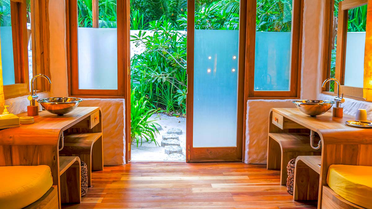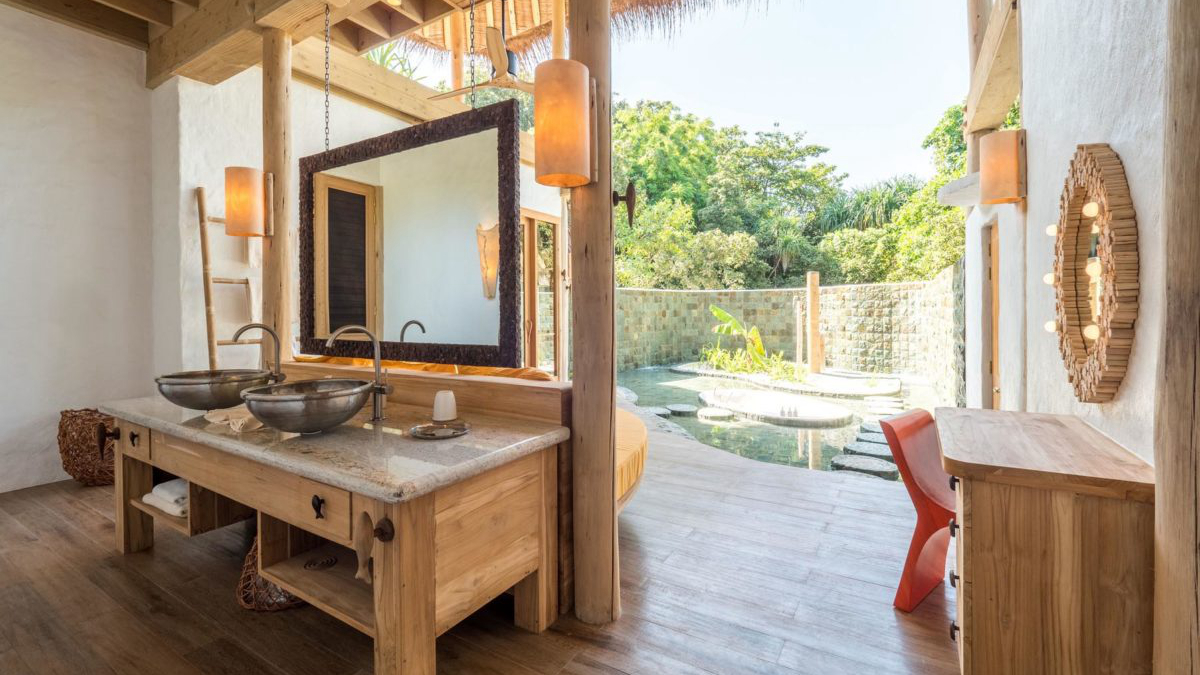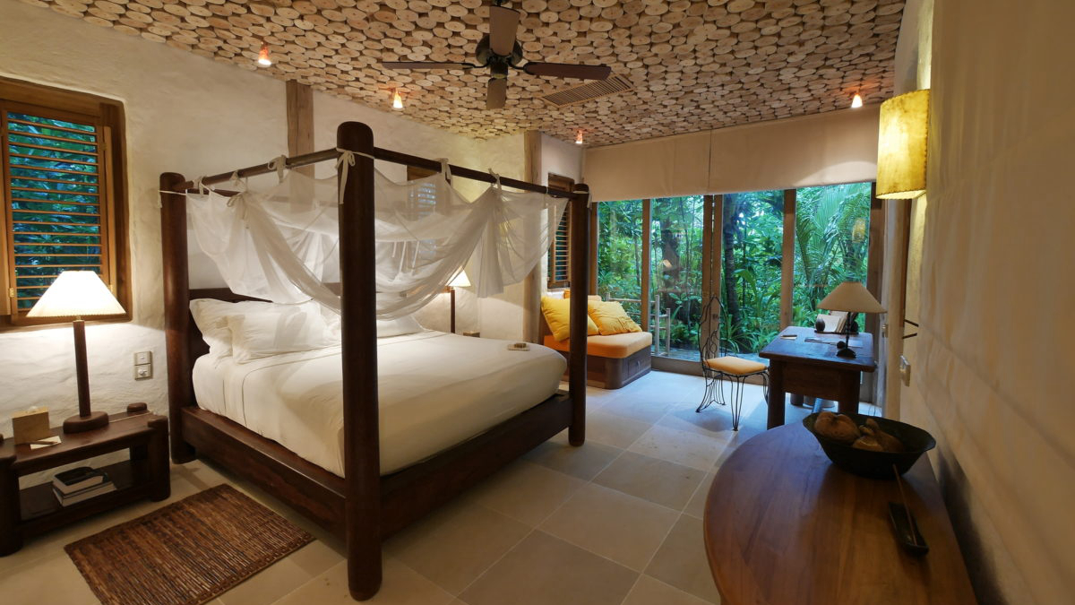 宽敞的两居室别墅套房,传统的茅草屋顶与周围的雨林环境完美融合。在清爽的游泳池里泡一泡,探索家门口的海滩,在私人健身房放松,或者在蒸汽室放松。
