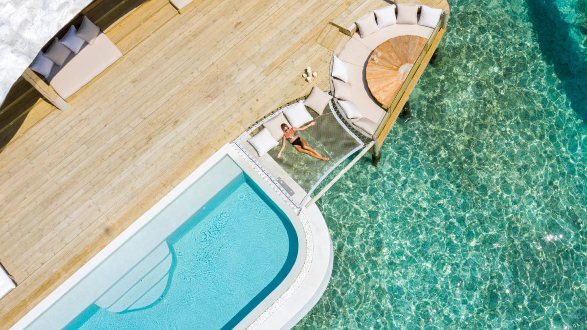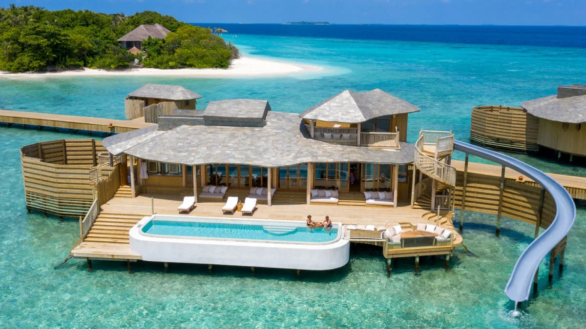 这座有两间卧室的带滑梯的水上别墅,无论是在断断续续的地平线上,还是在清澈湛蓝的海洋深处,还是在星光灿烂的夜空中,都能看到令人难以置信的景色。该豪华度假酒店旨在确保最大程度的隐私,其特点是拥有一个宽敞的外甲板,有自己的私人游泳池和双体船网,一个直接进入大海的水滑梯,舒适的躺椅和下沉式座椅。