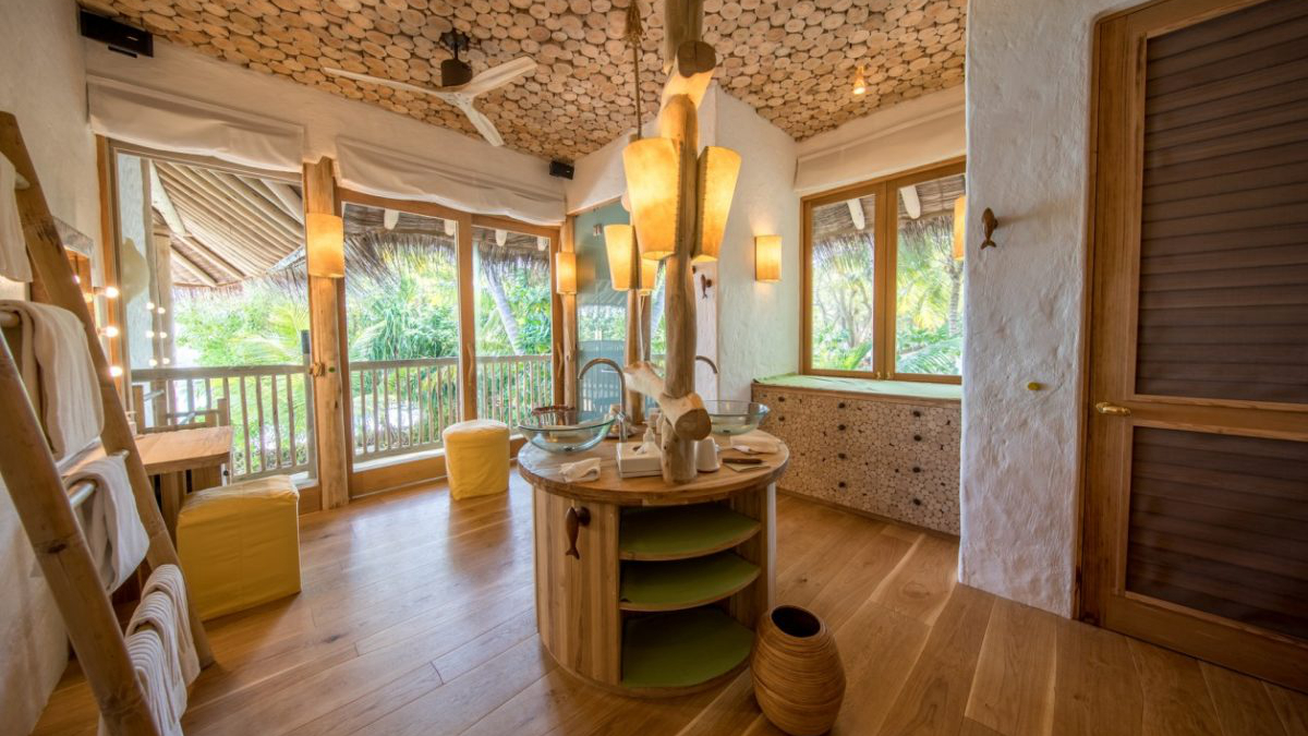 在热带环境中放松,距离白色沙滩只有几步之遥。37号别墅的亮点是月光桌,它高出屋顶,是岛上的最高点。这里可以将您的用餐体验带到全新的全景高度,马尔代夫日出日落的美景如画。