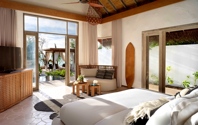 双卧室日落海滩别墅质朴别致,优雅完美。提供了宽裕的空间,是家庭度假的理想之选。别墅建在宁静的印度洋上,配有两个带独立淋浴的私人浴室, 双水槽,雀巢咖啡机,酒柜,Bose音响系统,加州特大号床,大型开放式独立的生活空间和餐桌。户外享有户外浴室浴缸和淋浴,一个华丽的36平方米的游泳池,放松和用餐的大厅,如果你有什么需要就叫你私人管家,每天24小时待命或骑着自行车巡游度假村。