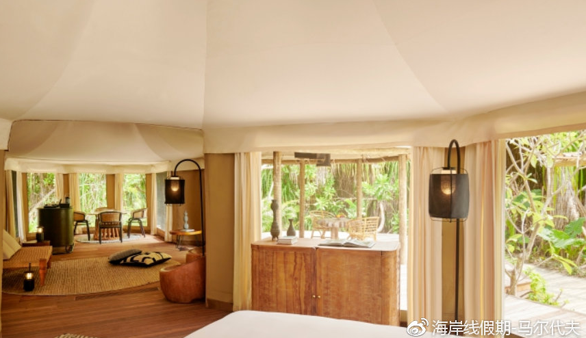帐篷式的丛林别墅享受着深幽的大自然和热带丛林两个世界的精华,有着最原始的白色沙滩,和门街上的海水。别墅提供宽敞的空间,拥有一间主卧,里面有独立的淋浴房、双水槽、Nespresso咖啡机、酒柜、Bose高保真音响和加州特大号床。有一间独立的儿童卧室,一处漂亮的户外区域,有95平方米的甲板和私人淋浴和沐浴设施。如果你有什么需要就叫你私人管家,每天24小时待命或骑着自行车巡游度假村。