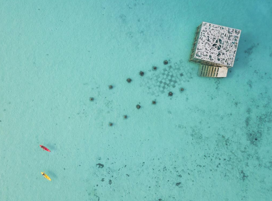 水下雕塑装置为游客提供独特的文化生态艺术吸引力,同时为人工礁的基础, 以加强水下生态系统,中心是珊瑚立方体,是世界上第一个半淹没艺术空间,为游客提供短暂与水下自然美景接触的渠道,展现人与自然的连通性, 一种与周围环境相和谐的混合有机形态, 陆地和海洋之间的无缝联系, 结合了两个不同的奇观, 一个由人类创造, 一个由自然设计。