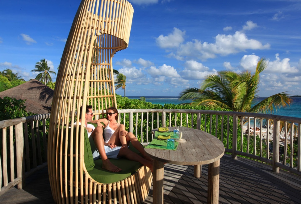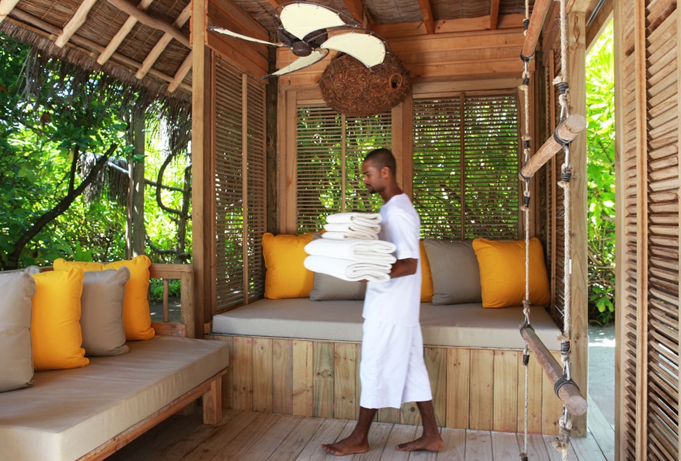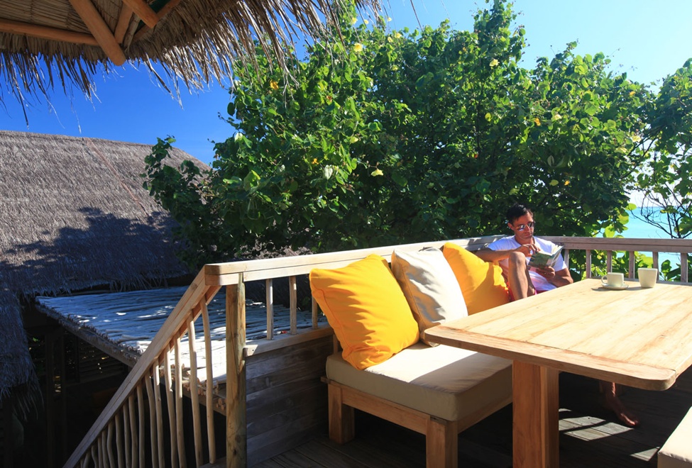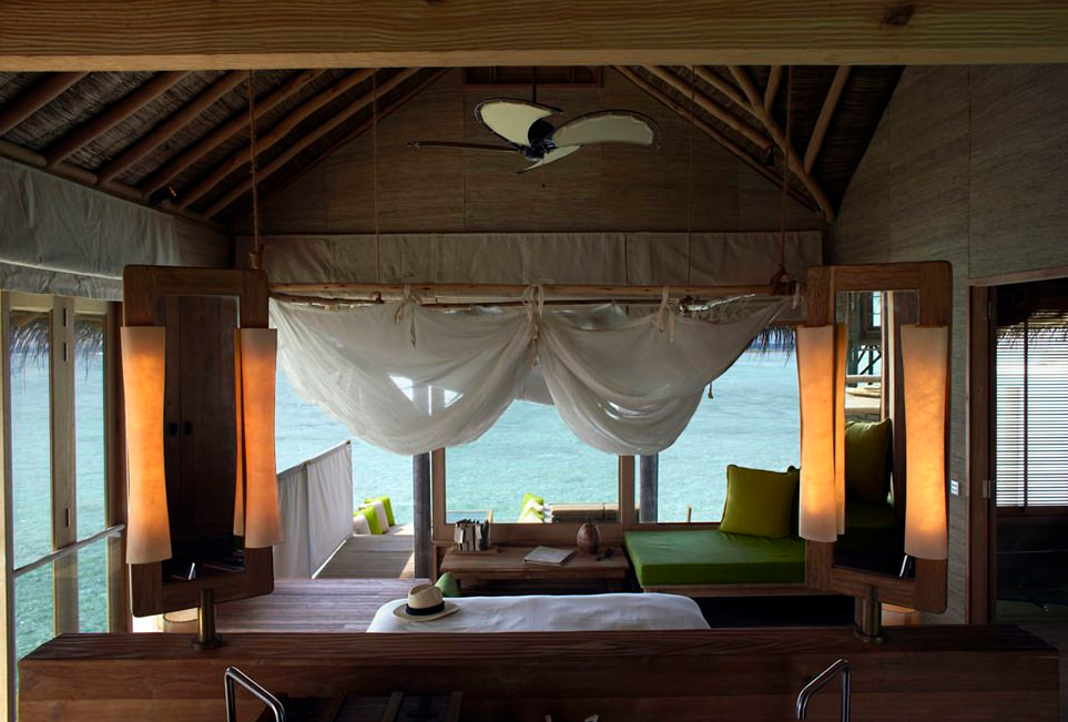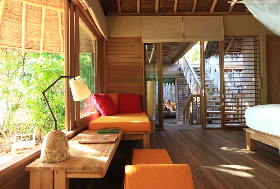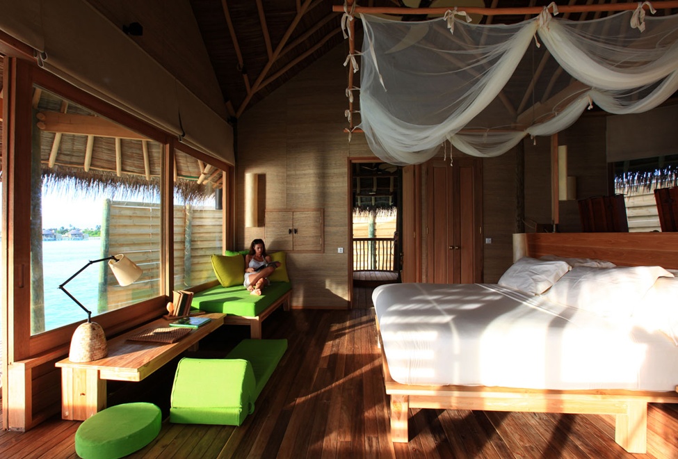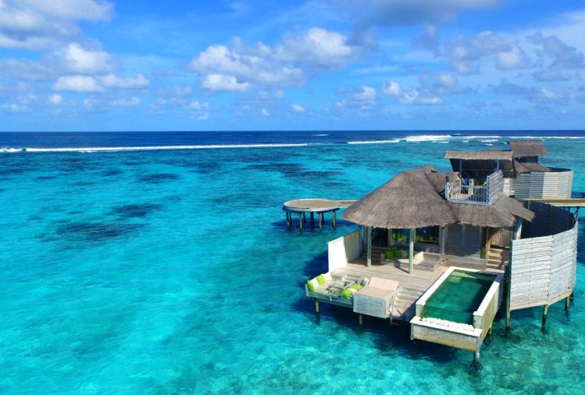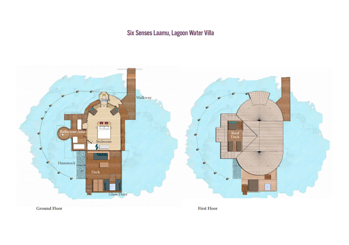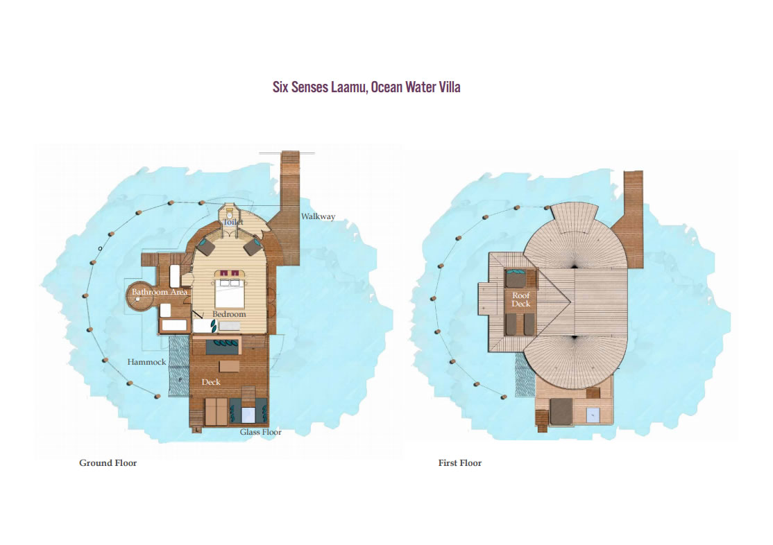 沿着泻湖上方的码头,到这些私人封闭的水上屋。可以直接进入大海,在那里你可以游泳和潜水,或者跳进你的私人泳池。懒散地躺在甲板上或在睡过的吊床上,沐浴在阳光下,享受大海的美丽色彩。日落时分,躺在太阳椅上,或者坐在外面甲板的玻璃底桌周围。这些别墅还配备了一个玻璃水浴缸,可以看到海景,还可以在室外淋雨。为了独特的全景视野,可以看到印度洋的蓝宝石海景,令人难忘的日出和令人惊叹的赤道落日,树顶甲板提供了一个舒适的座位区,可以看到大自然的奇观。