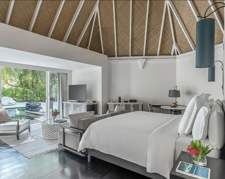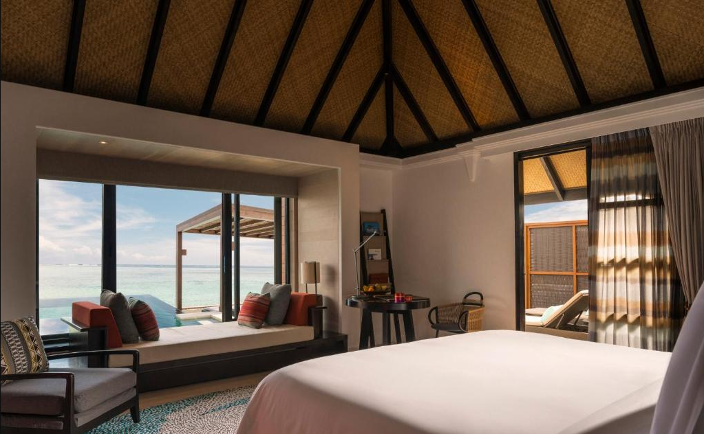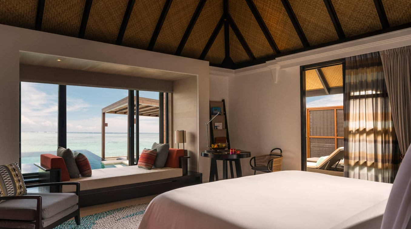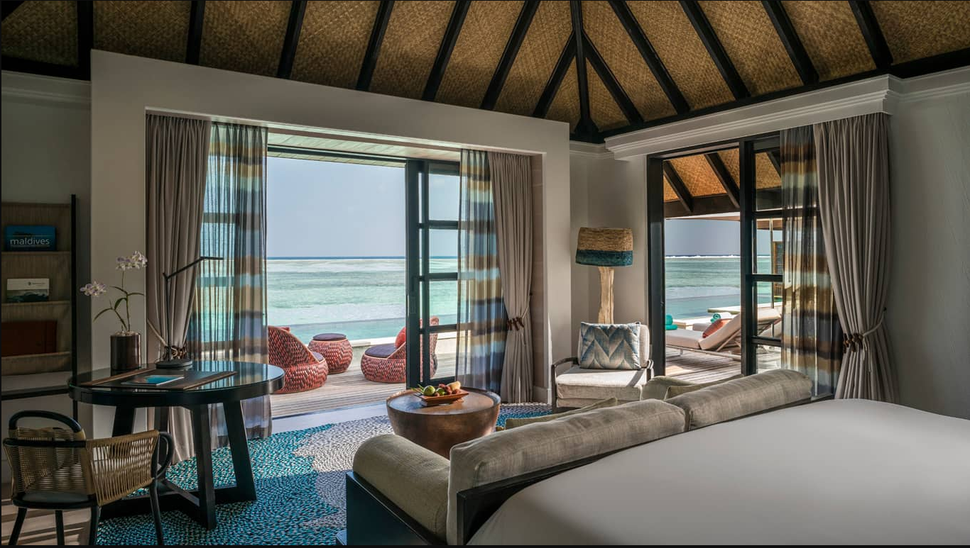 房型介绍:入住马尔代夫库达呼拉岛四季度假酒店,选择奢华的双卧室水景夕阳套房,饱览海上日出、长天一色的壮美景观。