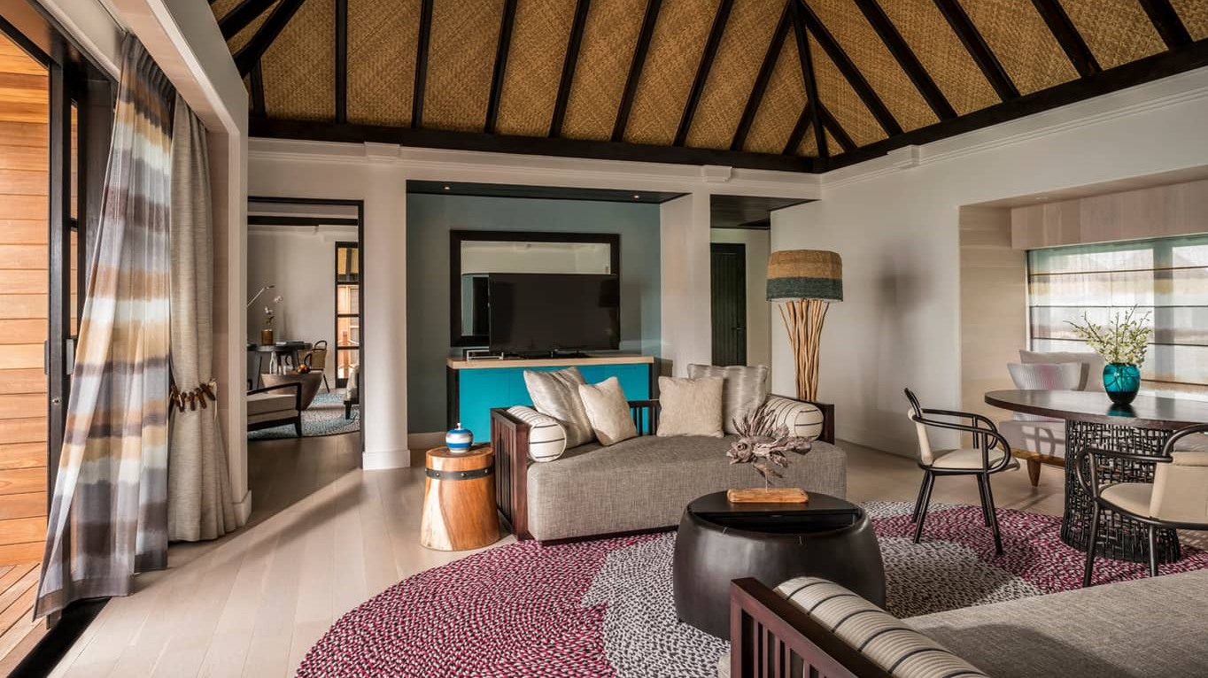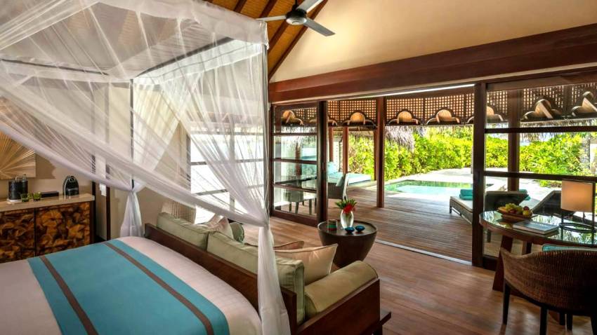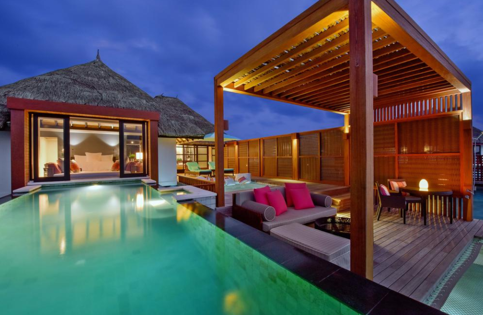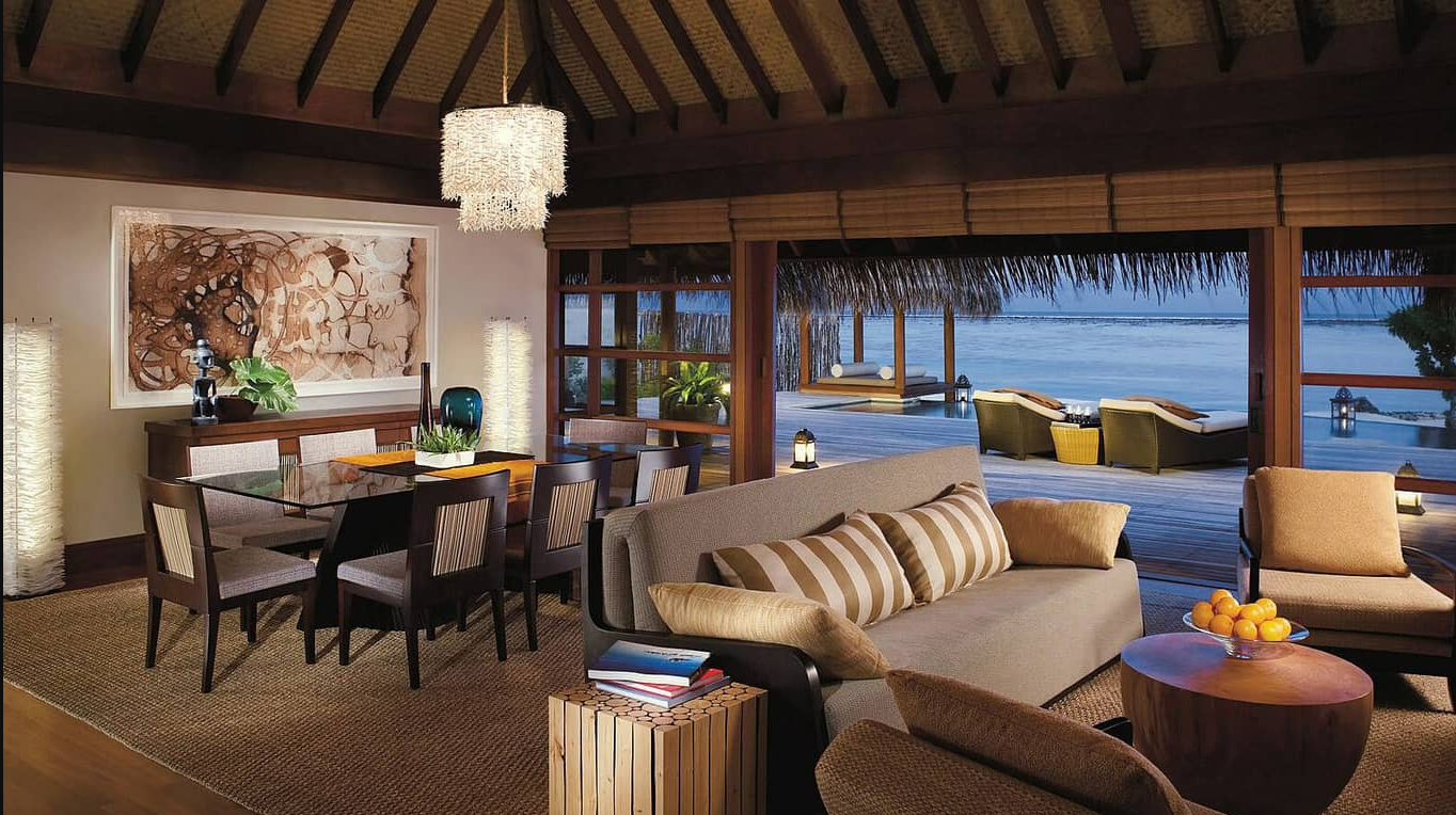 房型介绍:入住马尔代夫库达呼拉岛四季度假酒店,选择奢华的双卧室水景夕阳套房,饱览海上日出、长天一色的壮美景观。