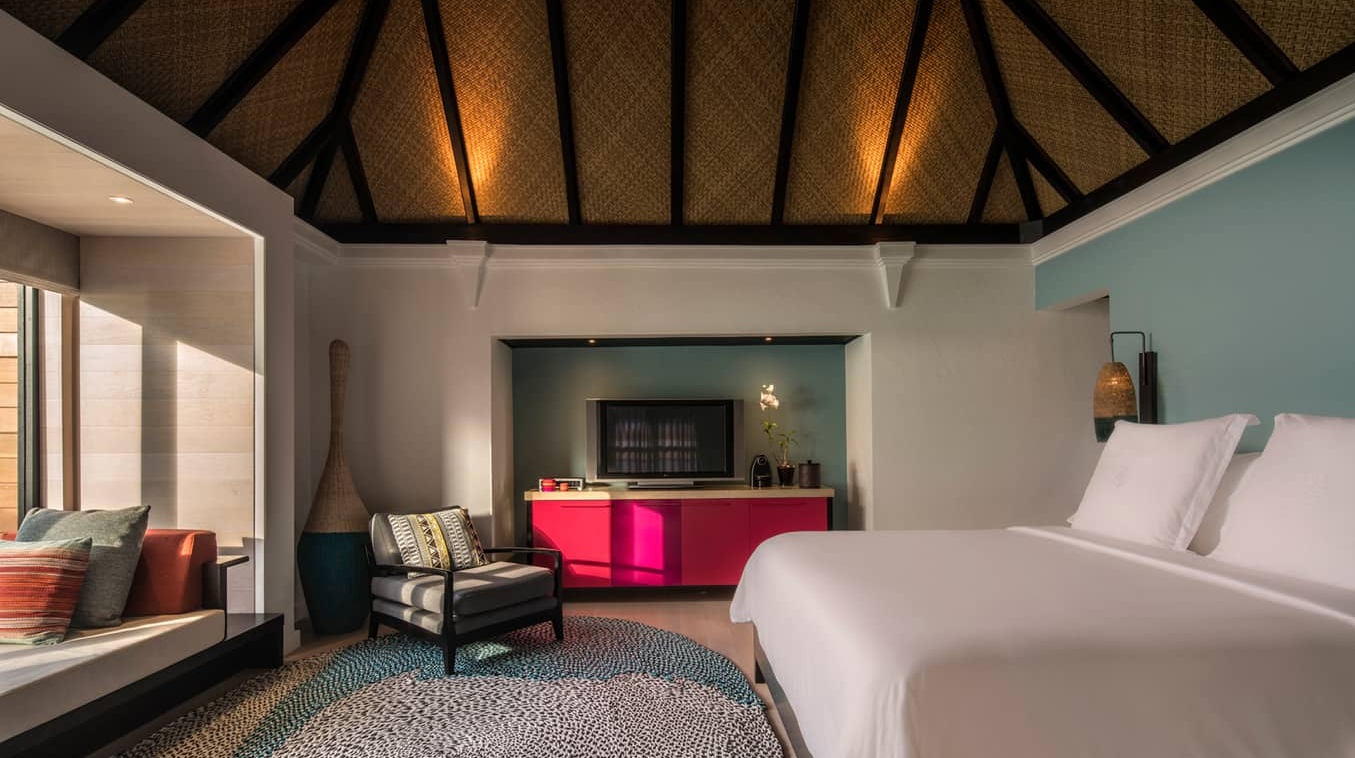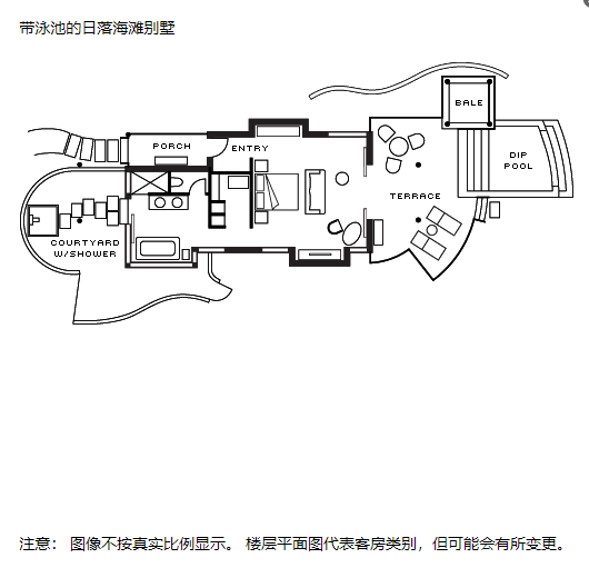 房型介绍:用传统粉刷墙面和马尔代夫茅草屋顶,室内使用藤制、柳编和深色橡木家具精心装点,配合清新自然的织物,营造出别具风格的奢华空间。