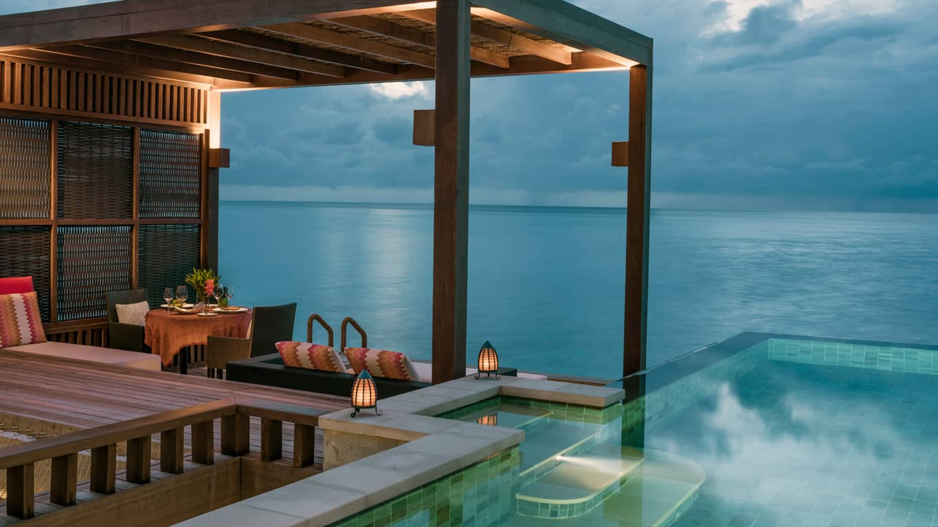 入住马尔代夫库达呼拉岛四季度假酒店,置身于奢华的三卧室水景朝阳套房,开启非凡卓越的水上生活,在海洋的怀抱中纵享极致居停体验。
