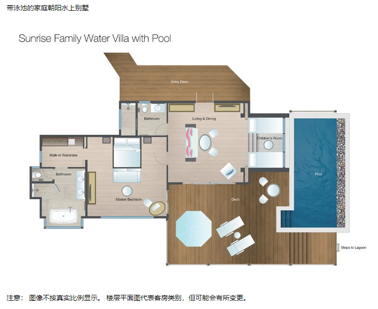 | 水带泳池的家庭朝阳水上别墅--Sunrise one bedroom water suite | 2 | 91平 | X | 6大 / 6大3小 |