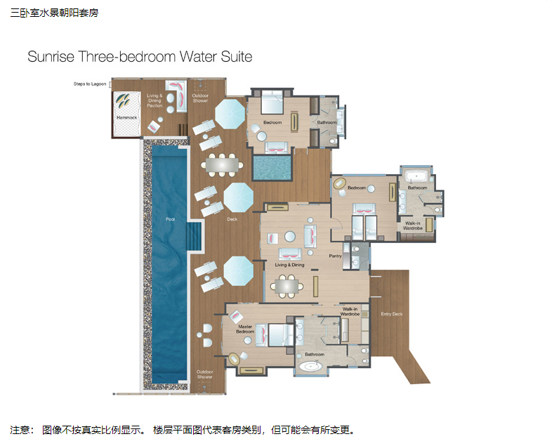 | 水日出3卧水上套房--Sunrise three bedroom water suite | 1 | 514平 | √ | 6大 / 6大3小 |