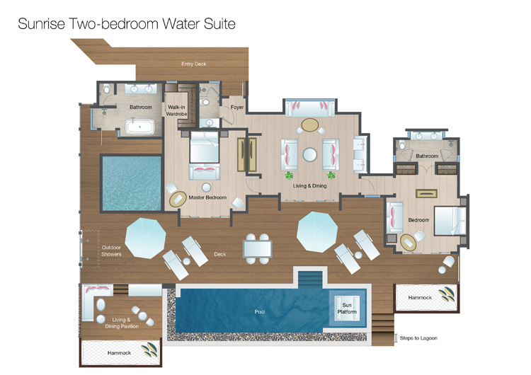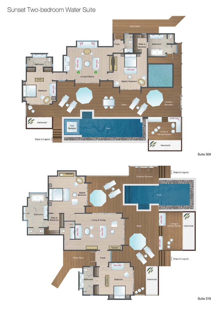 | 水日出双卧室水上套房--Sunrise two bedroom water suite | 1 | 173平 | √ | 4大 / 4大2小 |