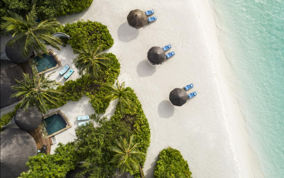 小四季|四季库达呼拉 (Fourseasons Kuda)座落在卡夫环礁(Kaafu Atoll),注意:卡夫环礁以前是分为北马累环礁与南马累环礁的。从马累国际机场搭乘快船25分钟即可到达。属于中型岛屿,环岛一周步行约14分钟,周长约1350米,面积8.84万平方米(520米*170米)。于2008开业。