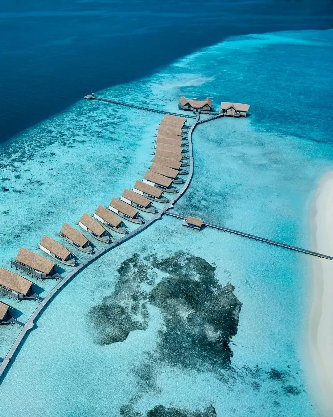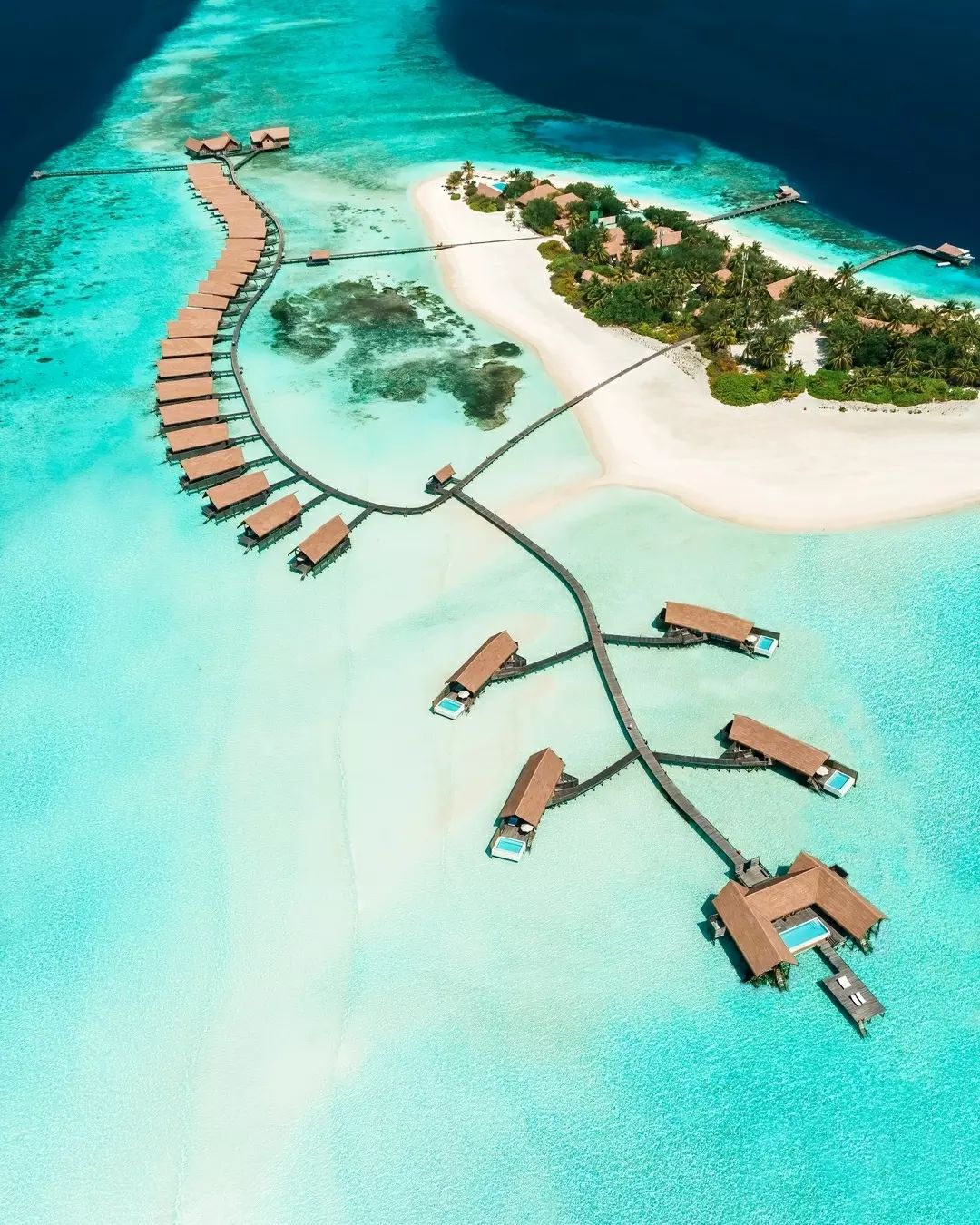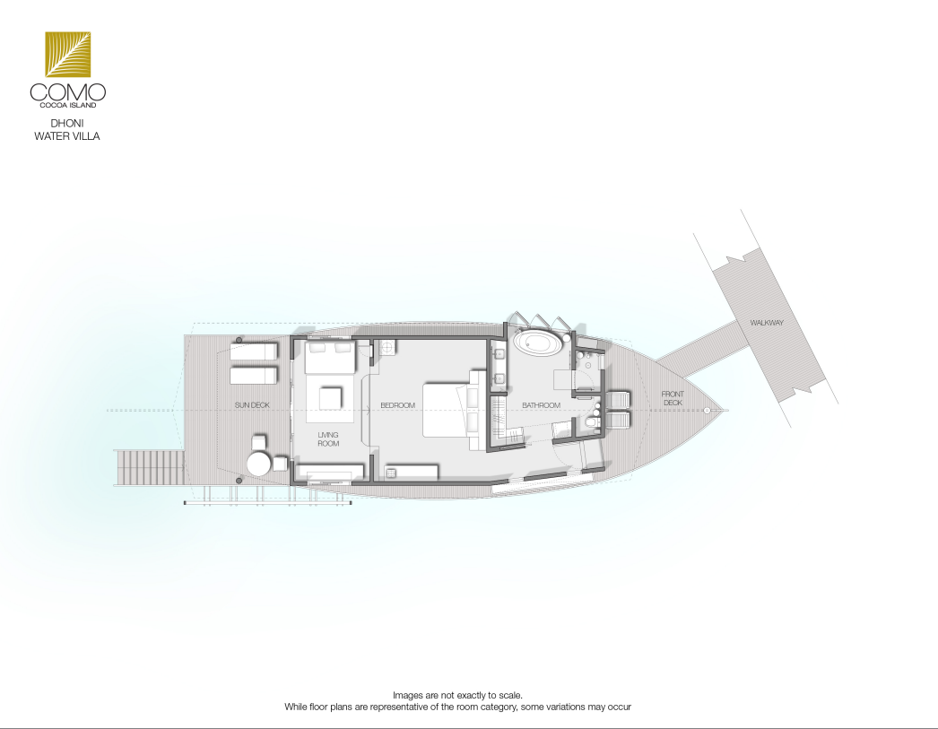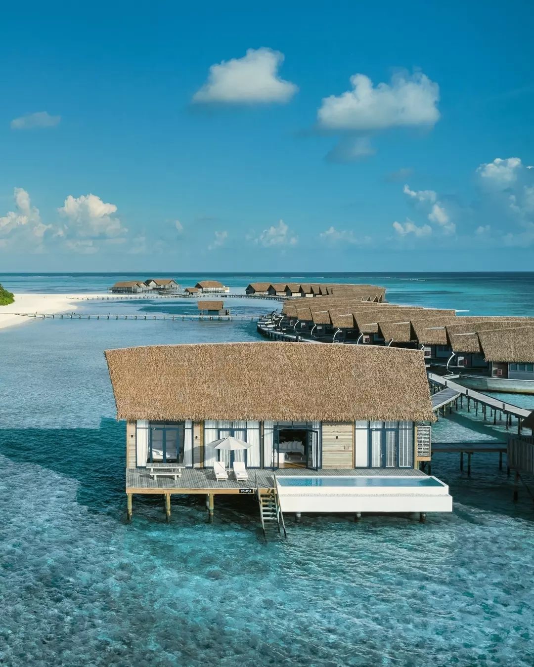 ③. 酒店属于COMO集团,狭长型岛屿,所有房间都是水上别墅,典雅的别墅受到了Dhoni船(本地渔船)的启发,房间设计高雅,景色雅观。