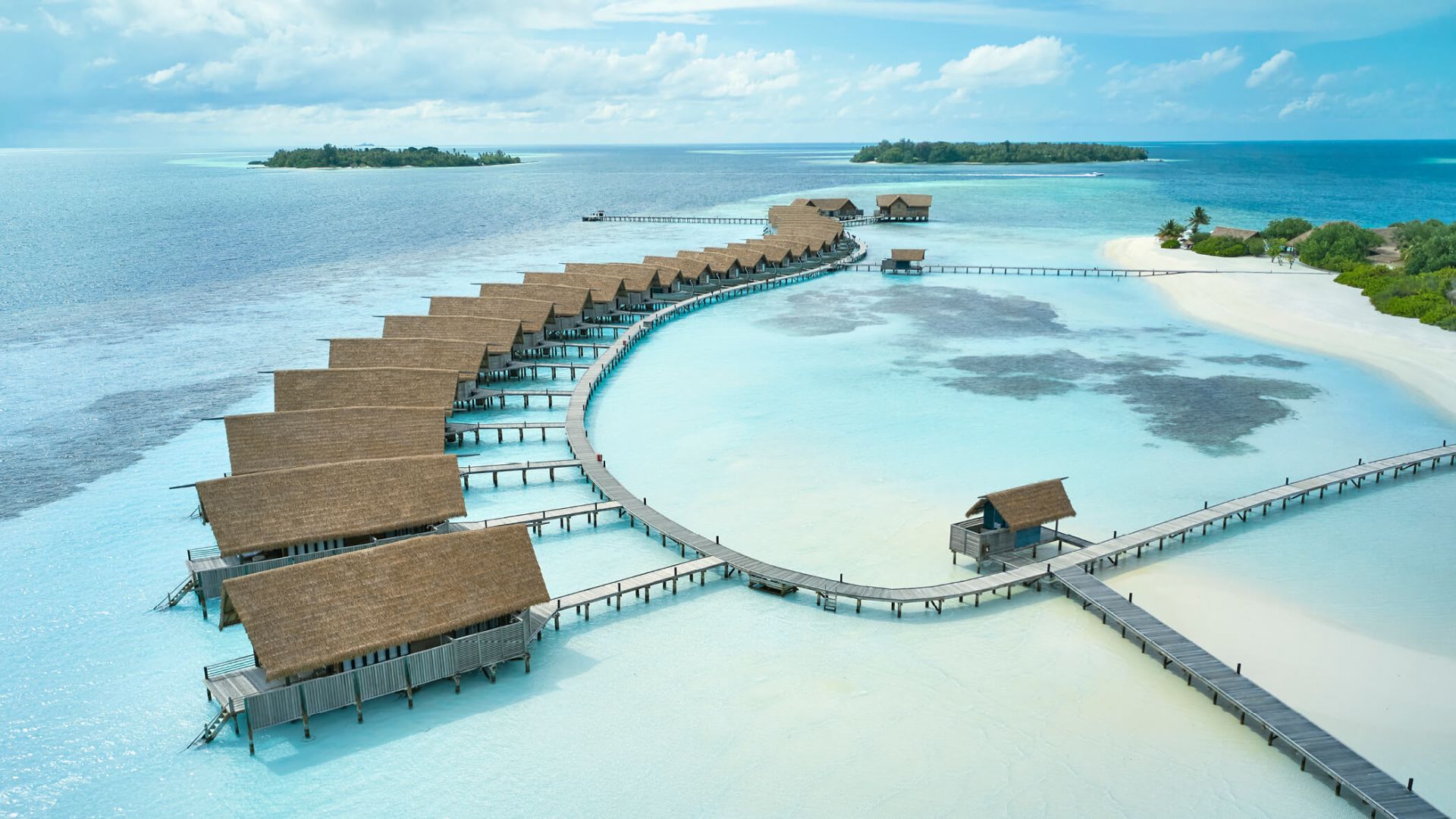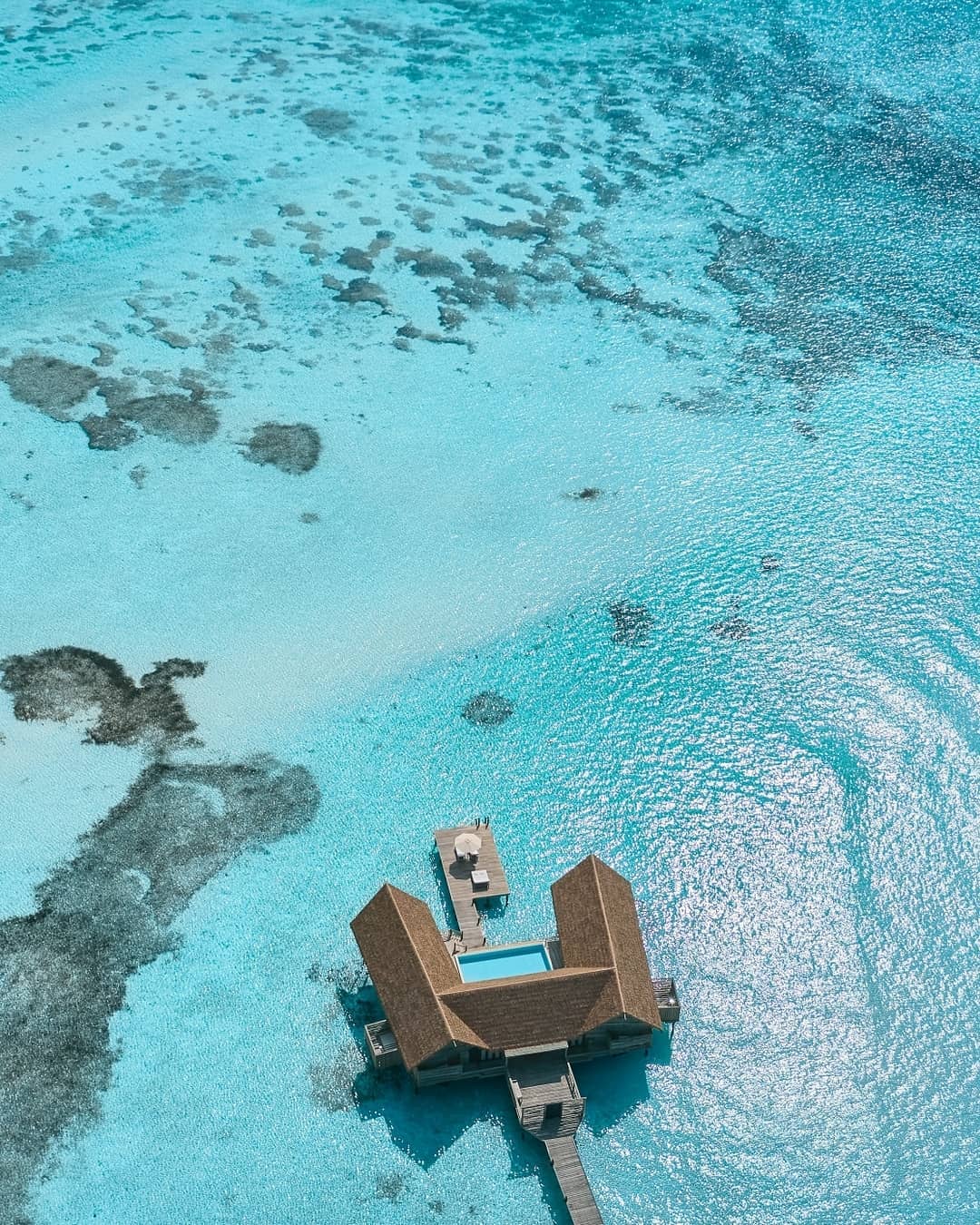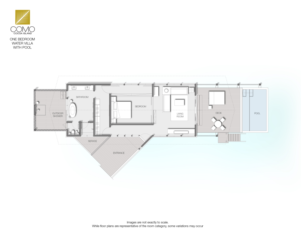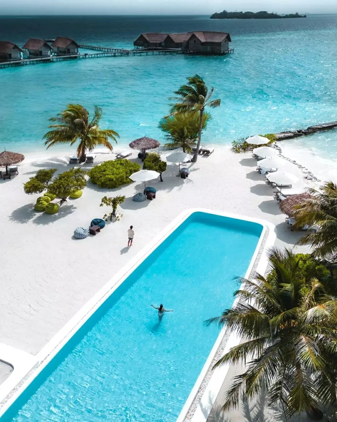 ③. 酒店属于COMO集团,狭长型岛屿,所有房间都是水上别墅,典雅的别墅受到了Dhoni船(本地渔船)的启发,房间设计高雅,景色雅观。