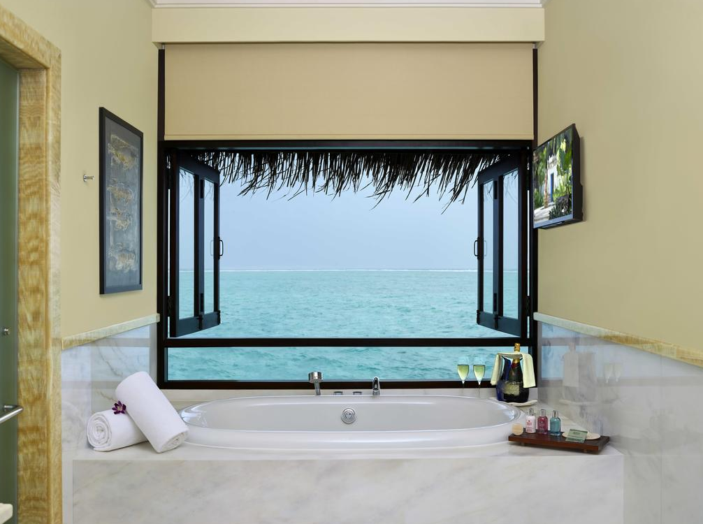 悬空私人阳台直通铺满柔滑白沙的沙滩,透过浴室的玻璃墙可以观赏到360度无敌海景,夜晚也可以到私人泳池尽情放松。这些别墅可让您完美体验马尔代夫的异国情调。