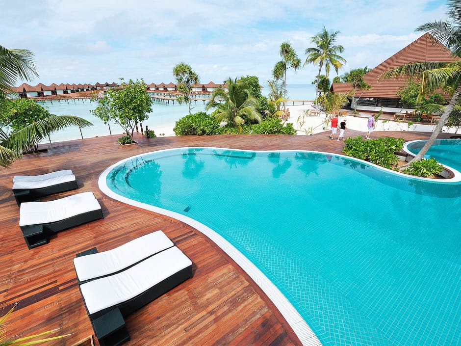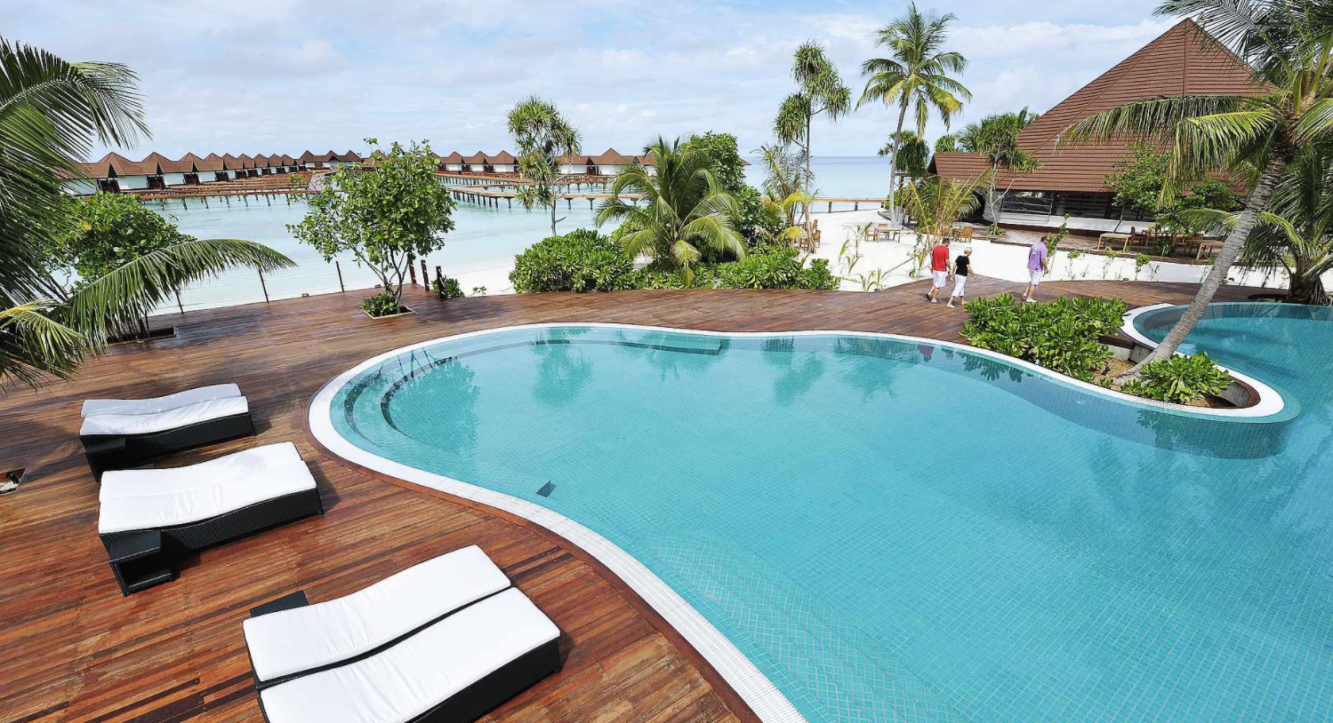 鲁宾逊|罗宾逊|鲁滨逊 (Robinson Club)座落在嘎夫阿里夫环礁(Gaafu Alifu Atoll)。从马累国际机场搭乘内飞+快艇55+20分钟即可到达。属于中型岛屿,环岛一周步行约15分钟,周长约1410米,面积11.51万平方米(609米*189米)。于2009.12开业。